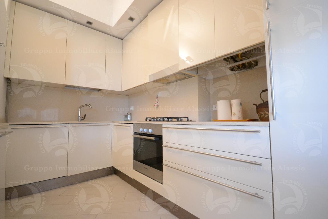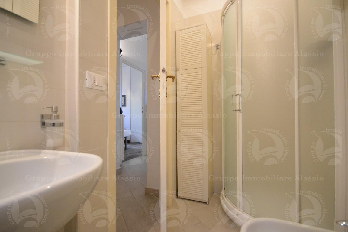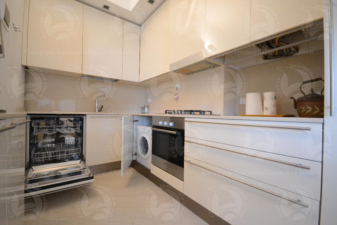Alassio, we offer a seaside apartment in Borgo Coscia for exclusive tourist use. The apartment, which sleeps 4, comprises a living room with a kitchenette and sea view, a double bedroom, a full bathroom with a window, and a second bathroom with a sink and toilet. The kitchen is equipped with a dishwasher, washing machine, oven and fridge with freezer. Available monthly and for longer periods. No animals. CITRA CODE 009001-LT-0889 CIN CODE IT009001B4WIK2KTDN