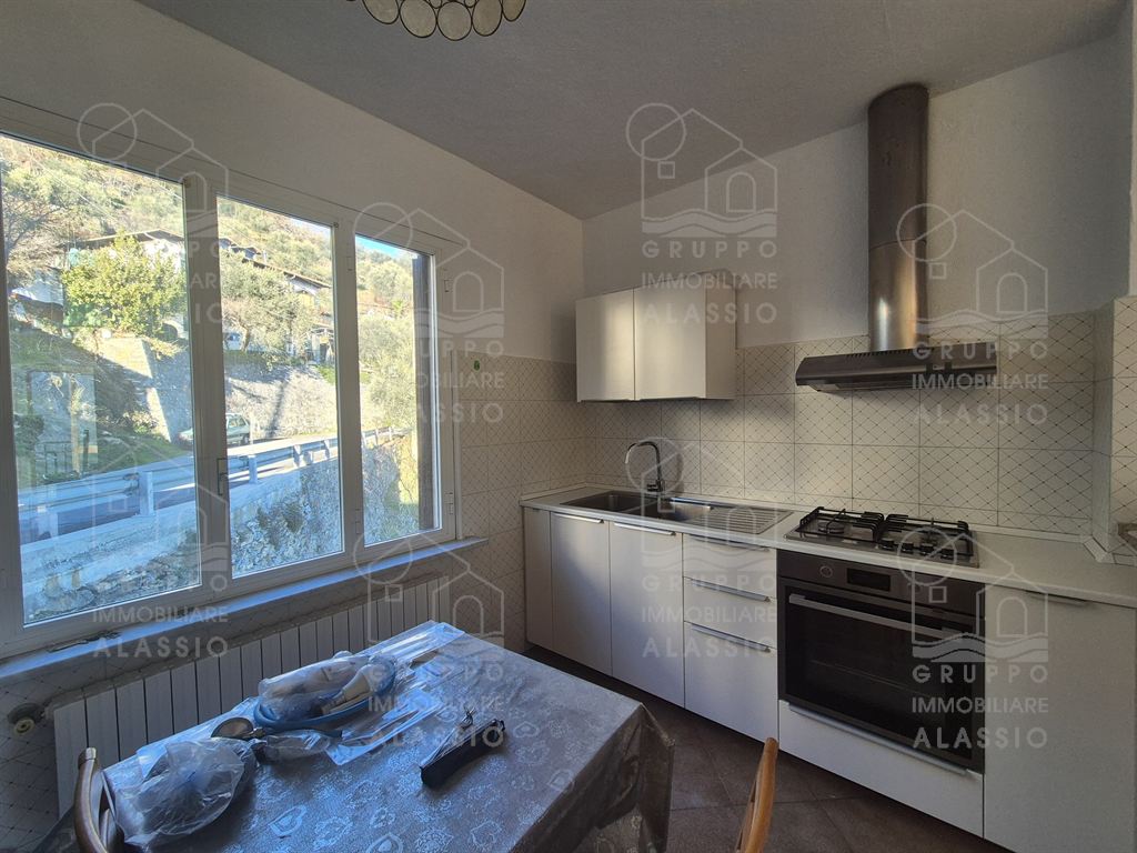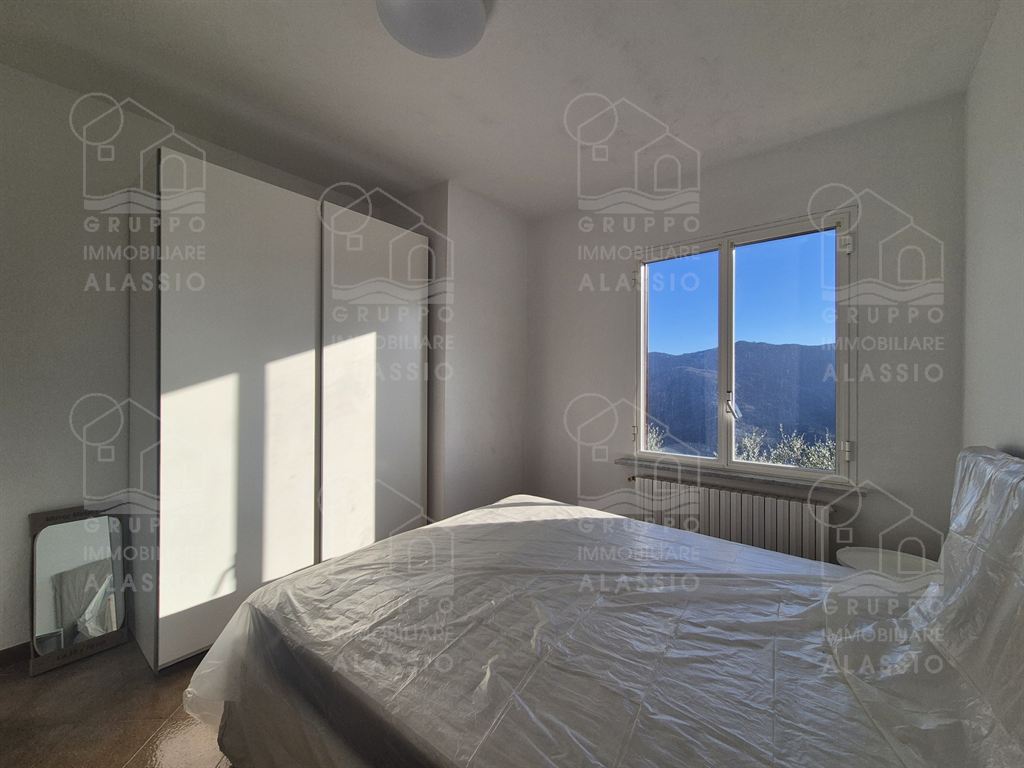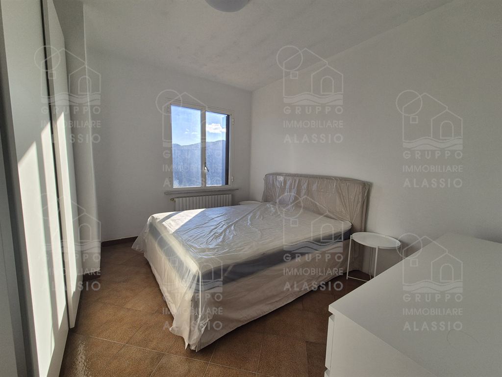 In San Damiano, in the Andora hinterland, we offer this pleasant, sunny apartment with a panoramic view for rent to residents, with a 4-year + 4-year contract. Independent entrance without architectural barriers. Very bright living area divided into a furnished kitchen area and a large living area with access to the beautiful balcony. Newly furnished double bedroom, second bedroom, bathroom with window. Independent heating with gas boiler.