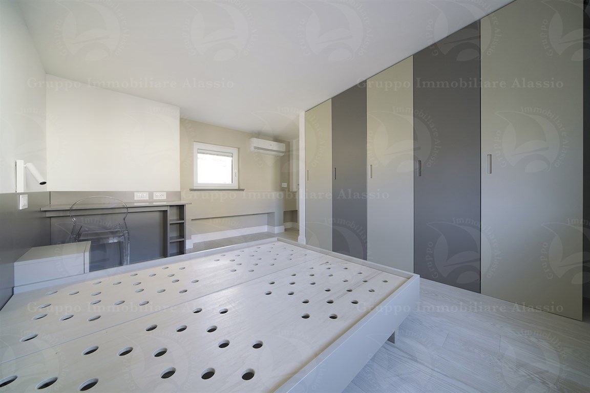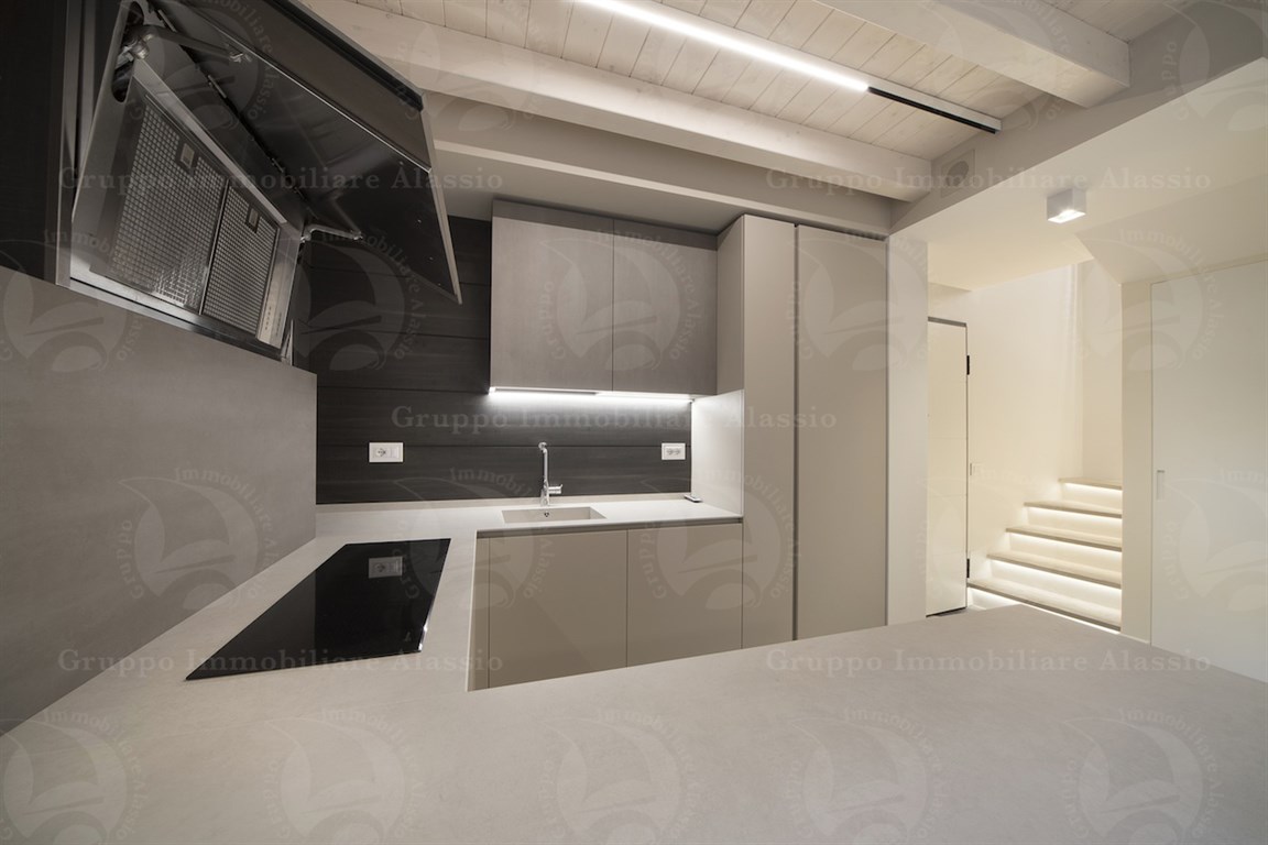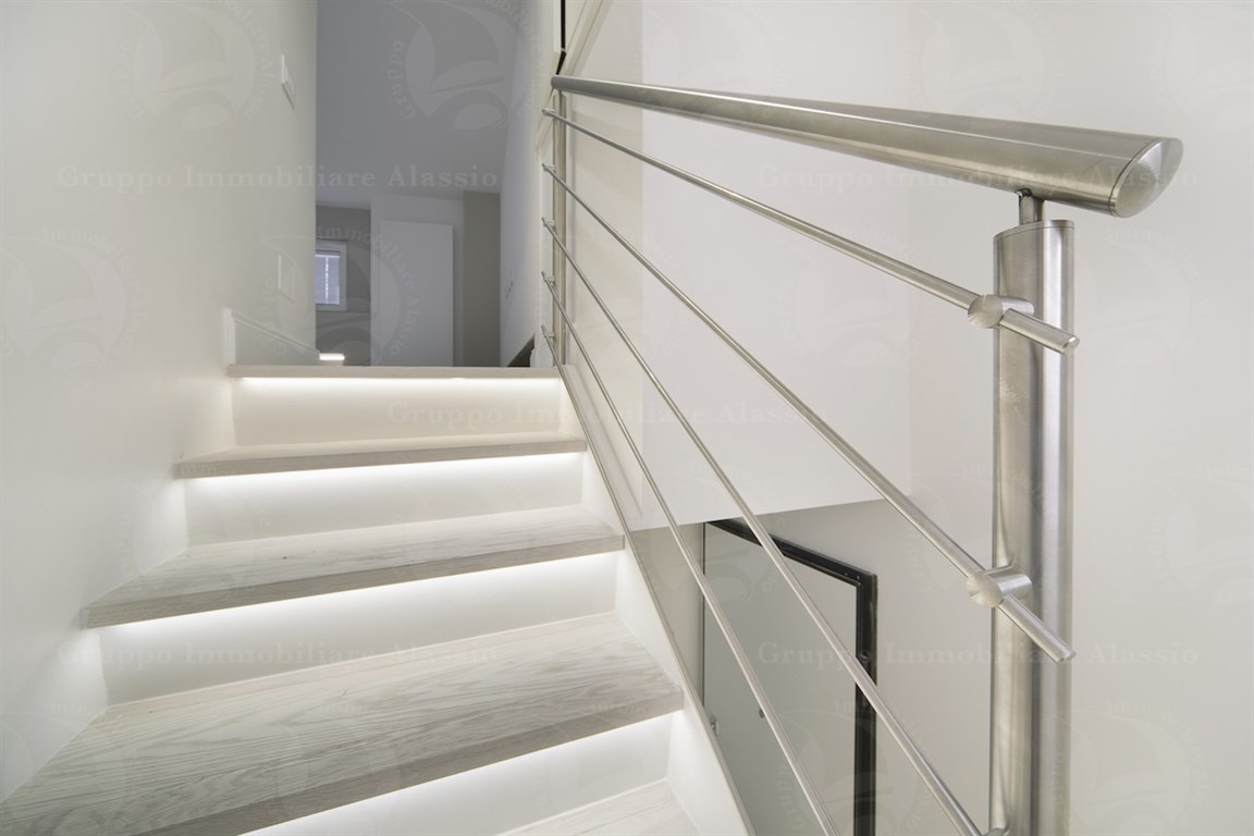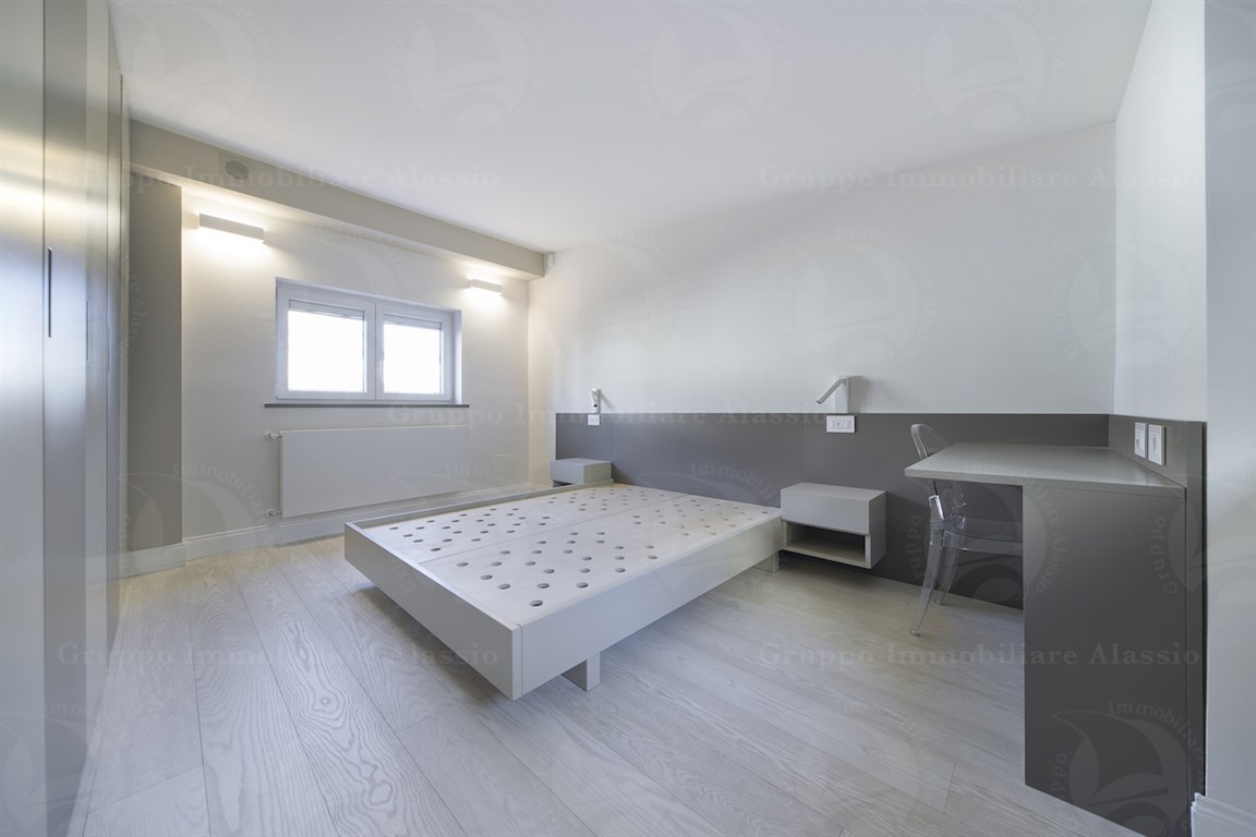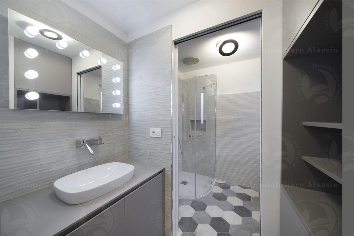 In the Comune area of Alassio, we offer a splendid newly built apartment with a private entrance. The apartment was designed and renovated with high-quality technology and materials. It is spread over two levels and features a spacious living area, three bedrooms, two bathrooms, and a terrace. There is a spacious entrance hall with a cellar and outdoor shower. Furnished according to a technical design with custom-made furniture. A garage under the building is available. Asking price: €975,000.