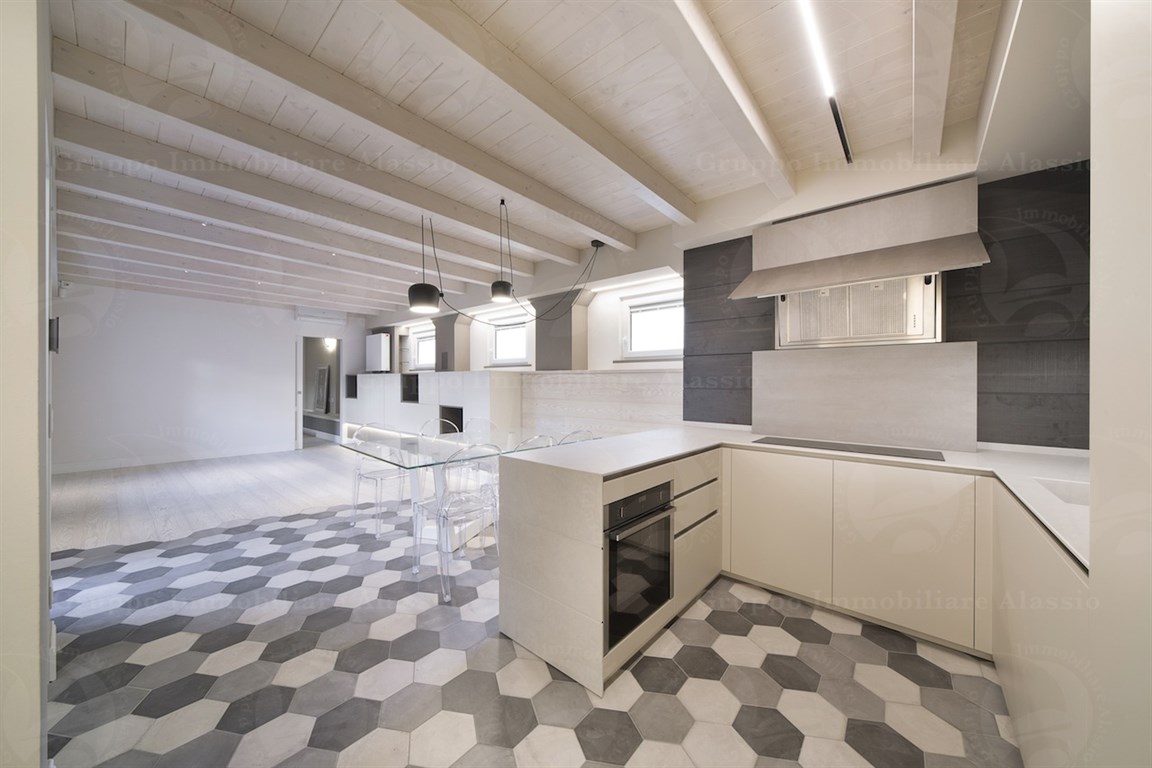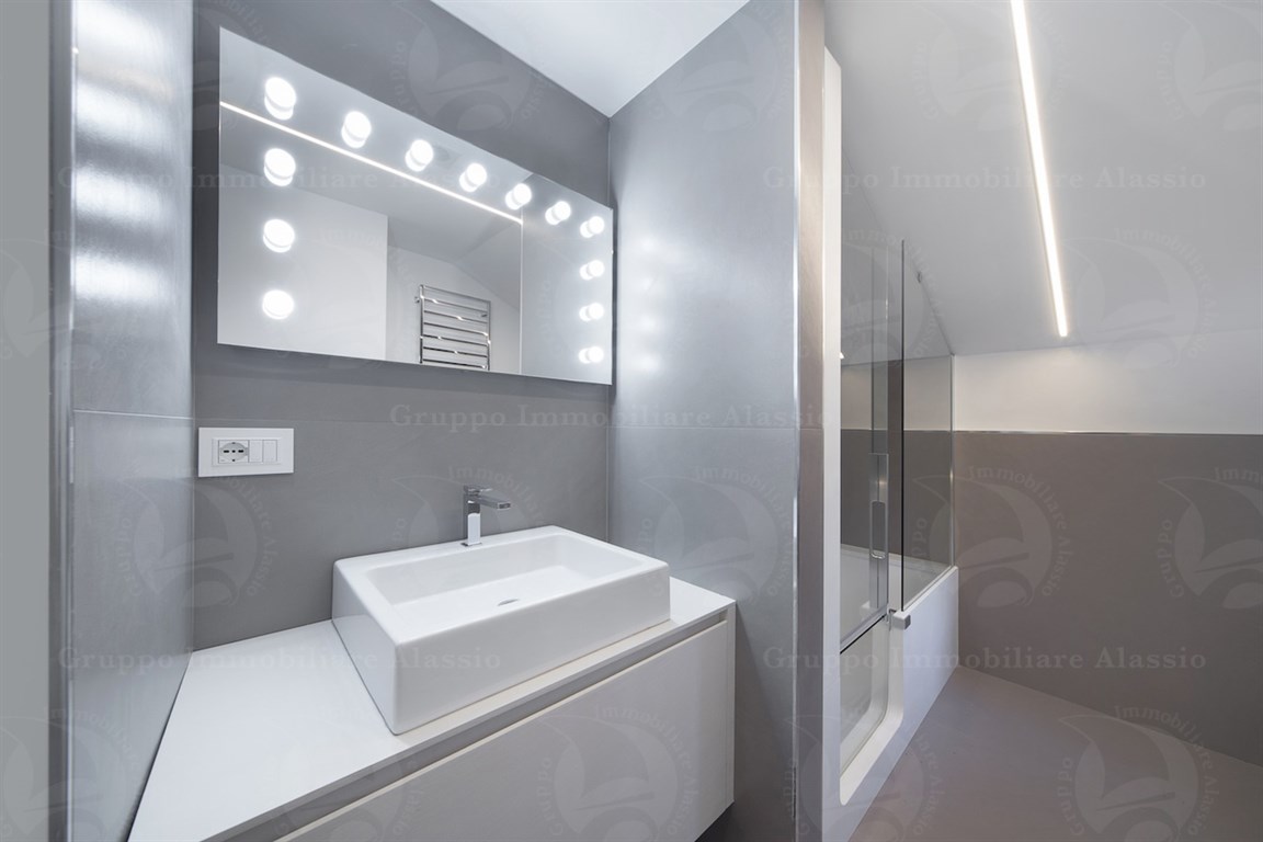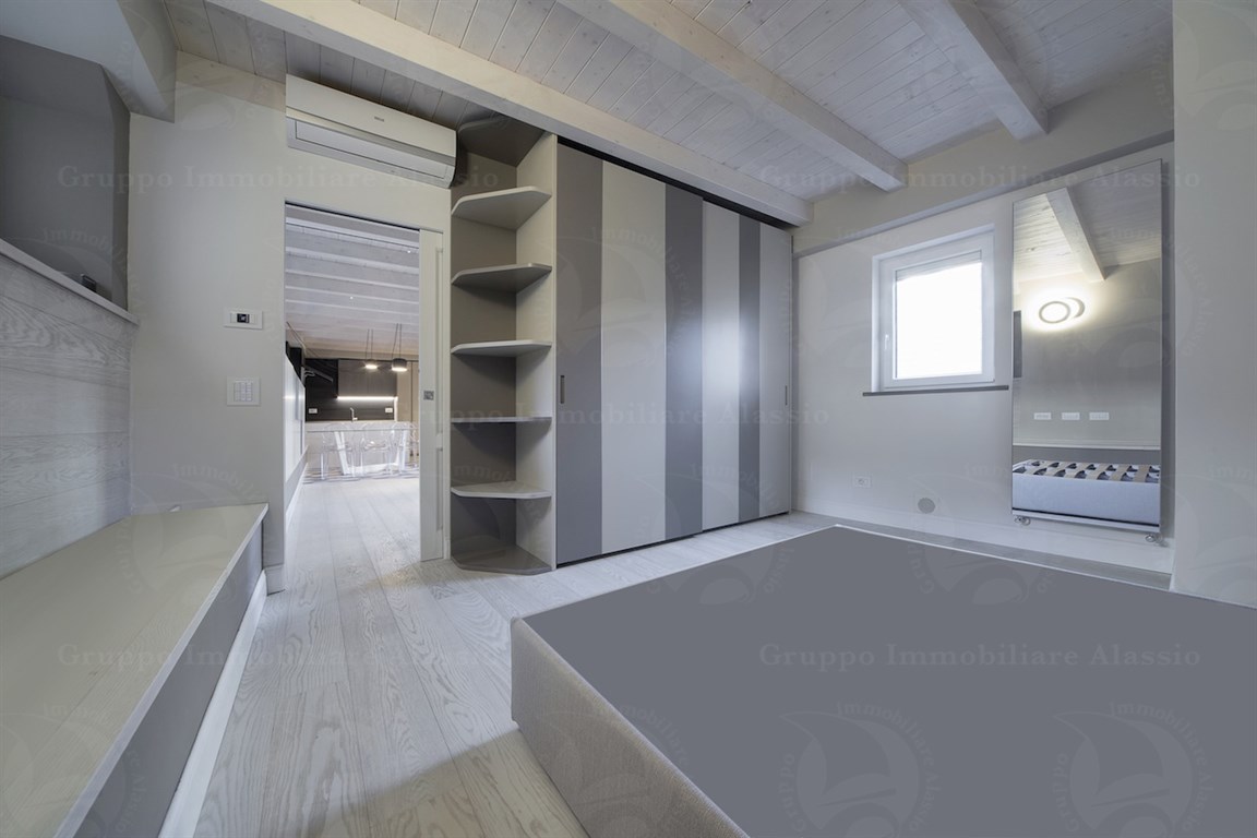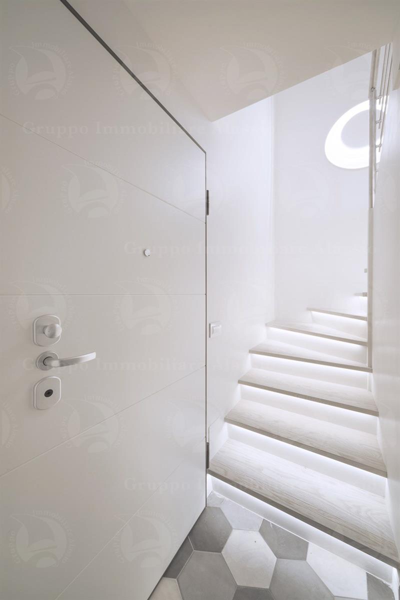 In the Comune area of Alassio, we offer a splendid newly built apartment with a private entrance. The apartment was designed and renovated with high-quality technology and materials. It is spread over two levels and features a spacious living area, three bedrooms, two bathrooms, and a terrace. There is a spacious entrance hall with a cellar and outdoor shower. Furnished according to a technical design with custom-made furniture. A garage under the building is available. Asking price: €975,000.
