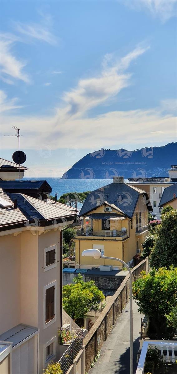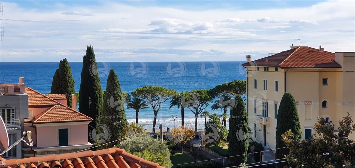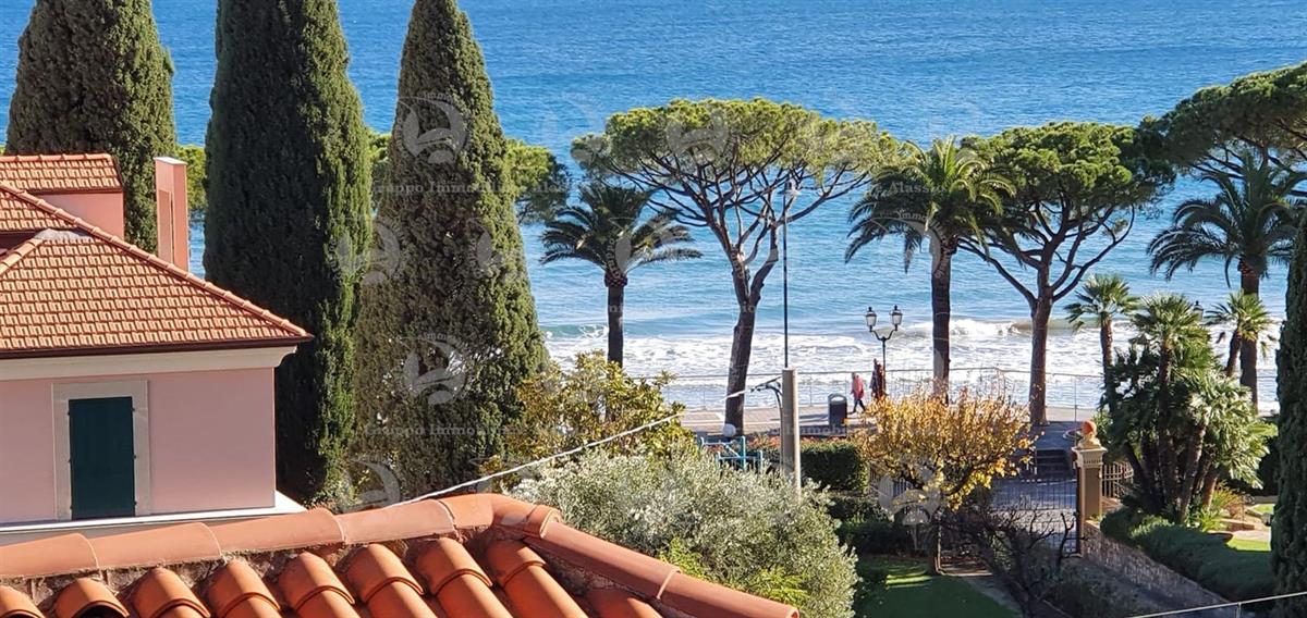 Alassio, in the western part of the city, just one hundred meters from the sea, offers a fully renovated sea-view apartment on the second floor of a building with an elevator. The apartment comprises a large entrance hall, a living room overlooking a sea-view terrace, two double bedrooms with sea views and access to the terrace, two bathrooms, one with a window, and a semi-diner with a balcony. The apartment also has a large sea-view terrace and a service balcony. Asking price €650,000
