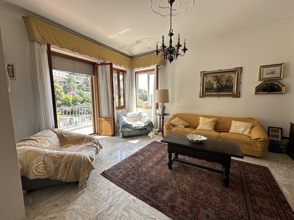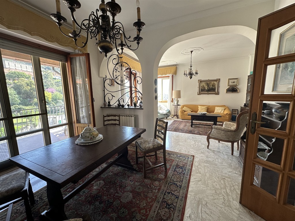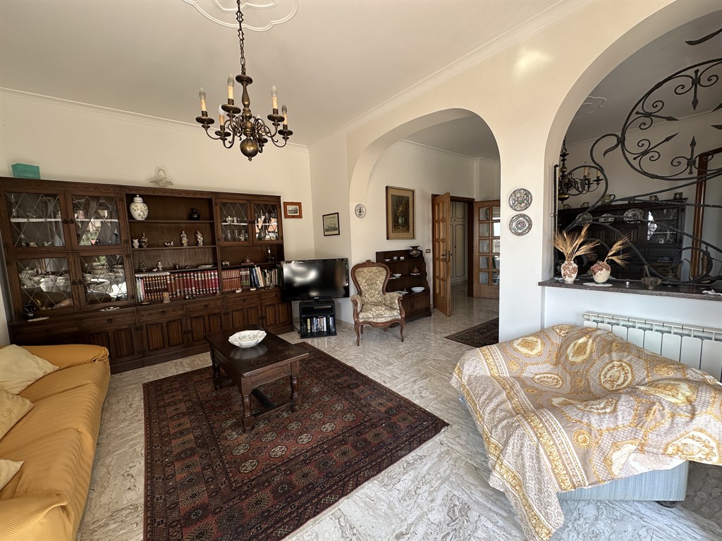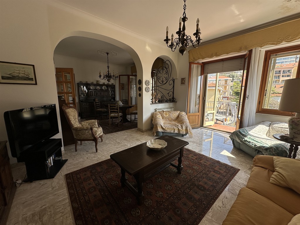In the splendid setting of Via Tetti Rossi, in a quiet residential area yet convenient to the center of Alassio and all amenities, we offer this bright multi-room apartment with sea views and a private entrance. The property has three double bedrooms, a double living room, an eat-in kitchen, two bathrooms, a closet, a balcony, a large porticoed terrace with a pleasant sea view and a small portion of garden. The offer is completed by a covered parking space included in the price. Independently heated, with triple exposure, it faces south-east, to make the most of the bright Alassio days. We are about 800m from the city centre Possible purchase of additional accommodation of approximately 60 m2 on the upper (top) floor