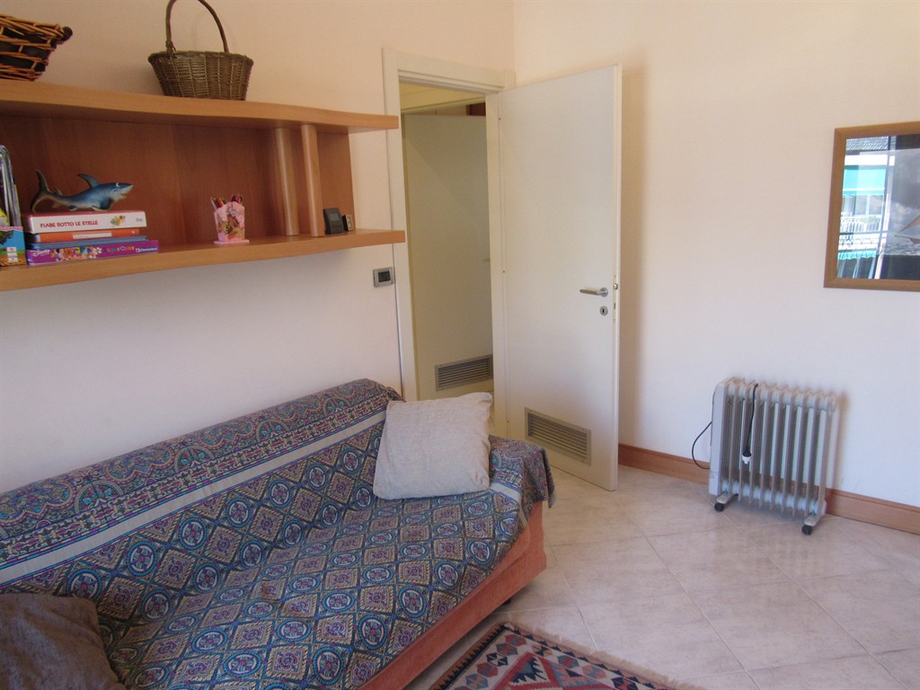 If you're looking for an elegant apartment near the sea, convenient to all amenities, and already finely furnished, this is the perfect property for you! The property is located on the top floor of a building with a lift and private park within an exclusive and prestigious residential complex. The accommodation comprises an entrance hall to a living room with kitchenette, two double bedrooms, a bathroom with window, two balconies with open views and a large attic. Included in the price are two private parking spaces in the garage with direct access to the condominium.