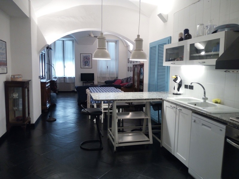 In the central Piazza Matteotti, the crossroads of Alassio's prestigious Budello district, just a few meters from the pier and the splendid central beaches, Riviera Services Immobiliare is pleased to offer this unique and spacious three-room apartment located on the first floor of a period building, with large windows overlooking the square. The self-contained apartment comprises a large living area comprising a lounge, dining room, and kitchenette, a double bedroom, a quadruple bedroom, a bathroom with a large bathtub, a closet, and a veranda. Possibility of creating a second bathroom.