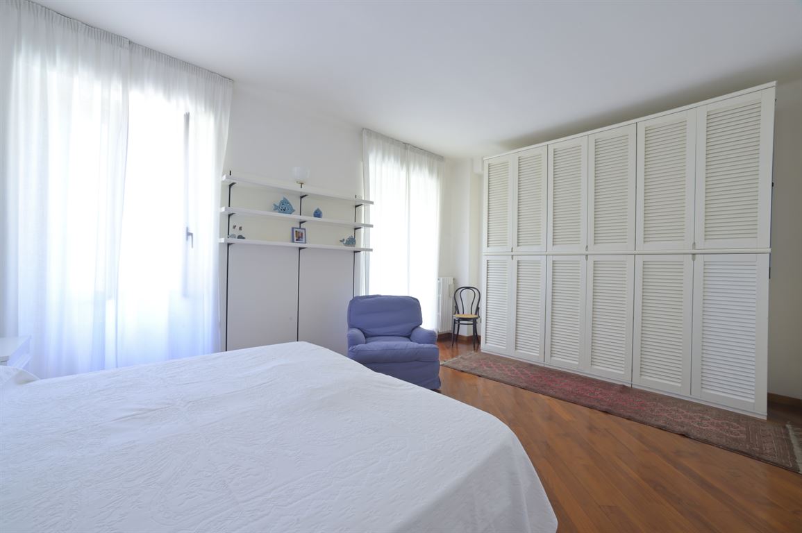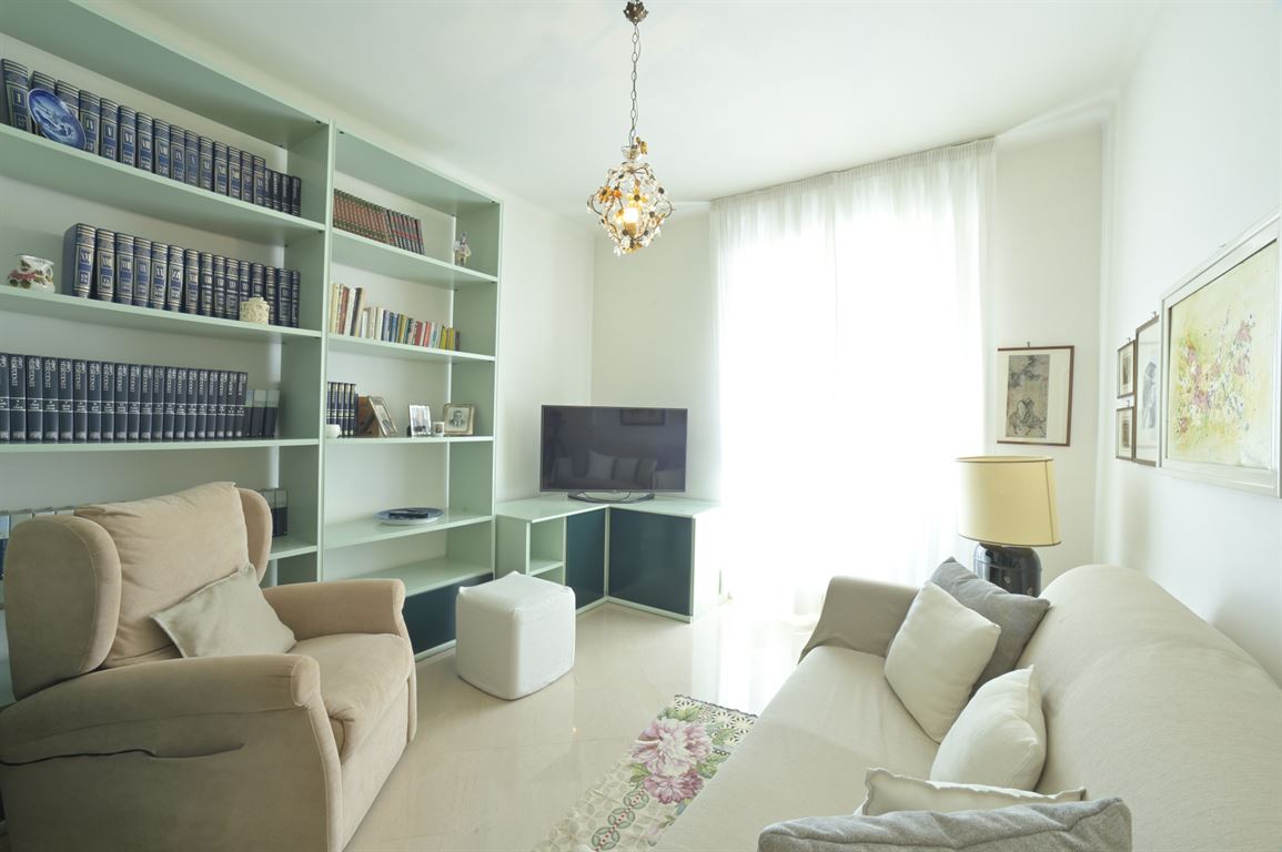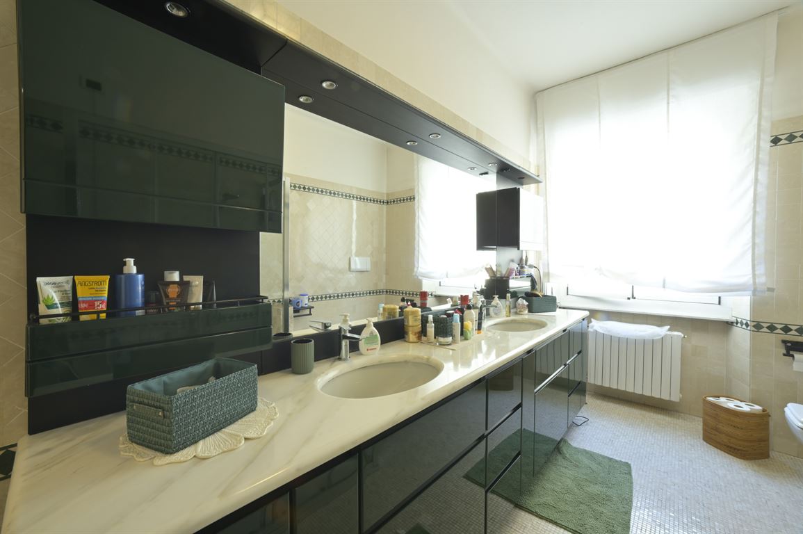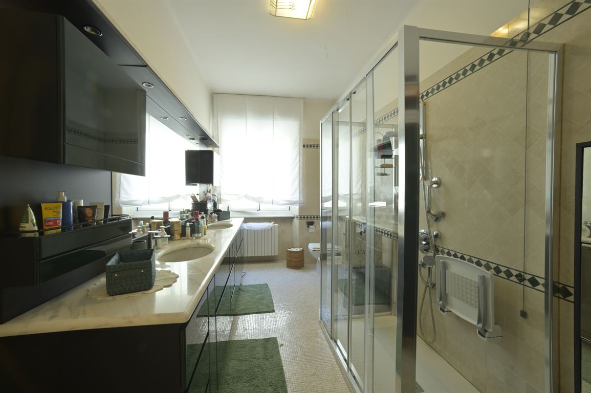 We offer for exclusive sale an elegant, centrally located apartment with a generous floor area of 235 square meters spread over two levels connected by a magnificent solid wood staircase. The building was recently renovated, with a roof redone about 18 years ago, and is served by an elevator. Two cellars are exclusive to the apartment. On the first floor (2nd above ground) is an entrance hall leading to a bright living room, a spacious eat-in kitchen, a large bathroom with window, a half bathroom, two bedrooms, a study, and two balconies. Upstairs is a spacious living room, two large double bedrooms, a third single bedroom, a large bathroom, and two balconies. Fine marble and mosaic flooring on the first floor and parquet throughout the second floor. State-of-the-art fixtures. Suitable for both residential and vacation rentals. Excellent location!