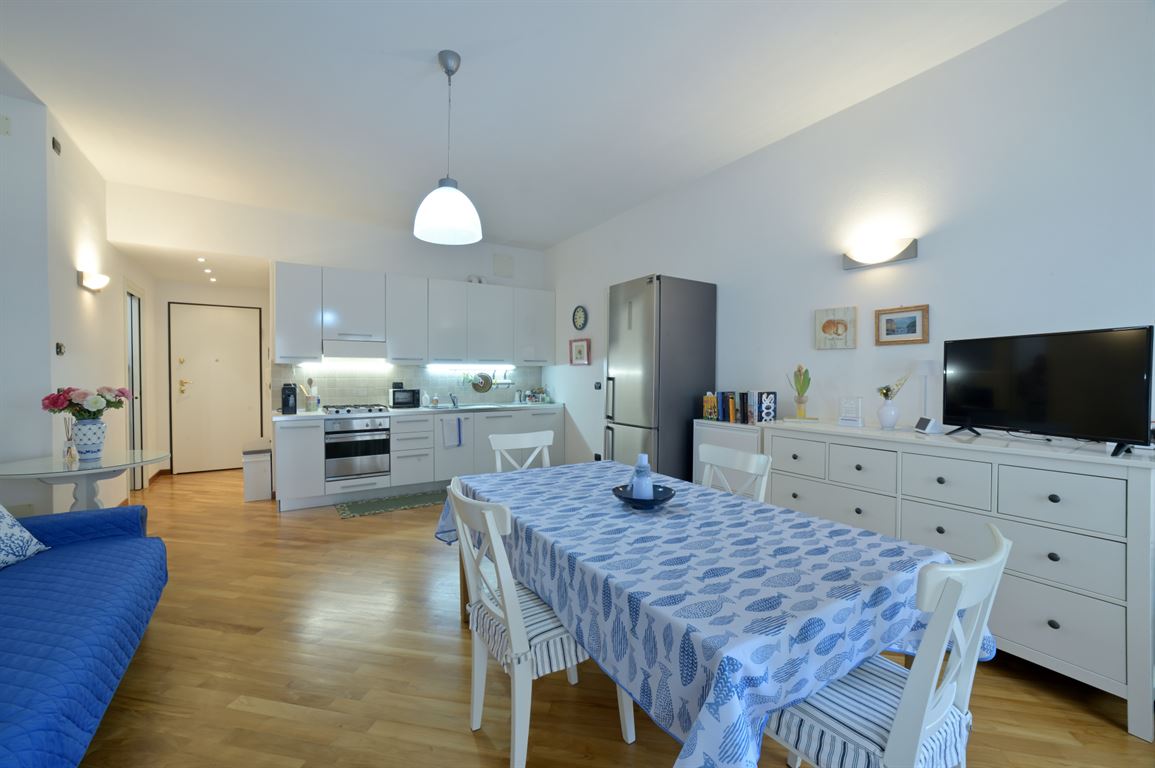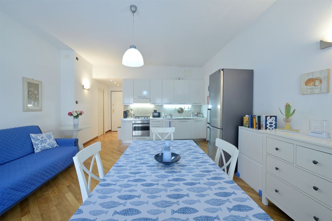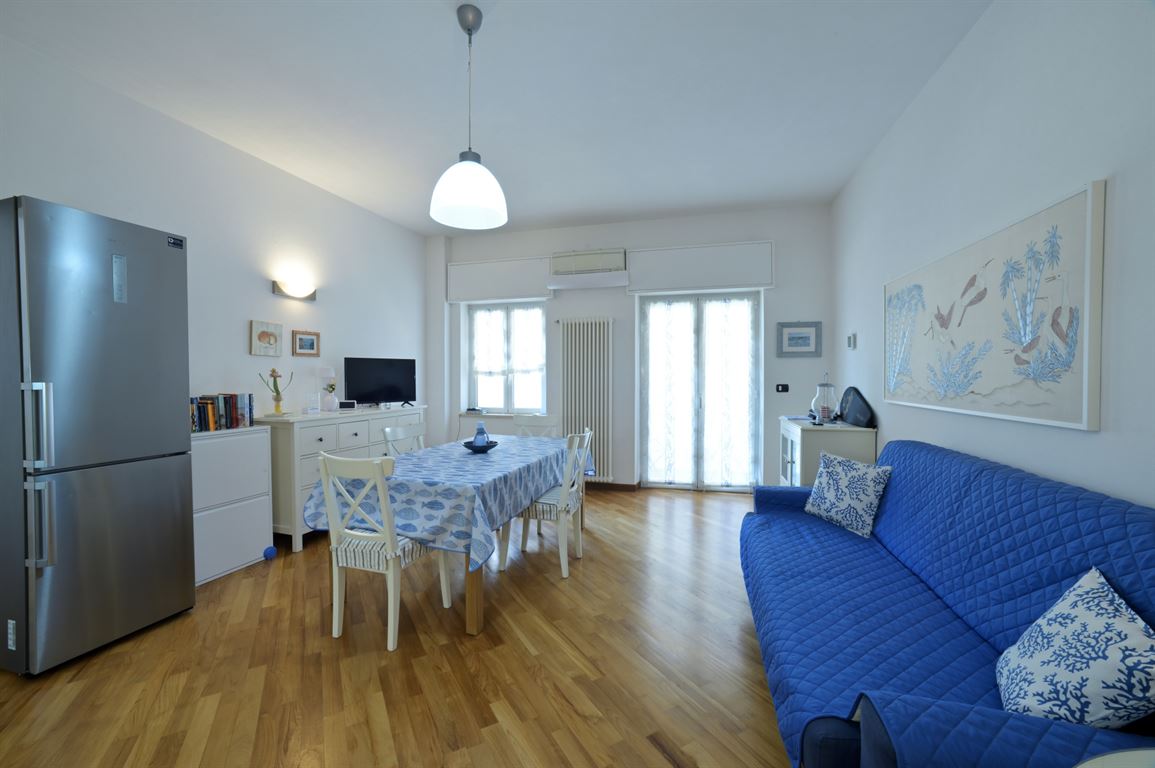 In the heart of Alassio, in an elegant building, we offer an exclusive, comfortable, spacious two-room apartment. The apartment is located on the first floor and comprises an entrance hallway, a spacious living room with kitchenette and balcony, a large bedroom with a double bed, a spacious wardrobe, and a bunk bed, leaving plenty of space between them, and a bathroom. The flooring is parquet throughout. The pleasant balcony overlooks an internal courtyard and is completely noise-free. The apartment is located in the heart of Alassio, convenient to all amenities and just 200 meters from the beach. The building features an elegant entrance hall, well-maintained common areas, and a new elevator. It's an excellent choice for your beach home.
