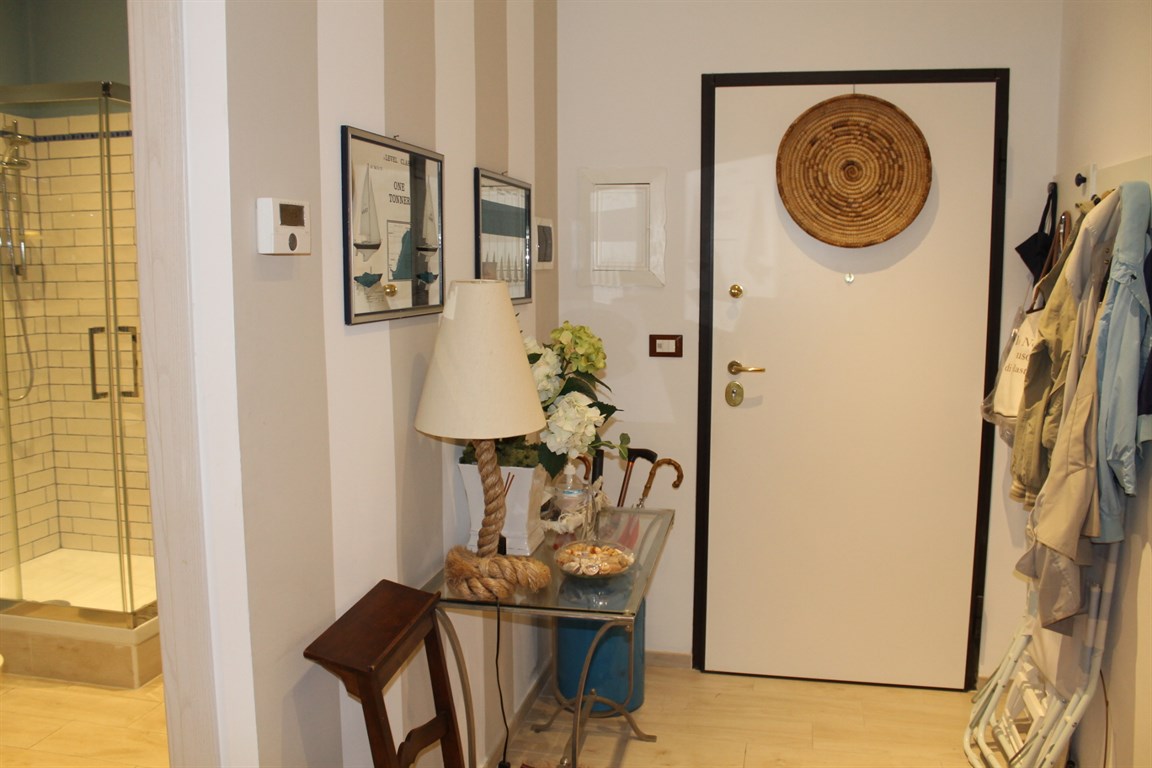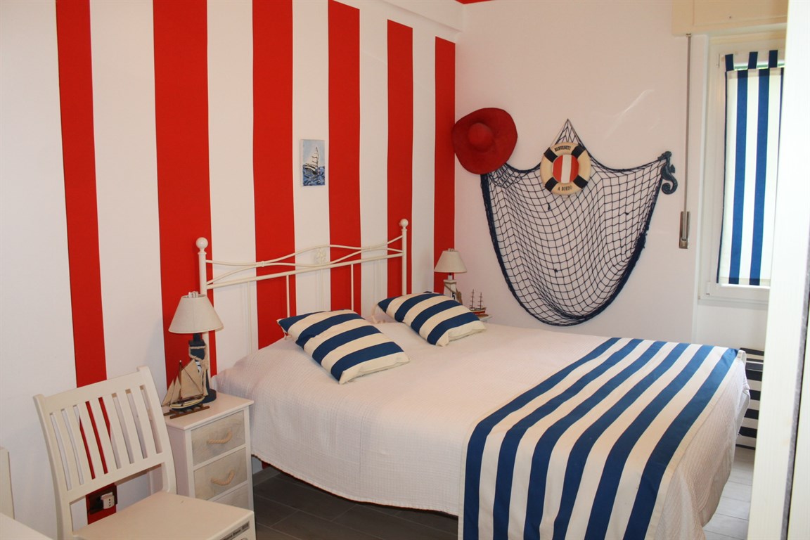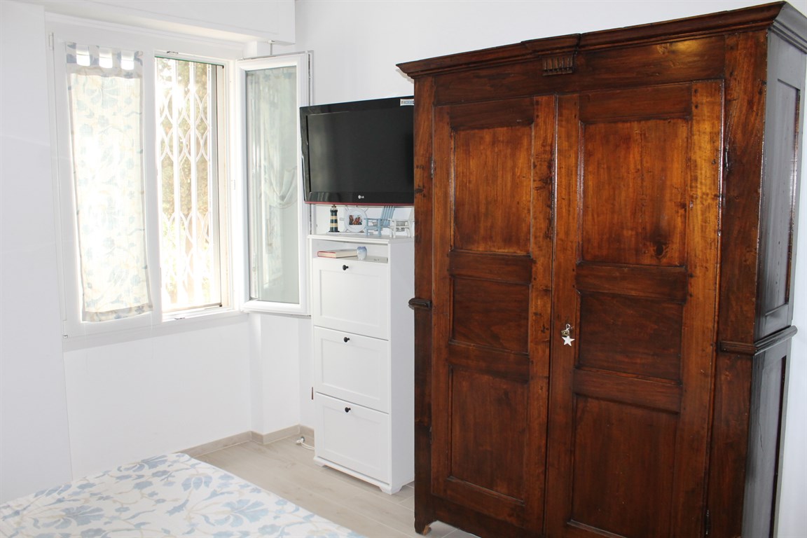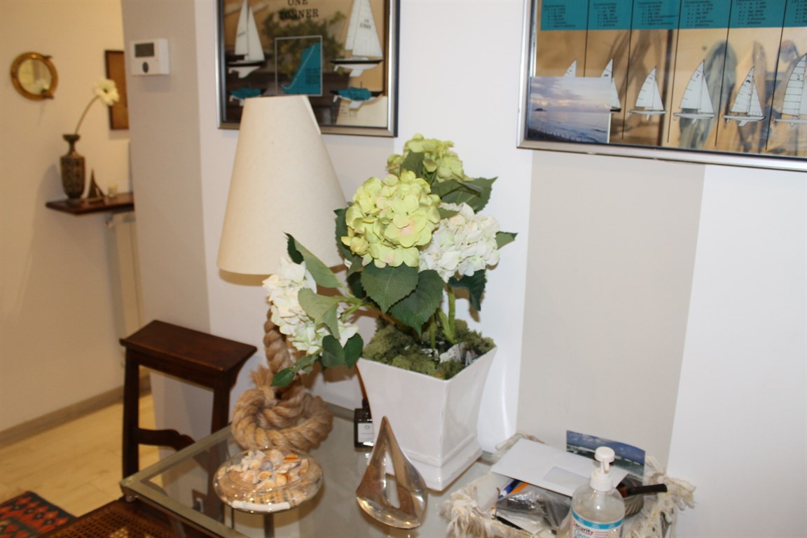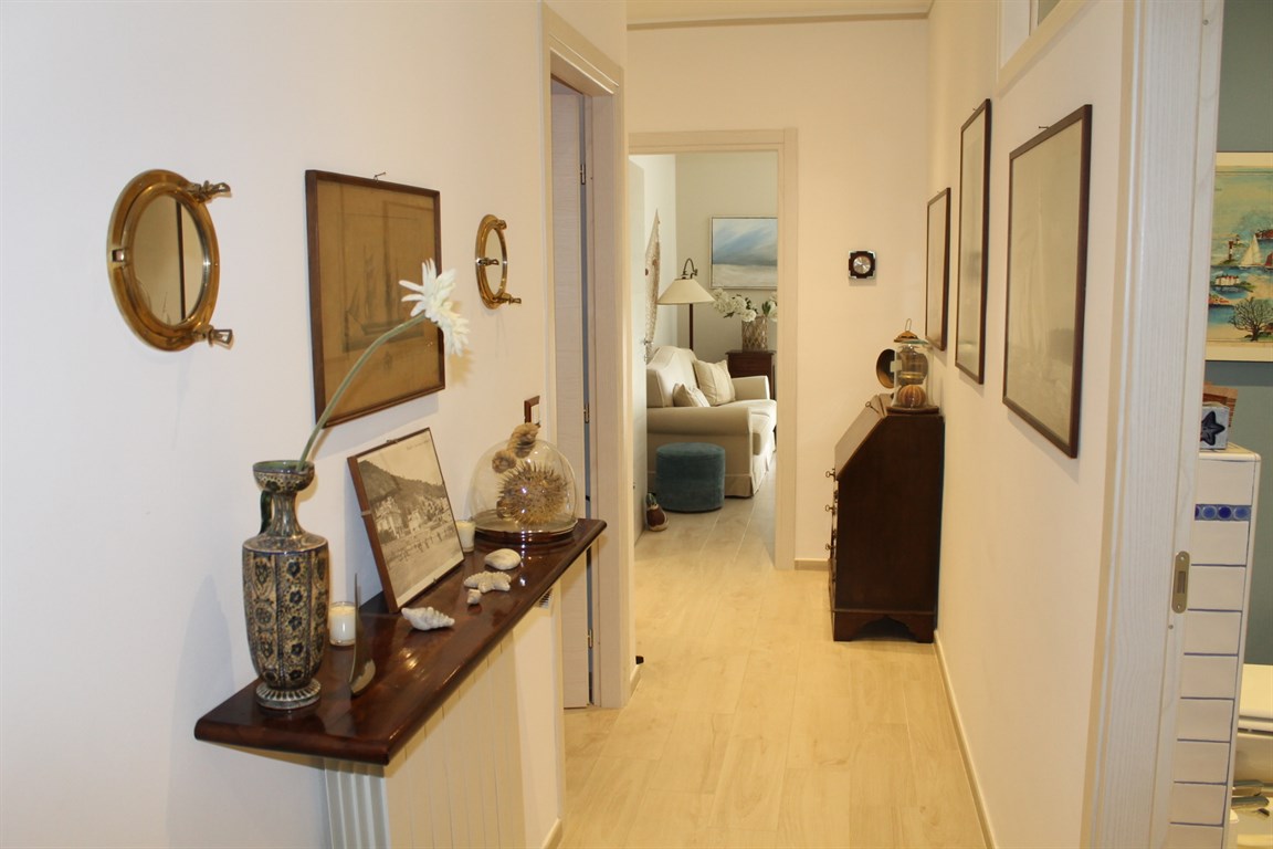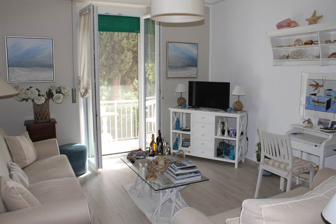 Just steps from the beaches of Borgo Coscia, we are selling a completely renovated 80 sq m second-floor apartment with elevator. It features air conditioning, independent heating, new windows and doors, and is equipped with gates and mosquito nets. With excellent finishes, it comprises a living room with a sea-view balcony, a kitchen, two bedrooms, and two bathrooms with showers. The kitchen opens onto a magnificent 100 sq m garden with a large gazebo with teak table and chairs, and a pleasant sea view from the garden, complete with two lounge chairs and a coffee table. The garden also features a small stone fountain and a garden shower with timer-controlled irrigation. Free parking is available under the house.