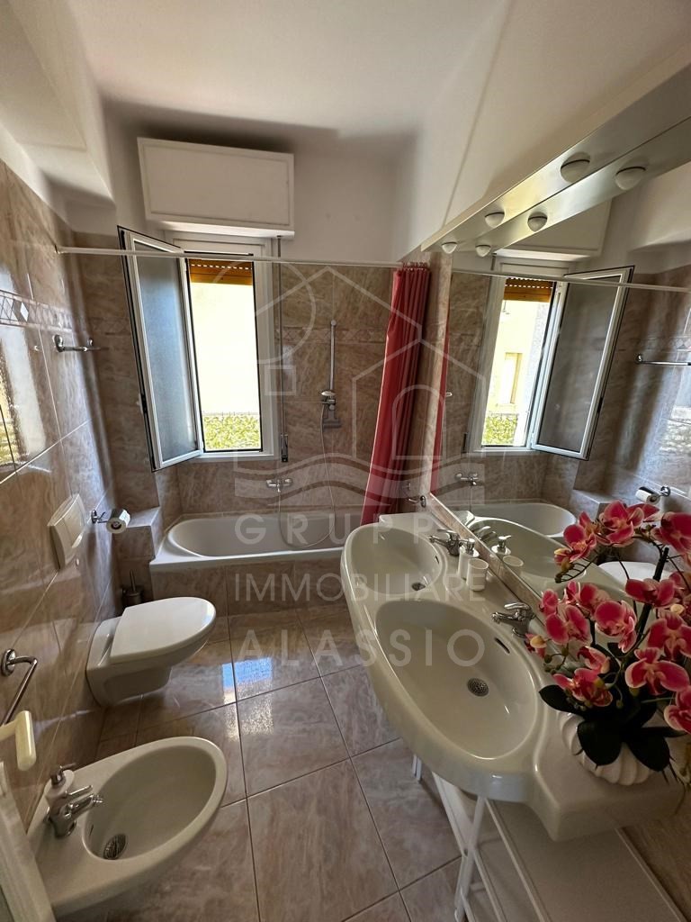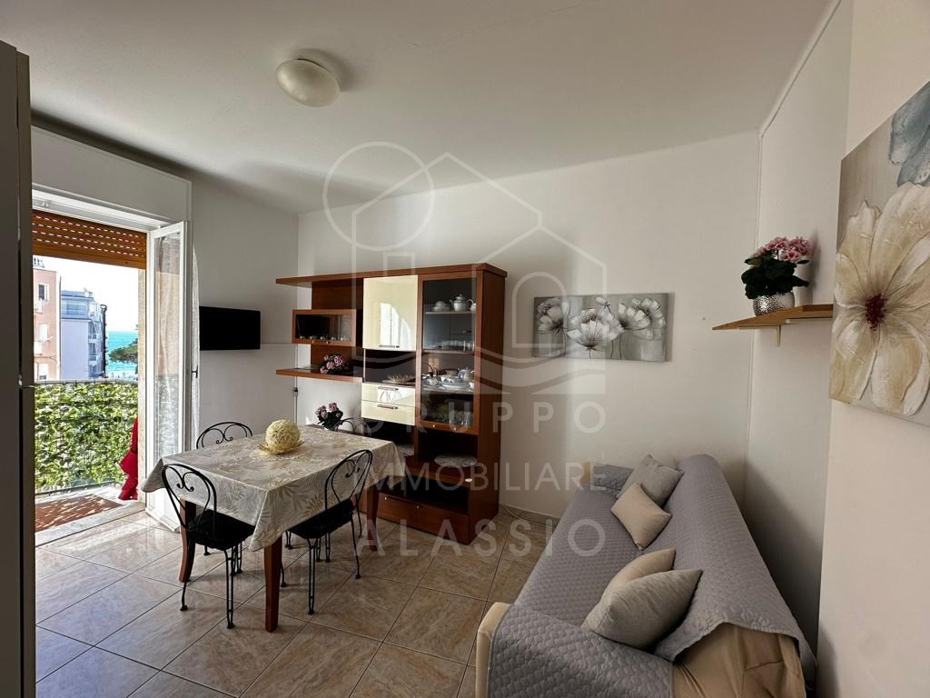 Alassio, high floor apartment with lift convenient to the sea and amenities comprising entrance hall, 2 bedrooms, 2 bathrooms, living room with kitchenette, a long balcony with sea view, independent heating.