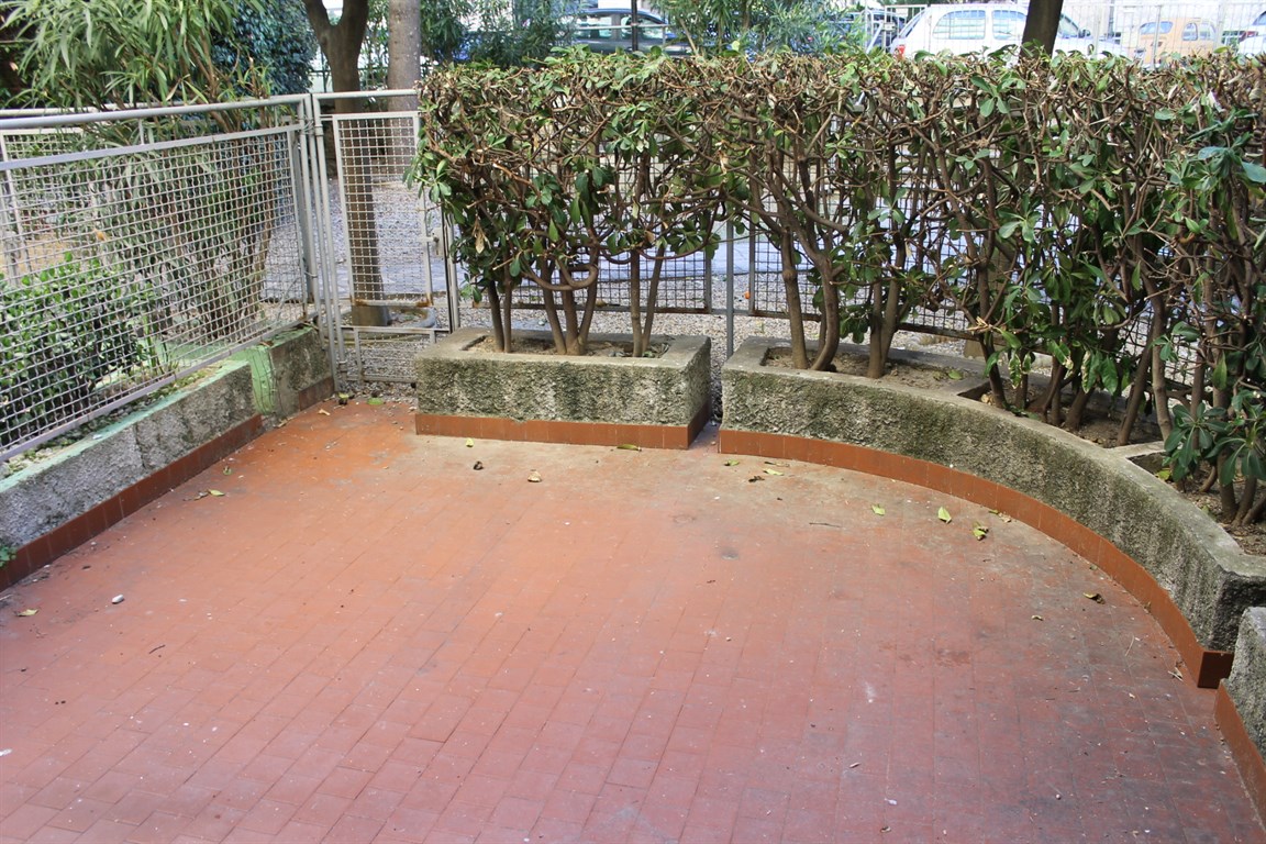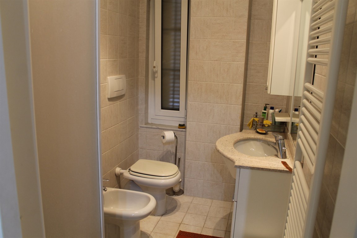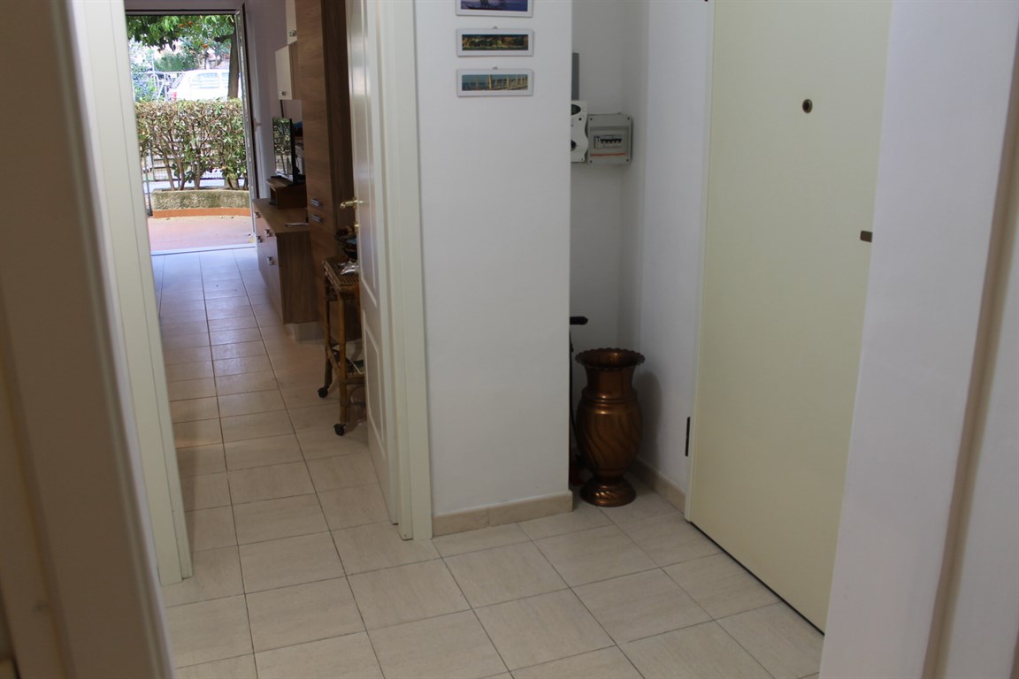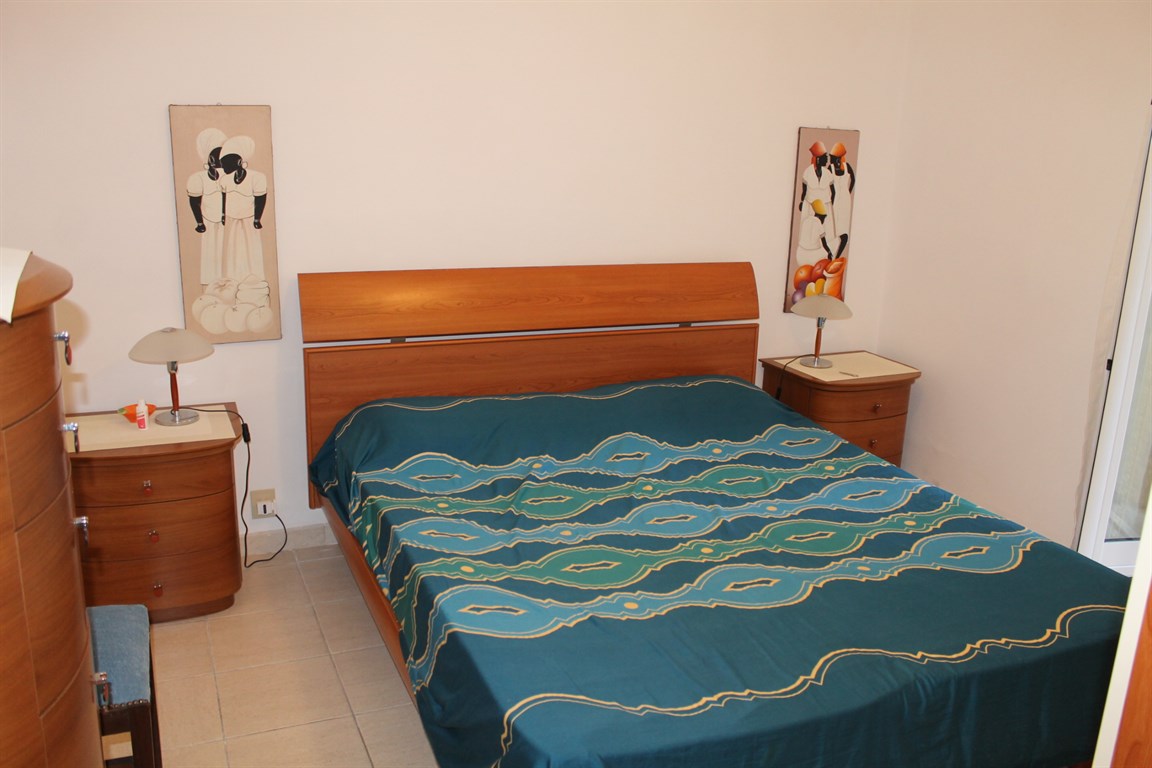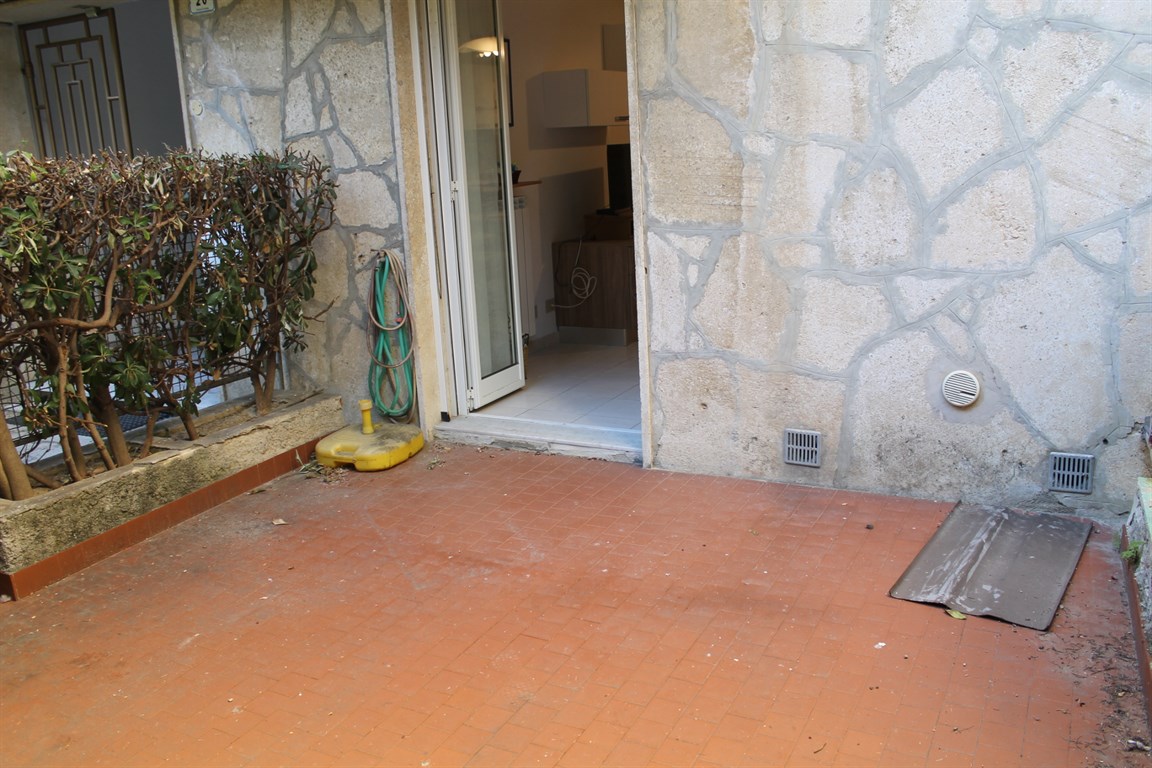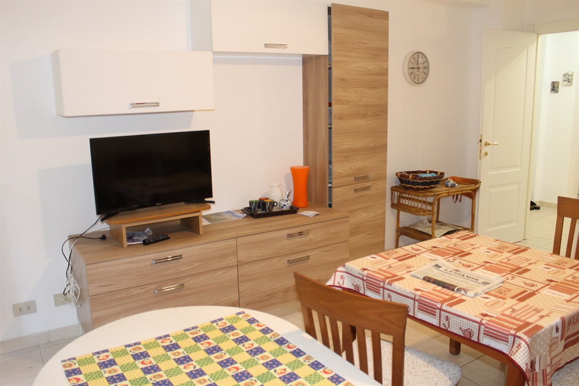 A few steps from the sea, a three-room apartment with two outdoor spaces, comprising a living room with kitchenette, two bedrooms, a bathroom, and a closet.