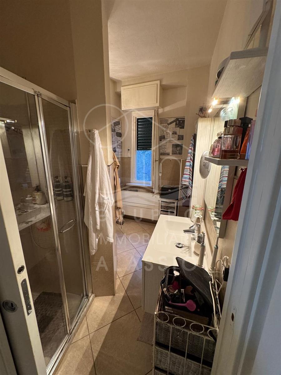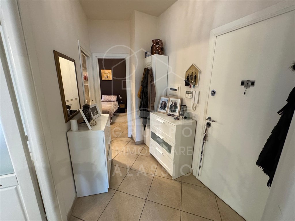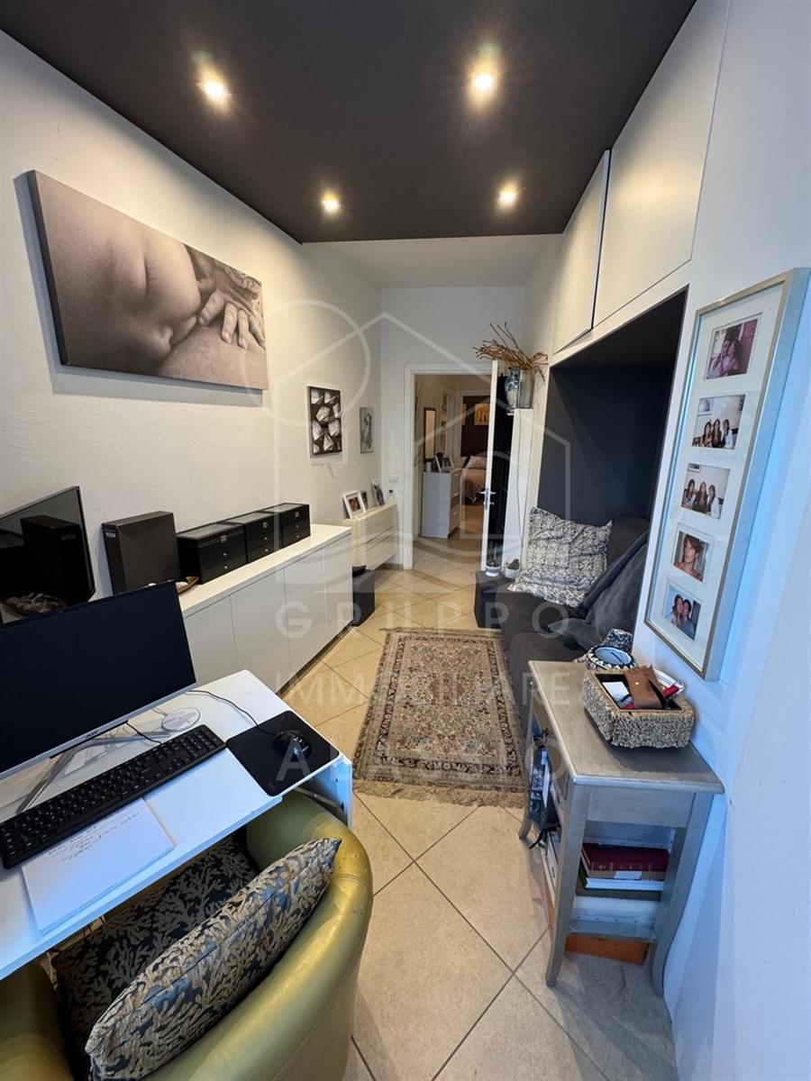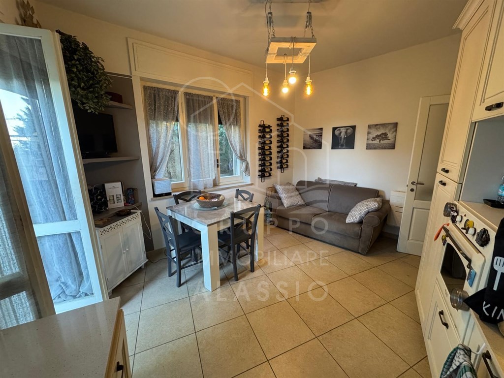 Alassio, on the first hill, a small, renovated three-room apartment with a sea-view terrace and private garden. The apartment comprises an entrance hall, eat-in kitchen, two bedrooms, a bathroom, and a closet. Independent heating and air conditioning are included.
