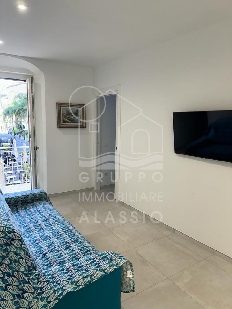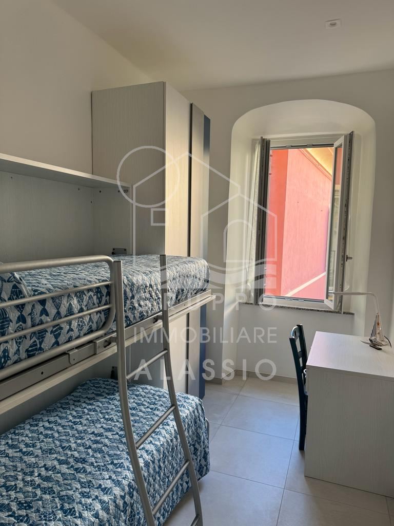 Just steps from the sea, in one of the most sought-after areas, conveniently located near all amenities, we offer a renovated 70 sq m apartment in a typical Ligurian house with two entrances, one directly from the seafront promenade. The apartment comprises an entrance hall, kitchen, two bathrooms, living room, double bedroom, and bedroom with bunk beds.