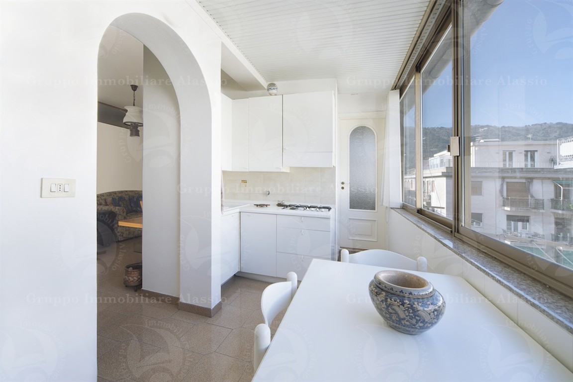 Alassio, in the heart of the city center and just steps from the sea, we offer exclusively a spacious and bright two-room apartment, located on the top floor of a building with an elevator. The property comprises an entrance hallway, living room, eat-in kitchen with veranda, bathroom, and spacious double bedroom. Main features: • Central location, with all services within easy reach • Just 200 meters from the sea and the historic center of Alassio • Very bright and quiet apartment • Independent heating and low condominium fees • Ideal as a second home by the sea, or for residents looking for a practical and functional solution • Good general condition with the possibility of customization with simple interventions A perfect opportunity for those seeking a quiet yet central residence in one of the Ligurian Riviera's most sought-after locations. Don't miss this opportunity to live just steps from the sea!