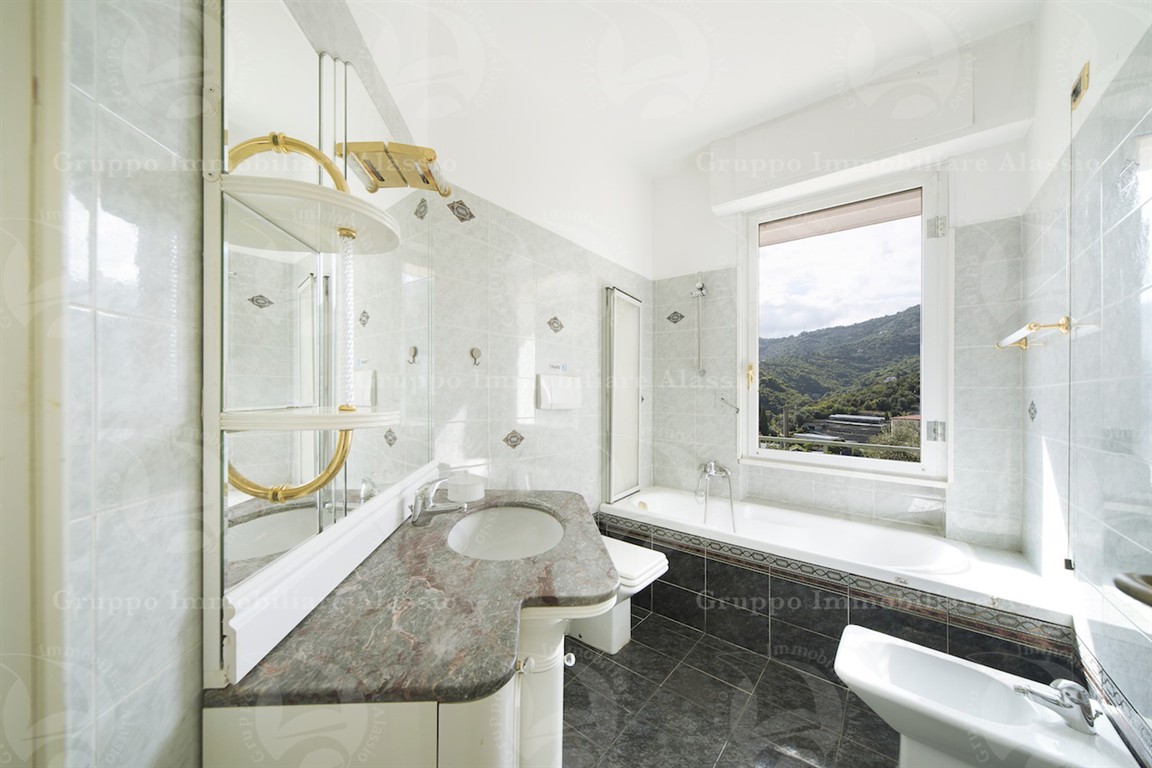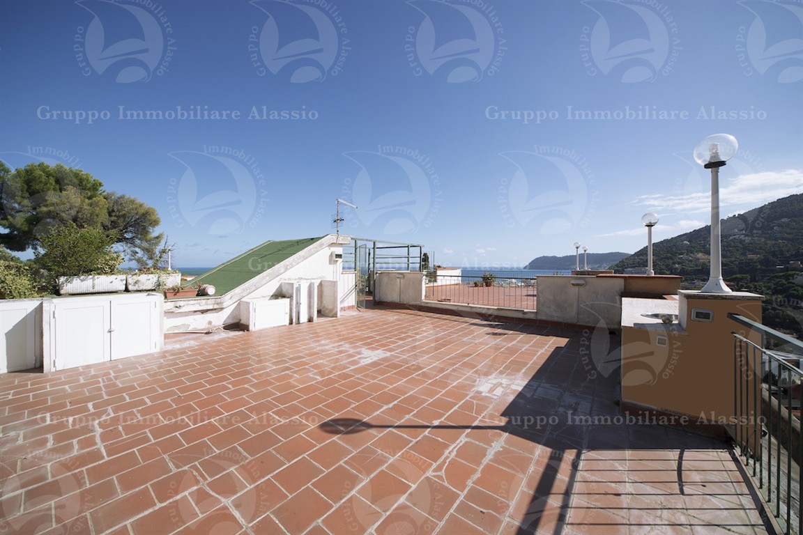 On the very first hill of Alassio, in a charming area surrounded by greenery and tranquility, we offer for sale a very bright apartment with a splendid panoramic view of the sea and the surrounding hills. The property comprises an entrance hall leading to a spacious and airy living area with direct access to a large balcony, a separate eat-in kitchen, ideal for entertaining, a large and sunny double bedroom also with balcony access, and a large and functional bathroom with window. Completing the property is a wonderful terrace above the apartment, offering spectacular 360-degree views of the blue sea and the lush green hills: a perfect space for relaxing, sunbathing, or hosting unforgettable al fresco dinners with friends. The apartment is located in a small, elegant building, currently undergoing extraordinary maintenance, and features a convenient shared outdoor area with parking spaces as well as convenient pedestrian access that allows you to reach the center in just 950 meters. Peace, relaxation, and light are the hallmarks of this home, which offers an open and evocative view of the hills and enchanting glimpses of the sea from the terrace. 👉 Book your no-obligation visit now and let yourself be won over by this oasis of tranquility in Alassio.