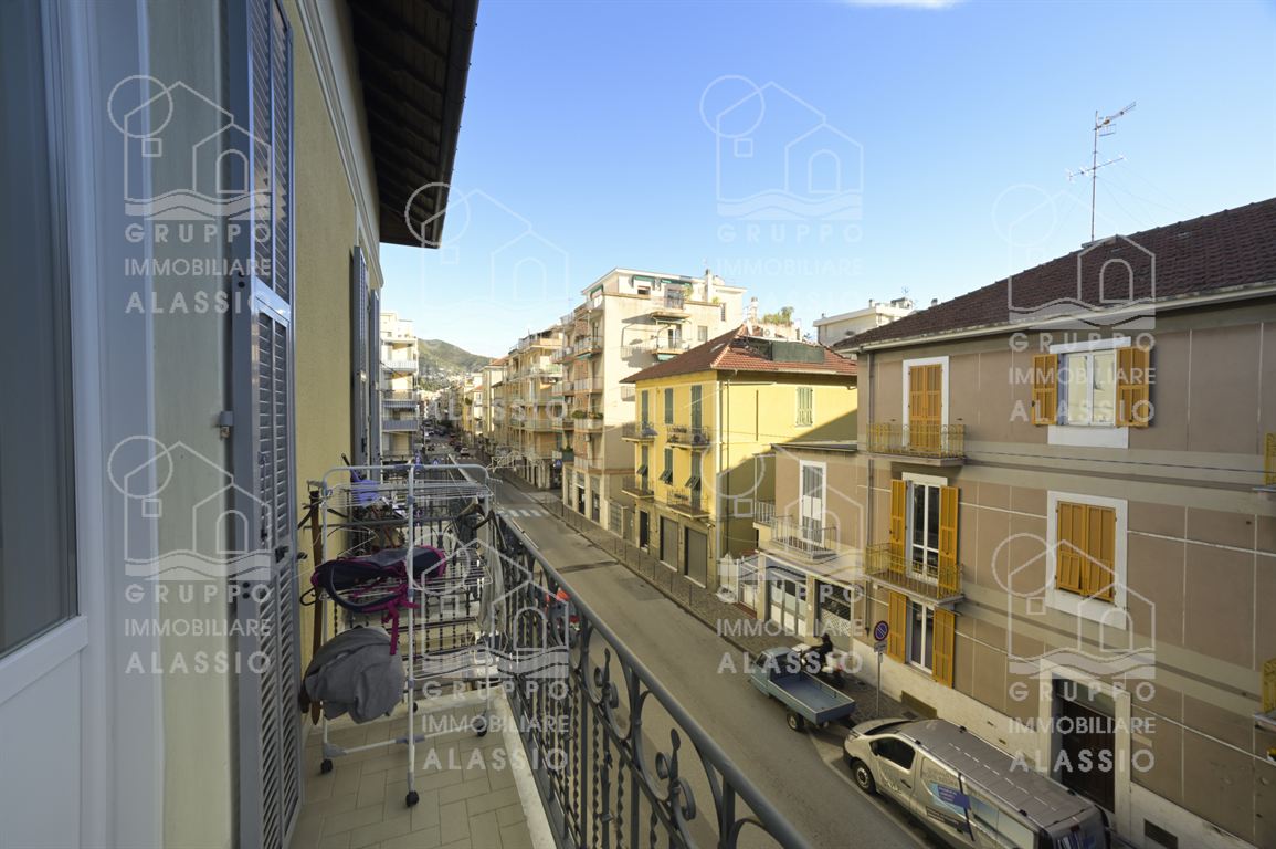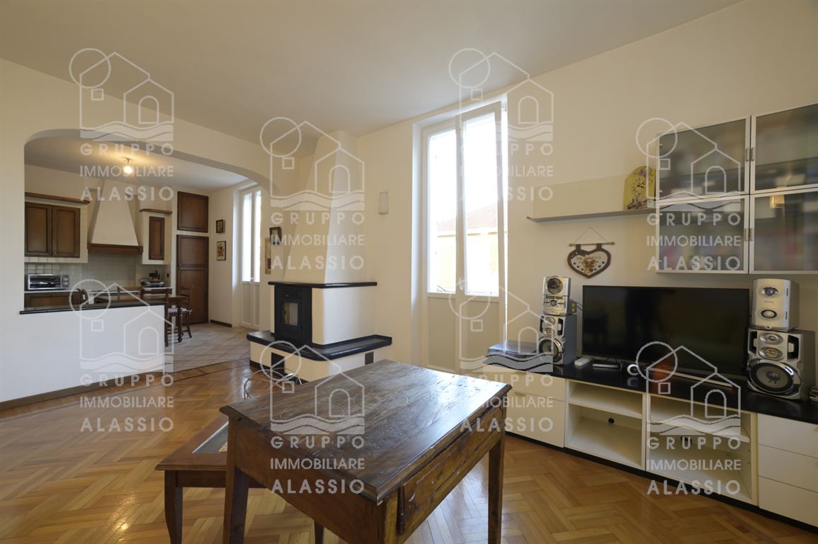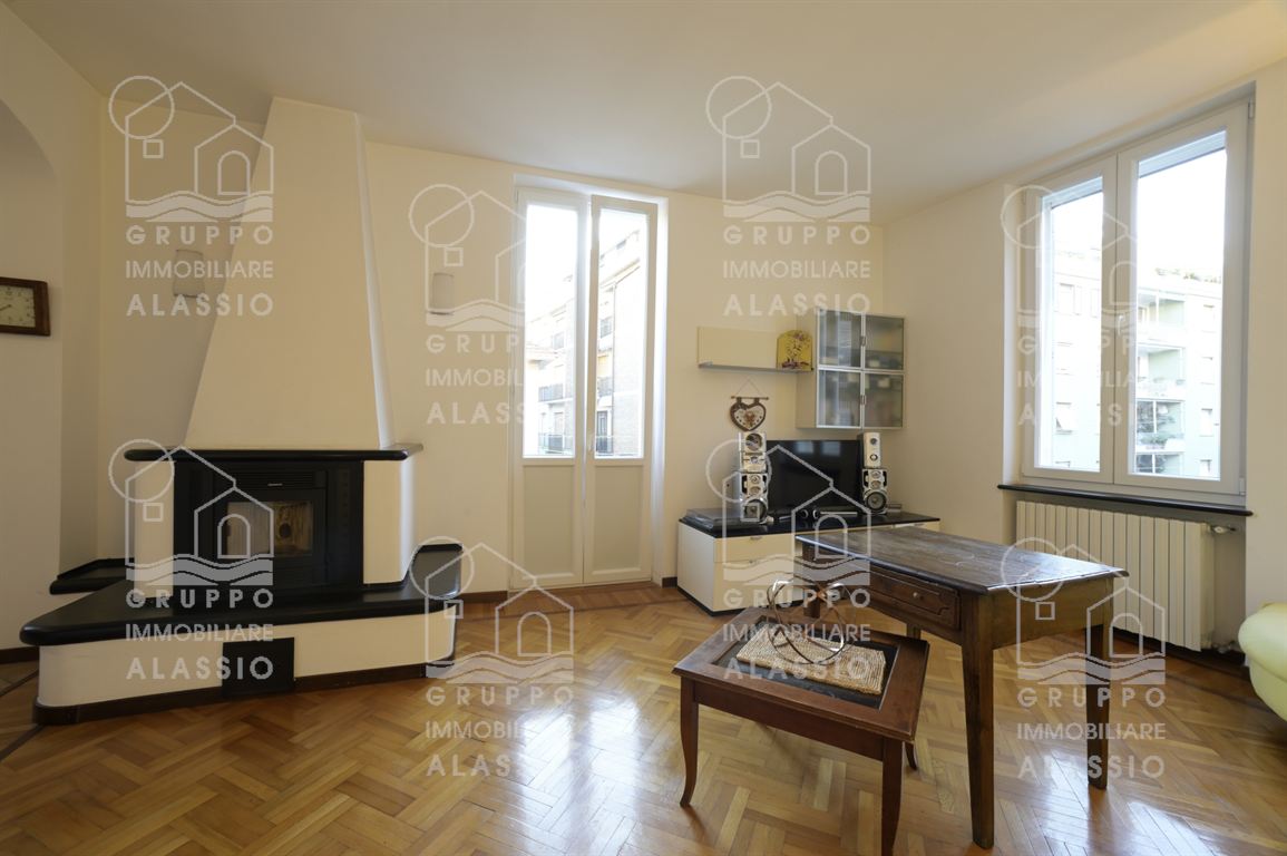 In a period building dating back to 1930, just steps from the sea and the amenities of Alassio, we offer for sale this bright, welcoming, and elegant apartment. The apartment is located on the second floor of an elegant building without an elevator. The apartment comprises an entrance hallway, a spacious and bright living room with an open-plan kitchen and fireplace, three bedrooms, a comfortable bathroom with a window, and a closet. The property enjoys three views, allowing for abundant daylight throughout the day. It also boasts four balconies (two on the sides and two in the living area), and is enhanced by beautiful parquet flooring and large windows. Independent heating and air conditioning are included, and a spacious garage next door is available for an additional fee. This very charming apartment is strategically located within walking distance of all points of interest, including the beach, the historic district, the gym, the swimming pool, the supermarket, the hardware store, bars, and restaurants.