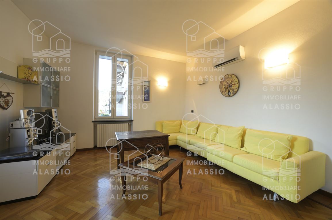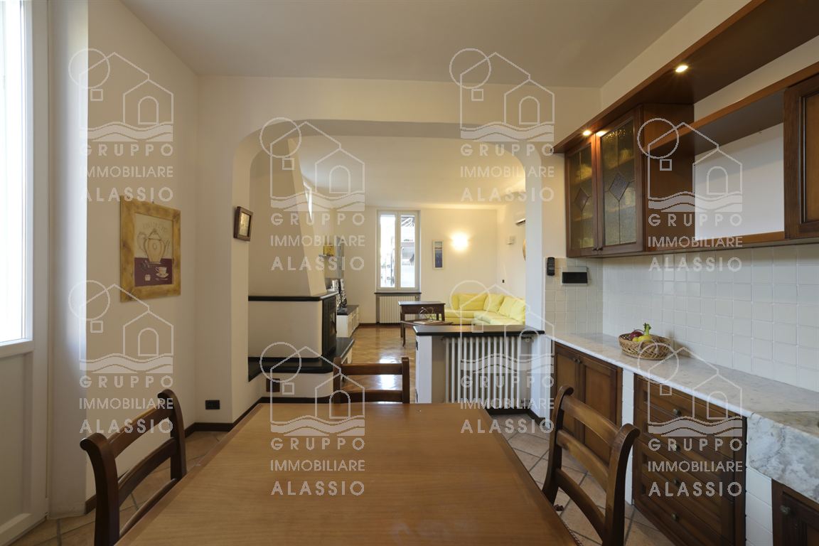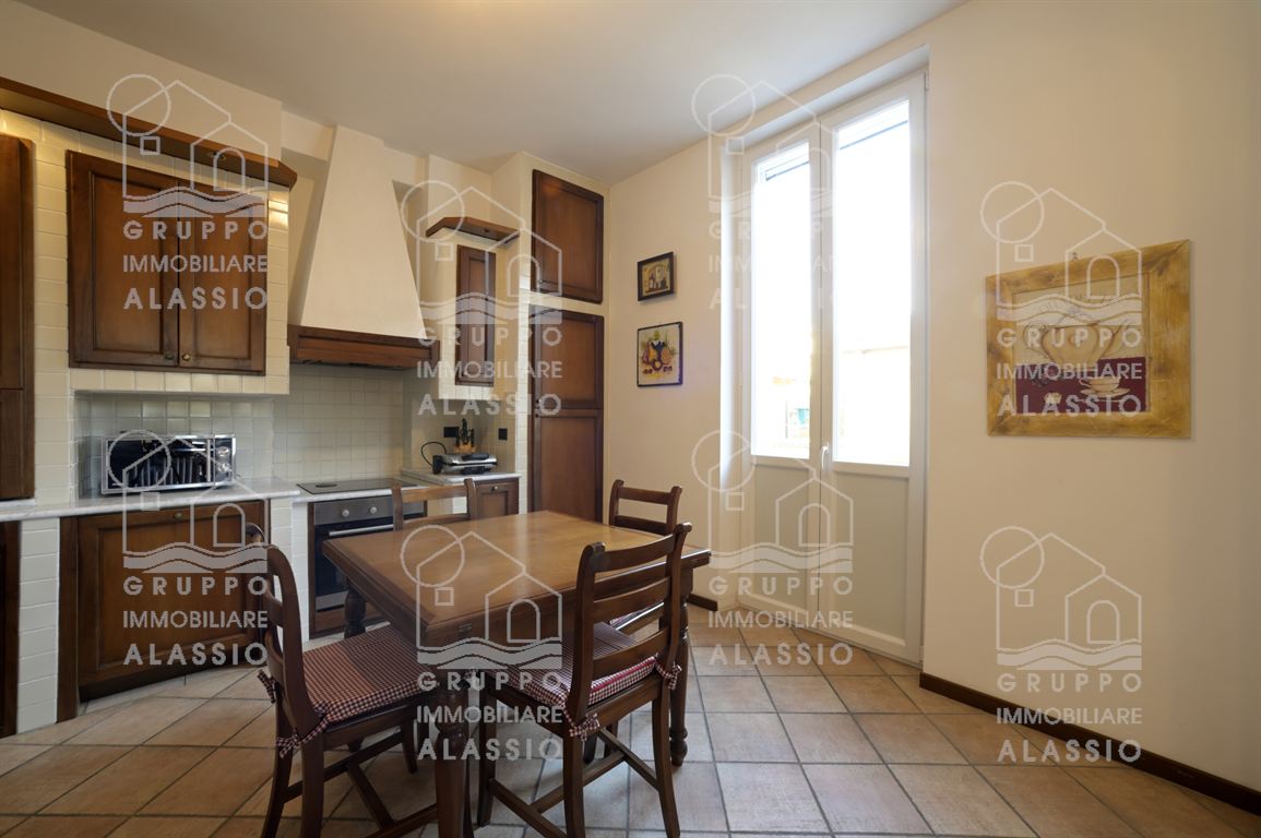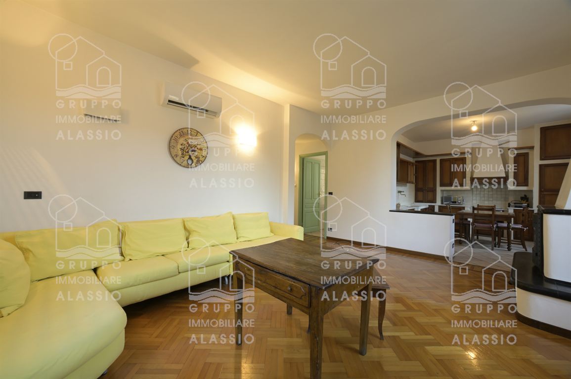 In a period building dating back to 1930, just steps from the sea and the amenities of Alassio, we offer for sale this bright, welcoming, and elegant apartment. The apartment is located on the second floor of an elegant building without an elevator. The apartment comprises an entrance hallway, a spacious and bright living room with an open-plan kitchen and fireplace, three bedrooms, a comfortable bathroom with a window, and a closet. The property enjoys three views, allowing for abundant daylight throughout the day. It also boasts four balconies (two on the sides and two in the living area), and is enhanced by beautiful parquet flooring and large windows. Independent heating and air conditioning are included, and a spacious garage next door is available for an additional fee. This very charming apartment is strategically located within walking distance of all points of interest, including the beach, the historic district, the gym, the swimming pool, the supermarket, the hardware store, bars, and restaurants.