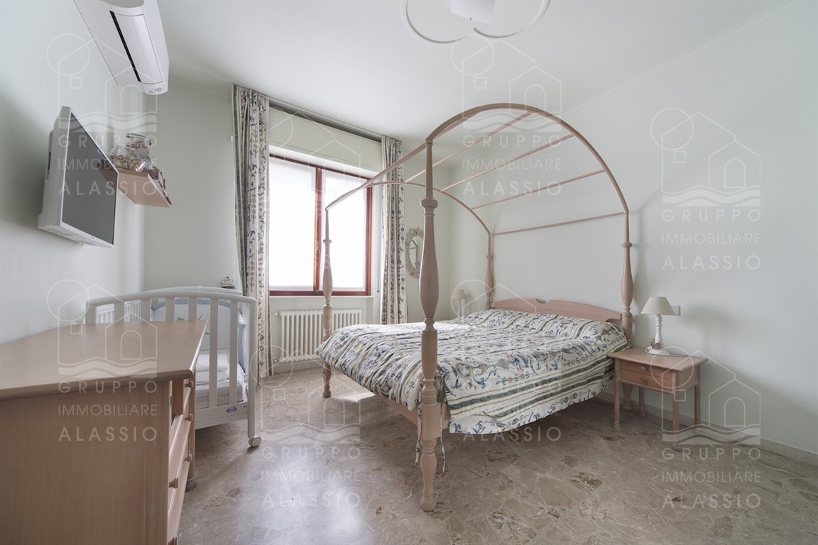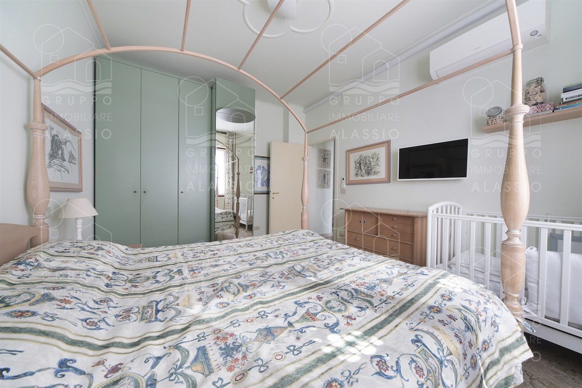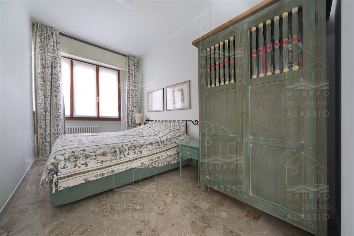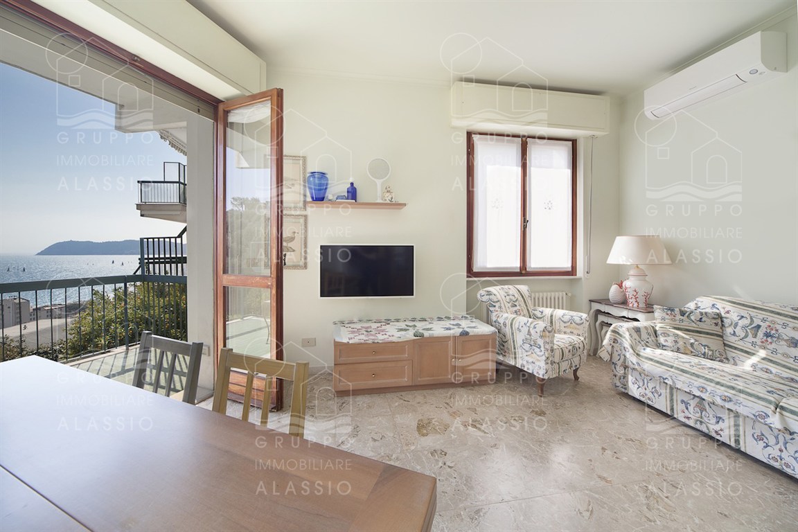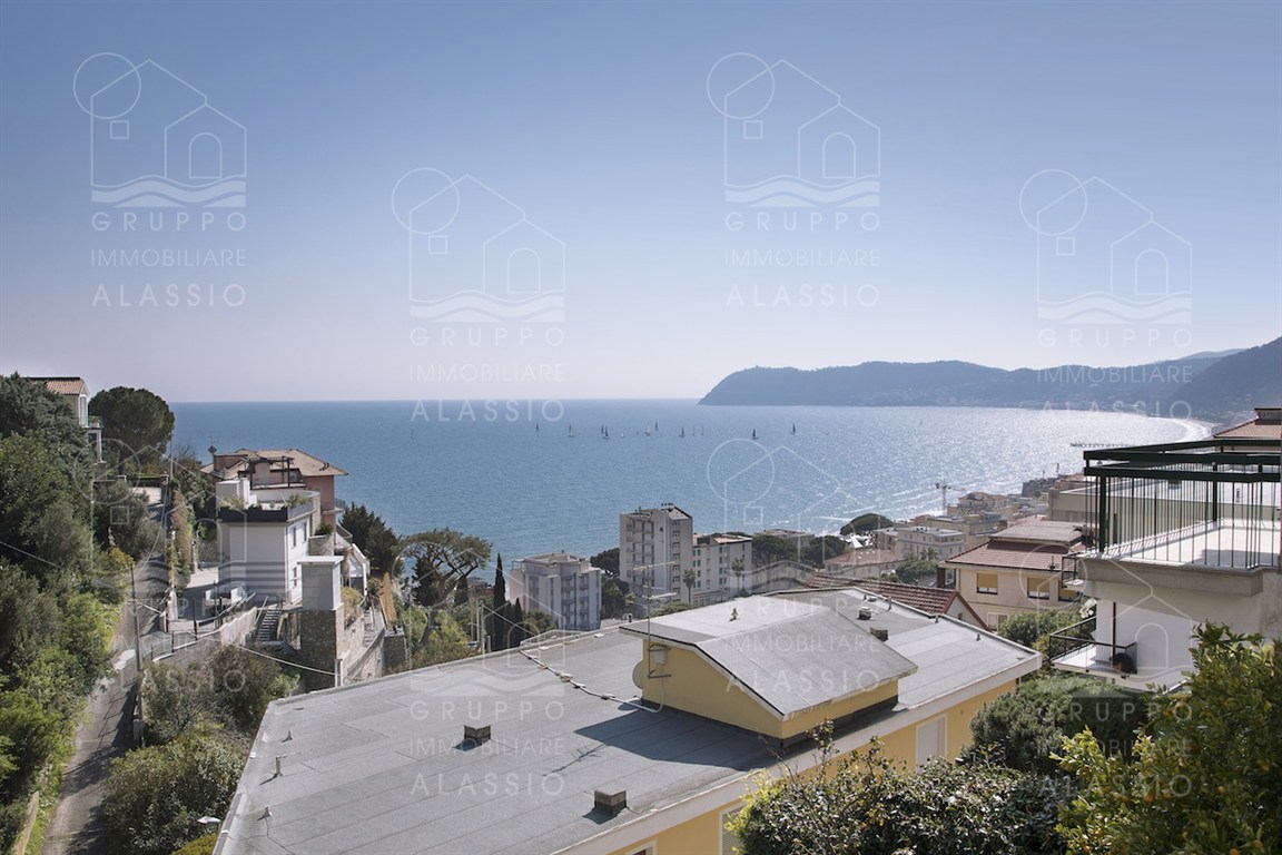 In the Solva area of Alassio, we offer a bright apartment with two balconies overlooking the sea. The apartment comprises an entrance hall with custom-made furniture, two double bedrooms, a large bathroom with a window, an eat-in kitchen with a balcony, a living room with a sea-view balcony, and a closet. A large two-car garage is available for purchase near the apartment. Asking price €410,000