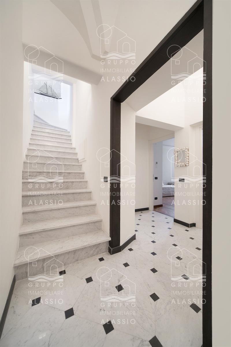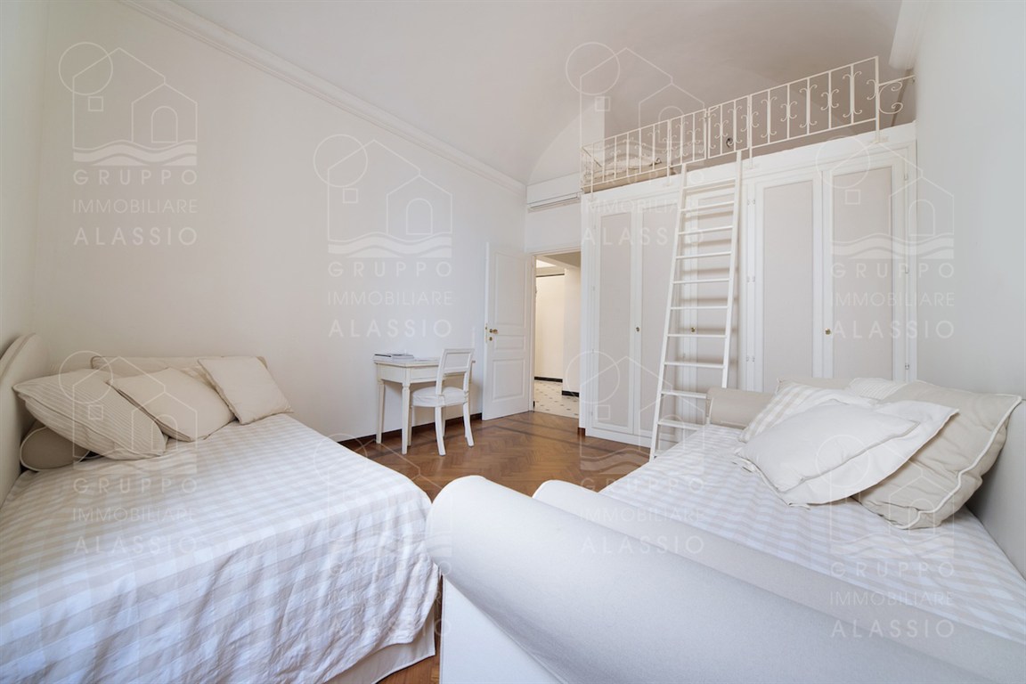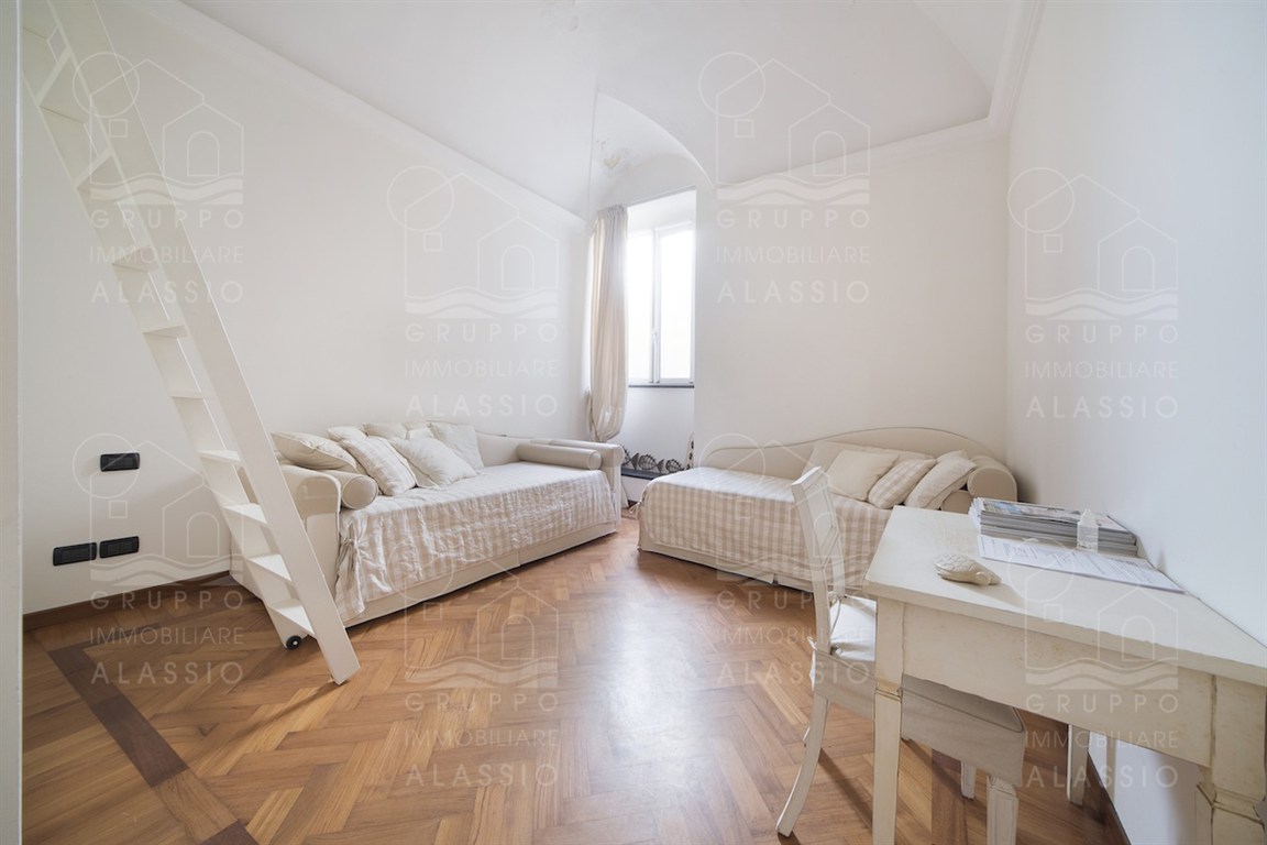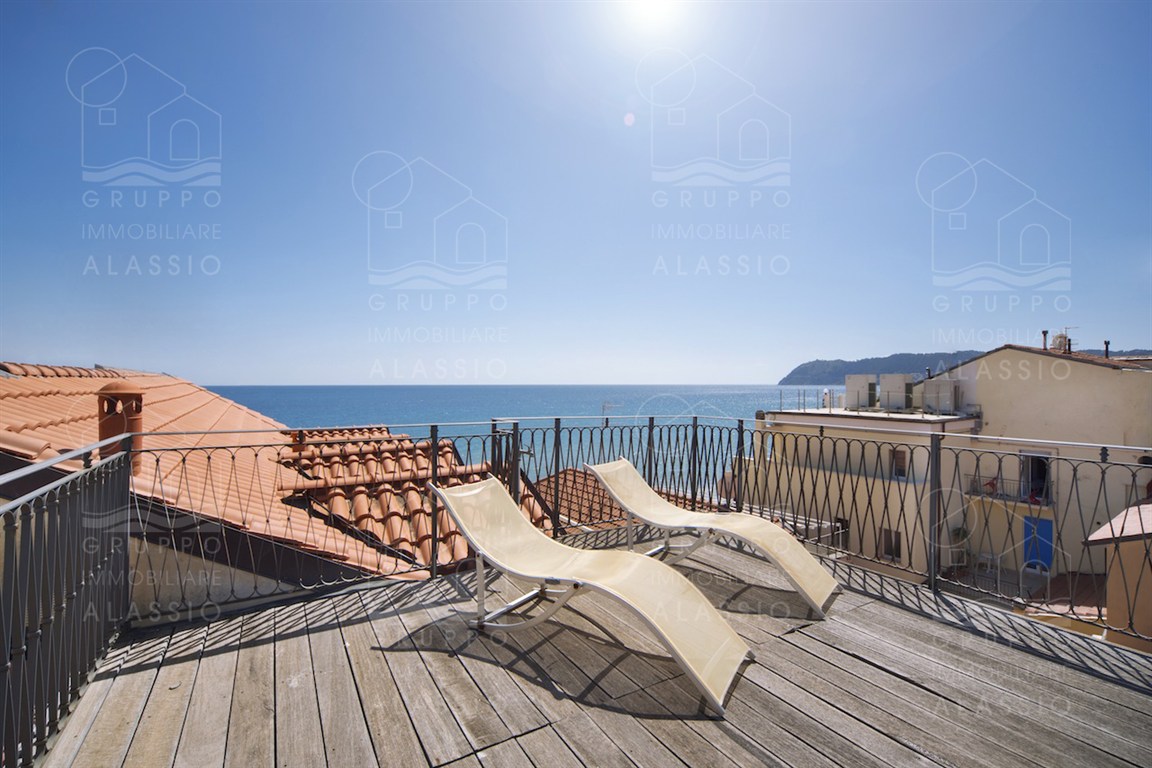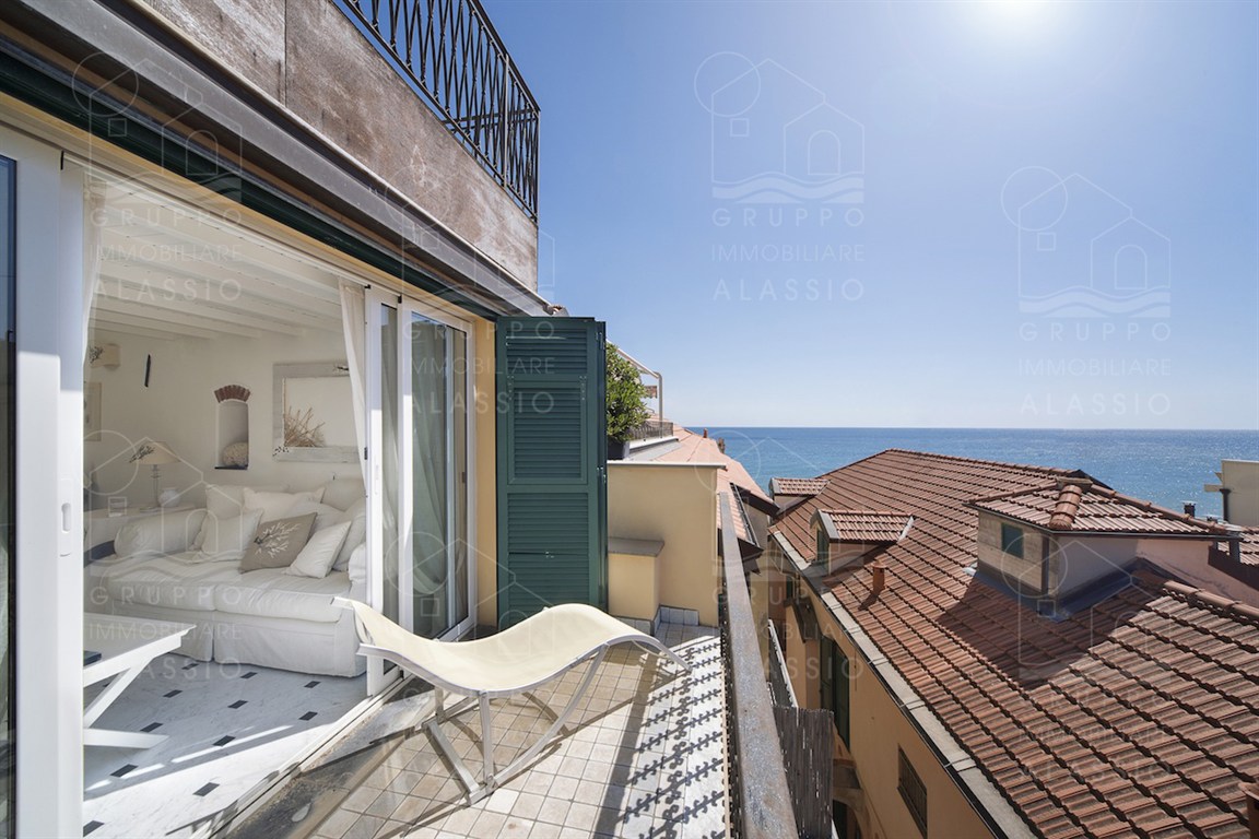 In the historic center of Alassio, we offer a bright apartment with three terraces overlooking the sea. The property is spread over multiple levels, with the entrance on the second floor. The property has been recently renovated and is in excellent condition. The apartment comprises a living room, kitchenette, dining room, two double bedrooms, one with a mezzanine, two bathrooms, two terraces, and a sea-facing roof terrace. it is possible to purchase a garage separately. Asking price: Euro 790,000