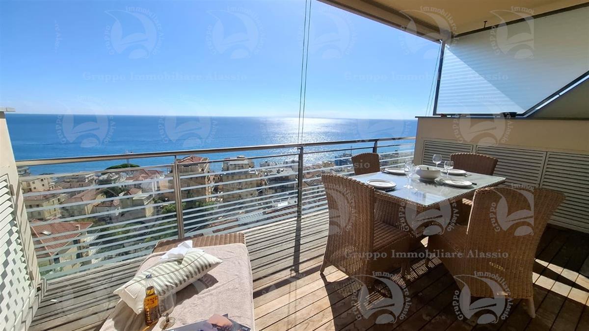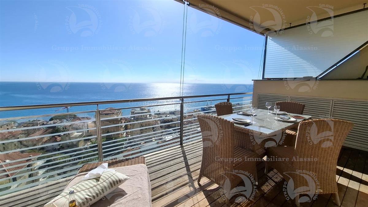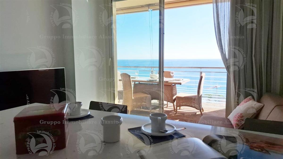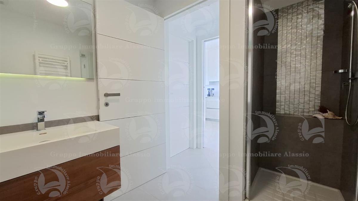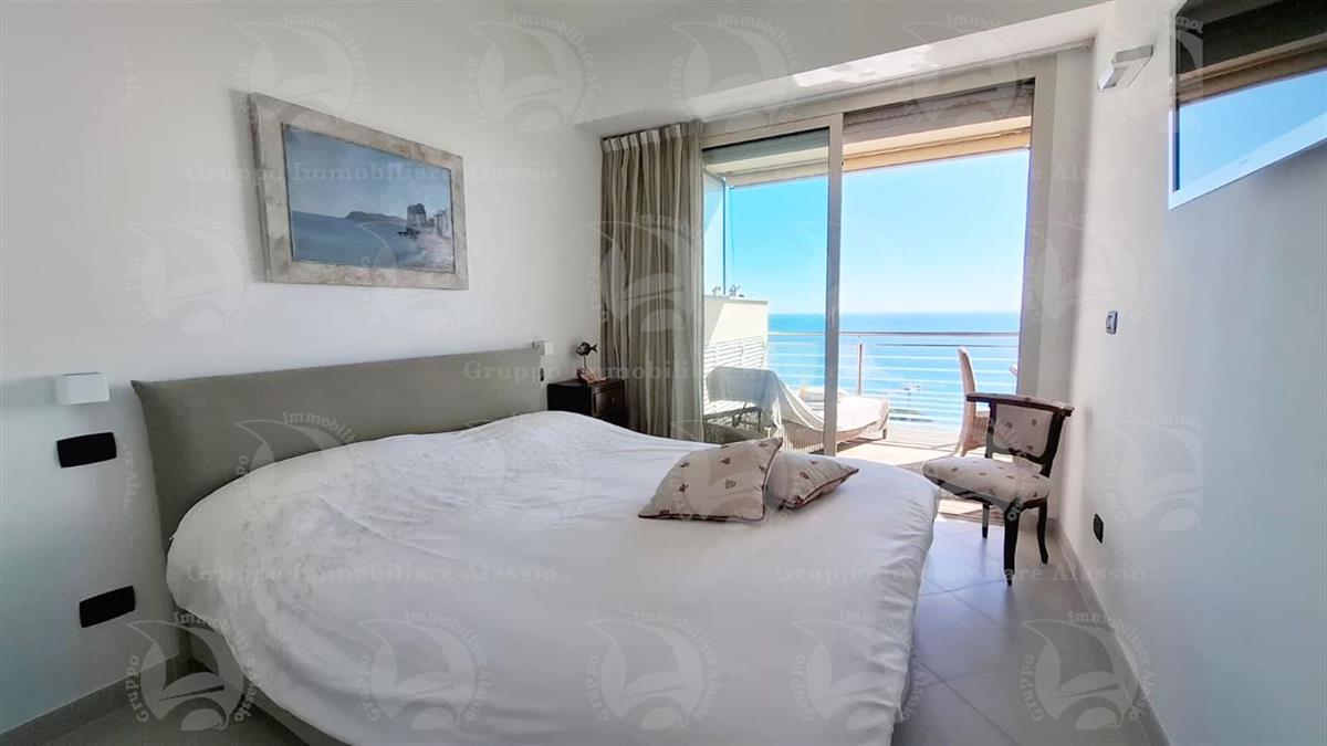Alassio, on the very first eastern hill, we offer this exclusive two-room apartment with sea-view windows and a large terrace. The apartment is located in an exclusive, recently built complex with a swimming pool overlooking the sea. Located on the third floor above ground, the apartment comprises a living room with open-plan kitchen and a glass window overlooking the sea, a double bedroom with a glass window overlooking the sea, a bathroom, and a terrace. Both rooms have direct access to the large terrace from which you can enjoy a full view of the Baia del Sole. The furnishings, curated by architects and custom-made with taste and quality, are included in the sale price. The apartment comes with a large and convenient private parking space, easily accessible by any car, from super sports cars to large SUVs. And to store bicycles, a convenient cellar, accessible without any steps.
