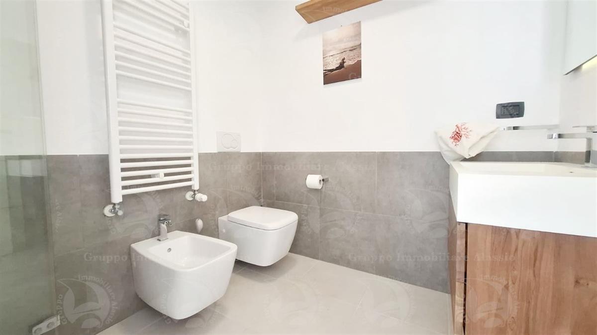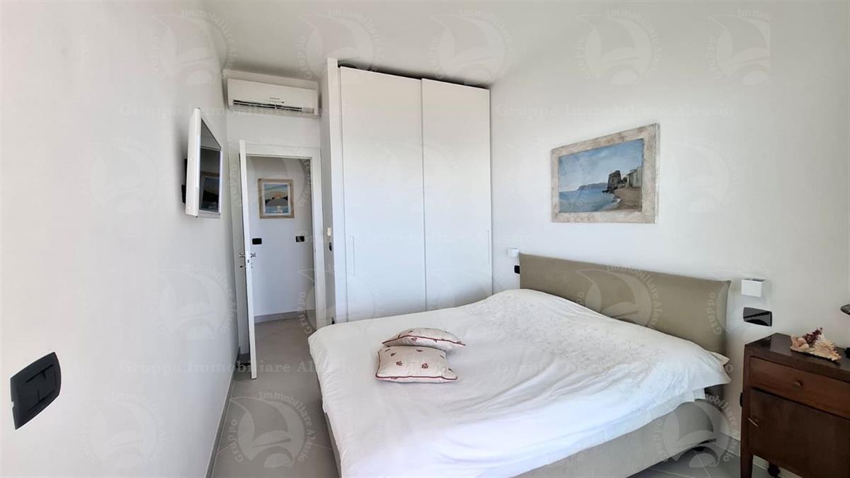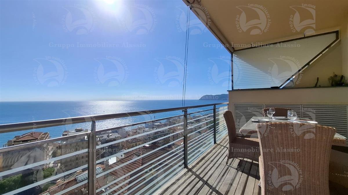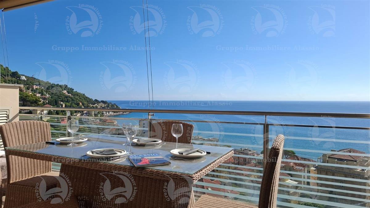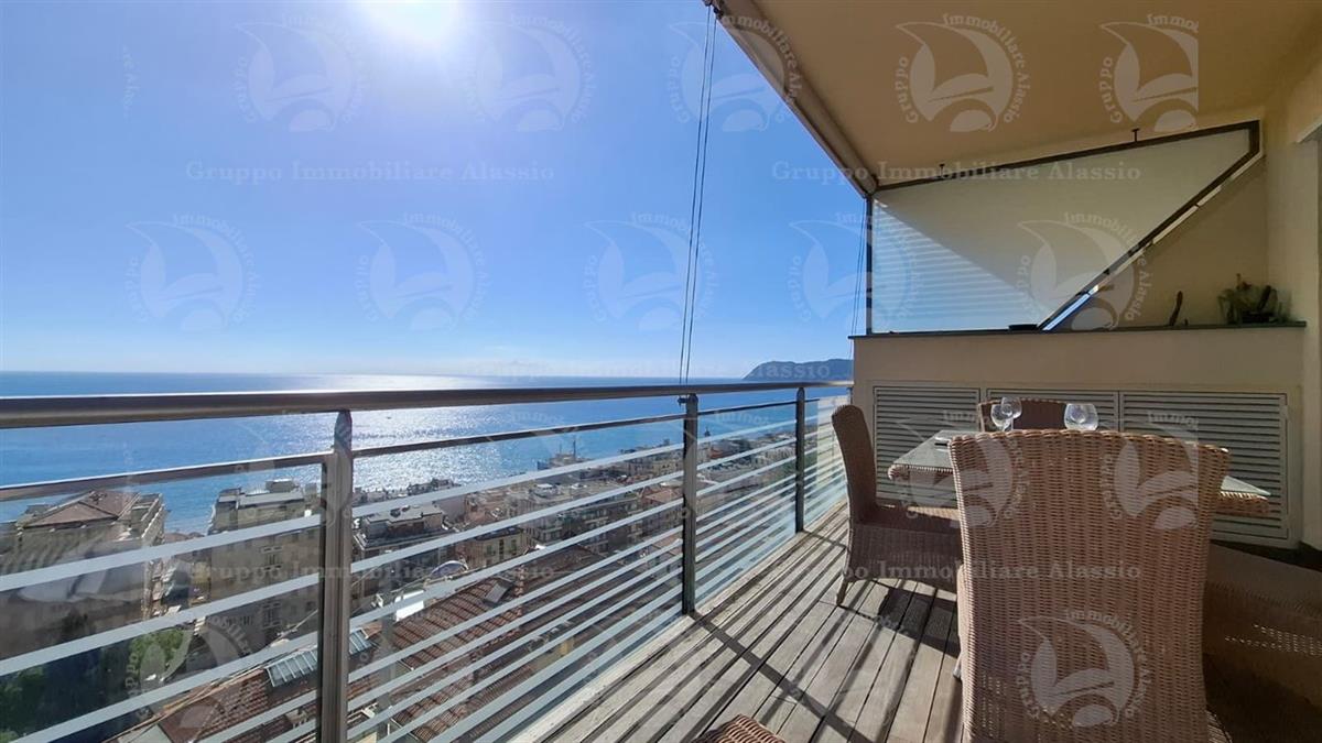 Alassio, on the very first eastern hill, we offer this exclusive two-room apartment with sea-view windows and a large terrace. The apartment is located in an exclusive, recently built complex with a swimming pool overlooking the sea. Located on the third floor above ground, the apartment comprises a living room with open-plan kitchen and a glass window overlooking the sea, a double bedroom with a glass window overlooking the sea, a bathroom, and a terrace. Both rooms have direct access to the large terrace from which you can enjoy a full view of the Baia del Sole. The furnishings, curated by architects and custom-made with taste and quality, are included in the sale price. The apartment comes with a large and convenient private parking space, easily accessible by any car, from super sports cars to large SUVs. And to store bicycles, a convenient cellar, accessible without any steps.