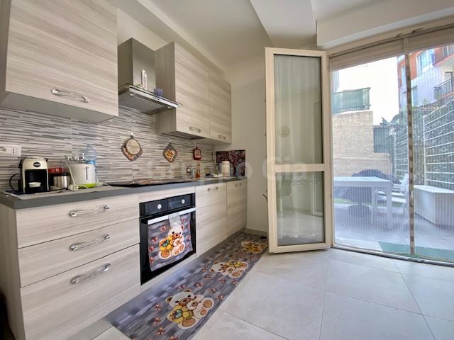 In a recently built residential complex featuring large common areas and a shared swimming pool, we offer a bright two-room apartment on the ground floor with a private 50 sq m terrace. The approximately 50 square meter apartment comprises a living room with kitchenette, a double bedroom, and a bathroom with shower. The modern, well-designed rooms feature high-quality finishes. Outside, a large 50m2 private terrace offers the ideal space for al fresco dining and relaxation. The property includes a parking space and an exclusive cellar. The well-kept and quiet complex offers residents a splendid swimming pool area and communal green areas perfect for leisure. Ideal solution as a main residence, holiday home or investment.