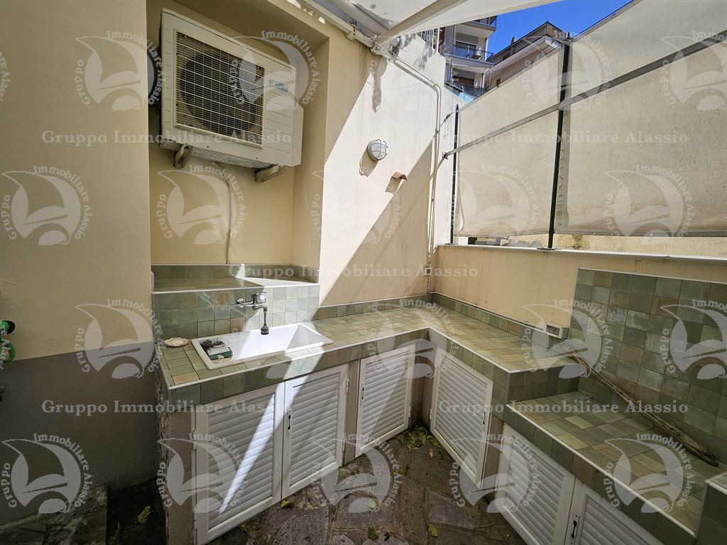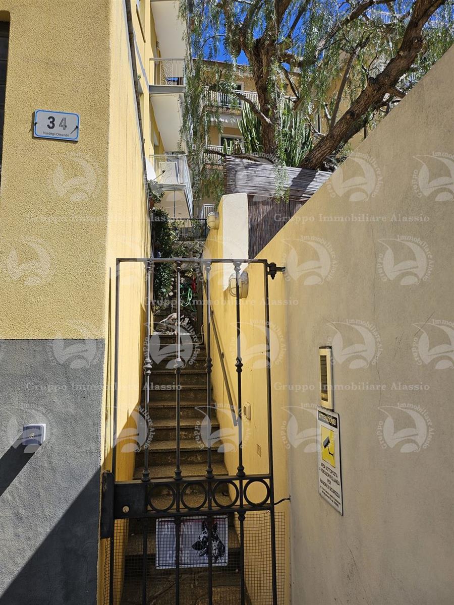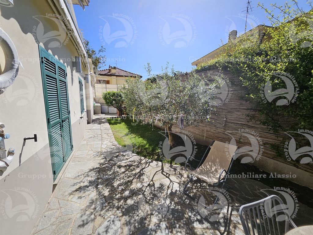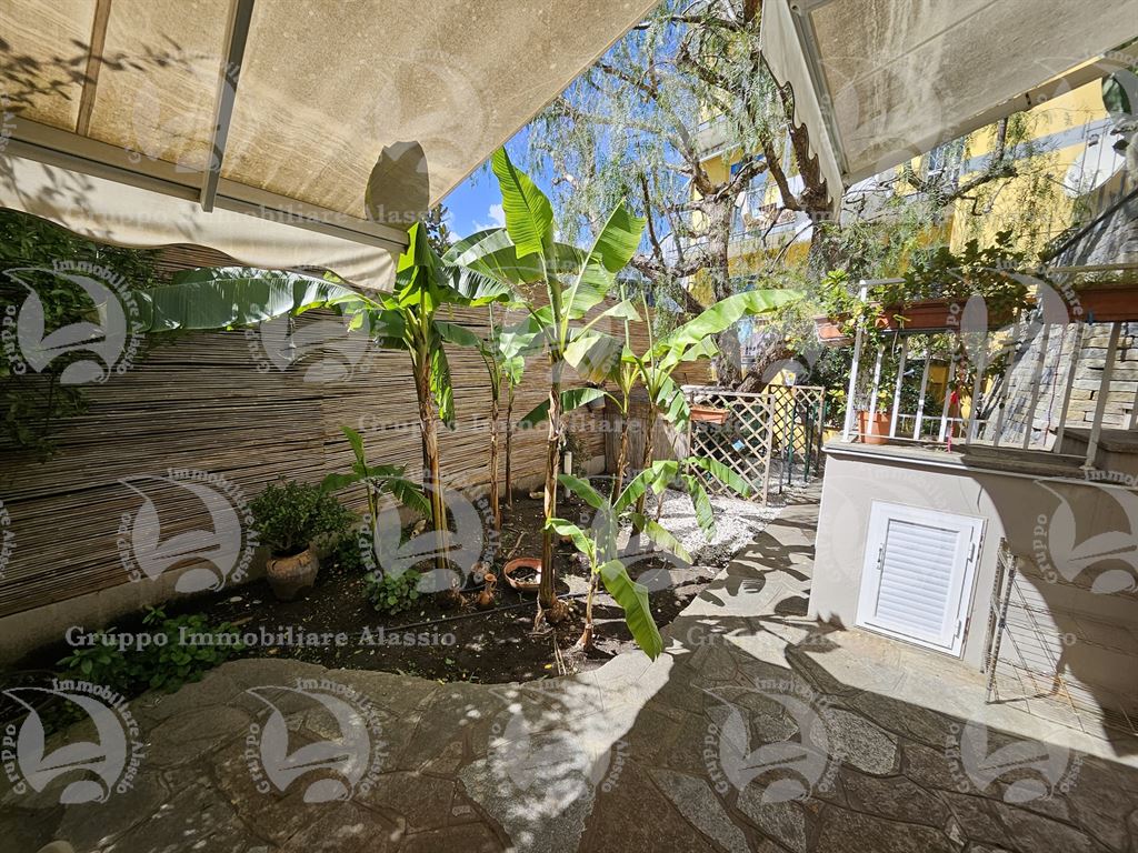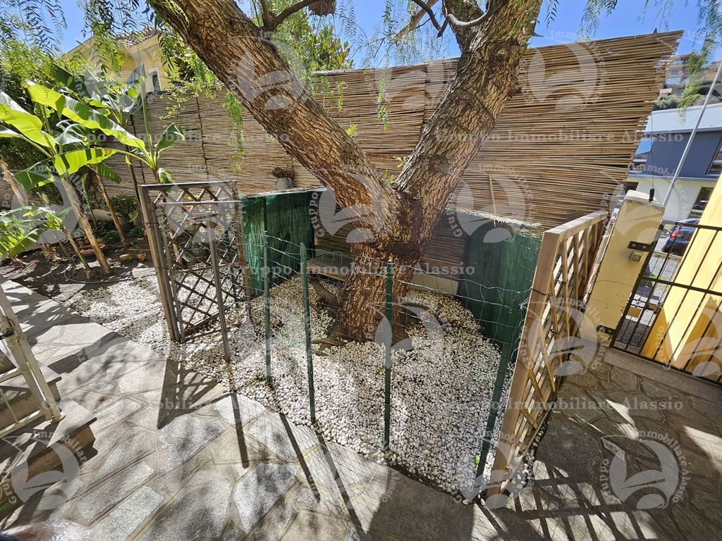 Alassio, near the Ollandini Middle School, offers for sale a ground-floor apartment with a private entrance and a large furnished garden planted with citrus and olive trees. The apartment comprises a direct entrance into the living room, a separate kitchen, a double bedroom, a bathroom, and a storage room. All of the rooms overlook the garden, which is fully equipped with electrically extendable awnings, creating a pleasant shaded area, even on the southernmost section, where a kitchenette has been installed for cozy evenings with friends. The property includes a parking space and a motorcycle parking space. A large garage with a mezzanine level is also available.