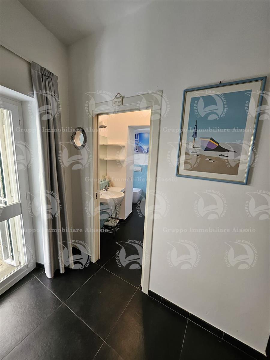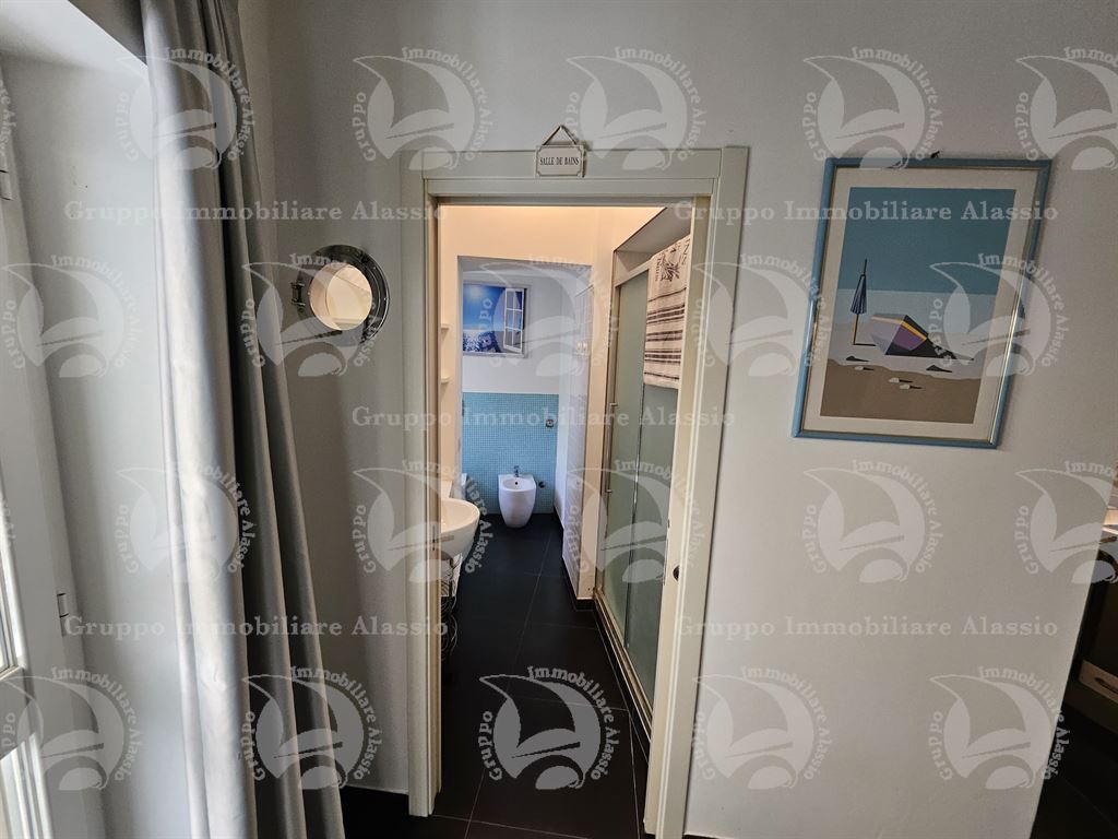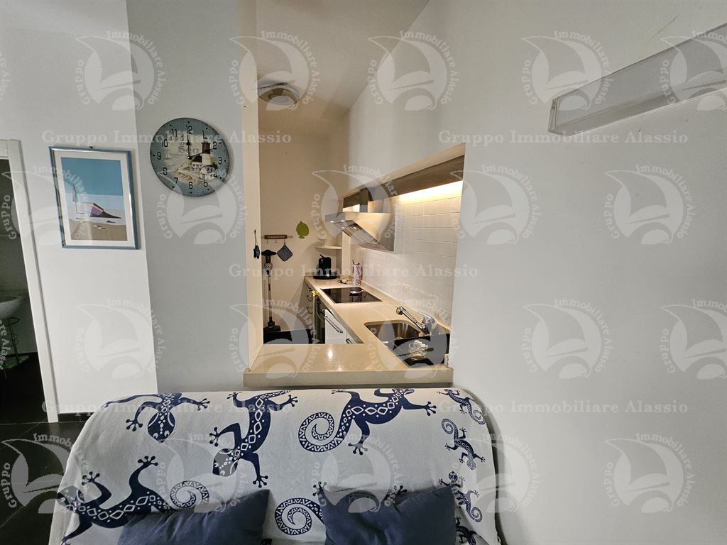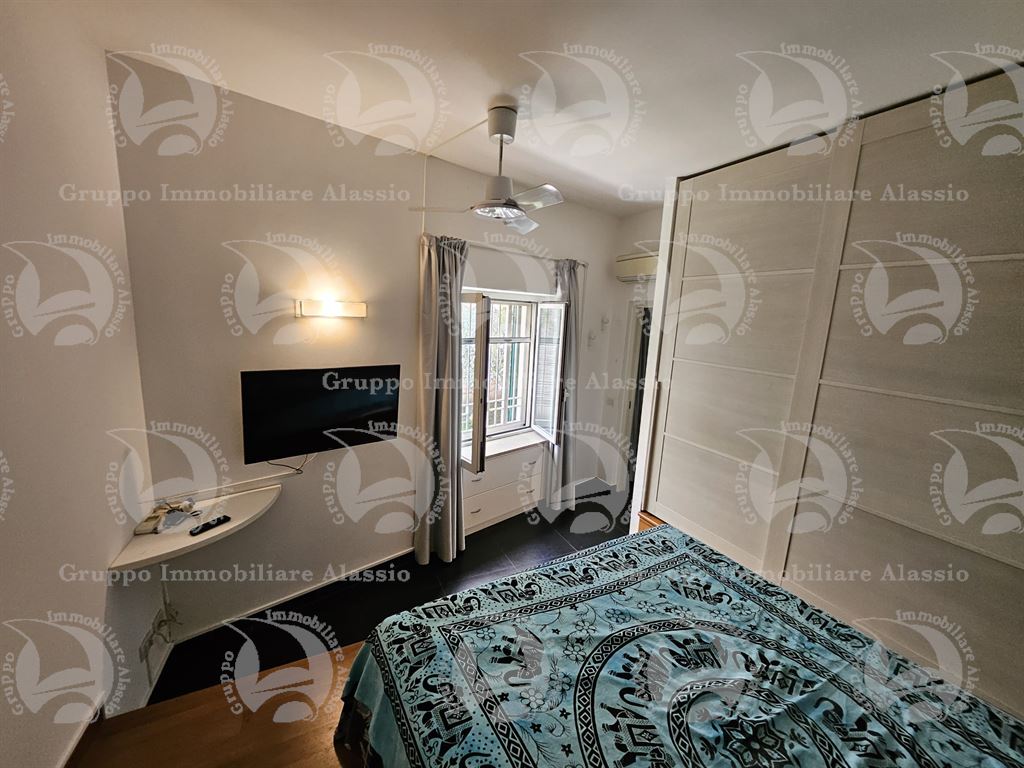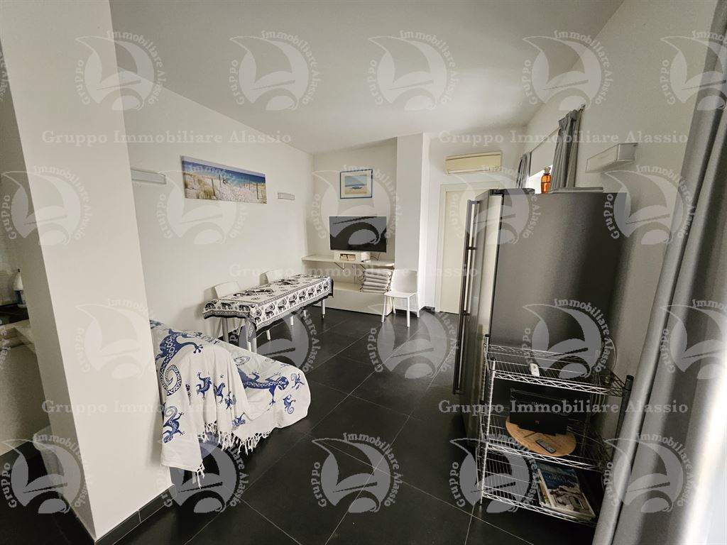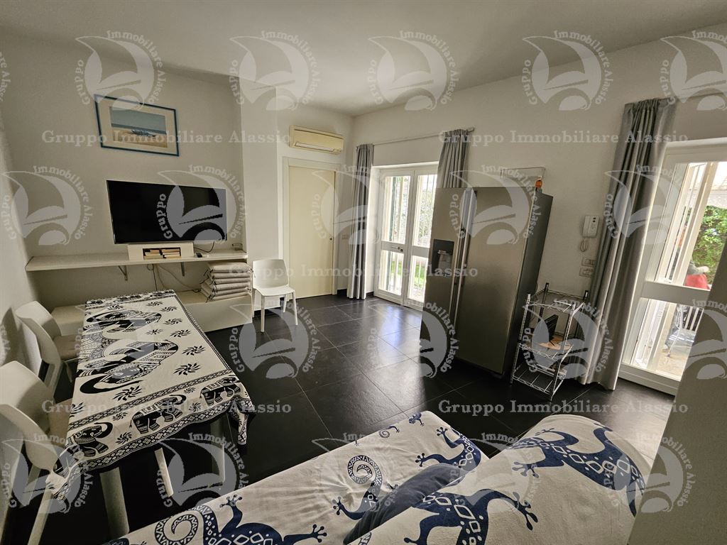 Alassio, near the Ollandini Middle School, offers for sale a ground-floor apartment with a private entrance and a large furnished garden planted with citrus and olive trees. The apartment comprises a direct entrance into the living room, a separate kitchen, a double bedroom, a bathroom, and a storage room. All of the rooms overlook the garden, which is fully equipped with electrically extendable awnings, creating a pleasant shaded area, even on the southernmost section, where a kitchenette has been installed for cozy evenings with friends. The property includes a parking space and a motorcycle parking space. A large garage with a mezzanine level is also available.