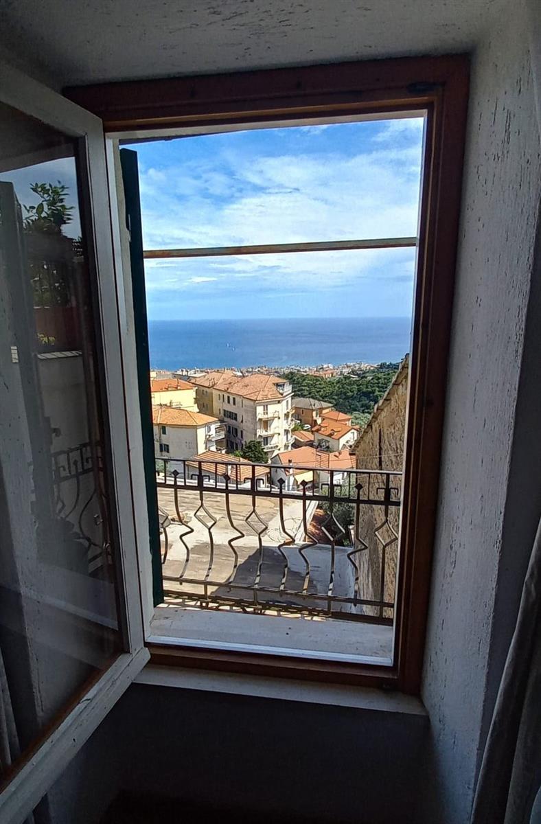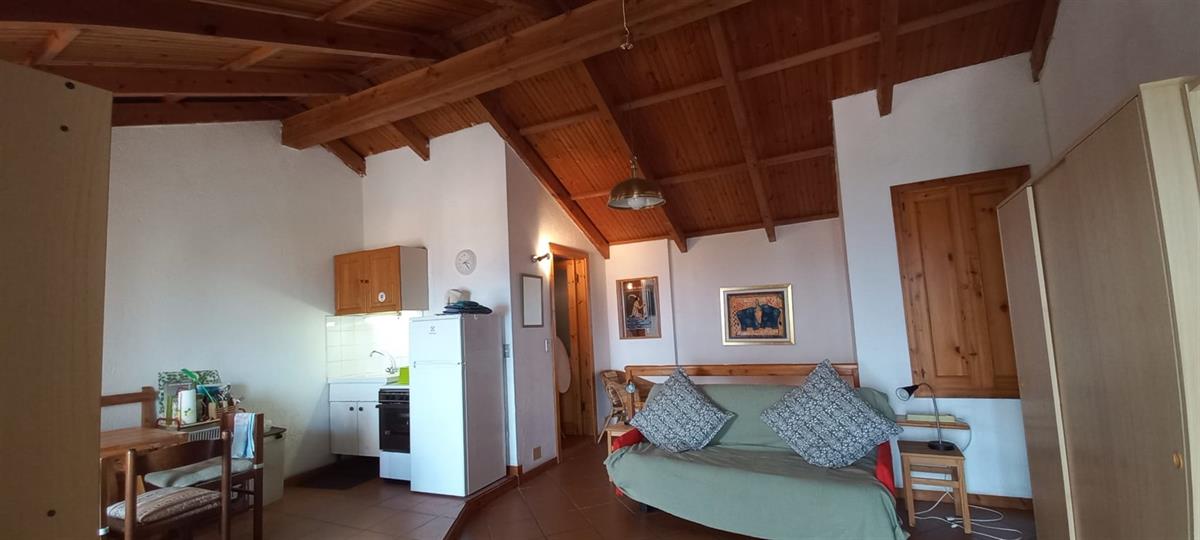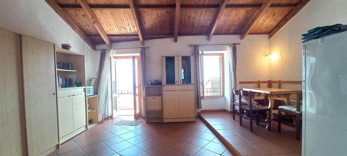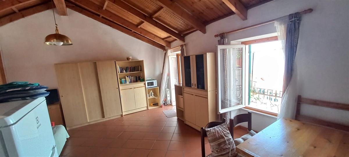 Alassio, in the charming historic center of Moglio, offers for sale a spacious 44 sq m studio apartment. It's clearly a single room with a kitchenette, exposed wooden beam ceilings, and a balcony overlooking the Gulf of Alassio. There are no condominium fees, and the attic was renovated in recent years.
