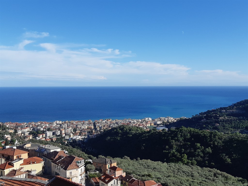 In the municipality of Alassio, in the hilly hamlet of Moglio, a three-level apartment is for sale, completely independent and with no condominium fees. The entrance is at street level, from the typical pedestrian alley of the hamlet's historic center. A bedroom with bathroom is immediately located there. The upper floor also features a double bedroom and another bathroom. Further up, a bright living room with kitchenette opens onto a terrace with a beautiful sea view.