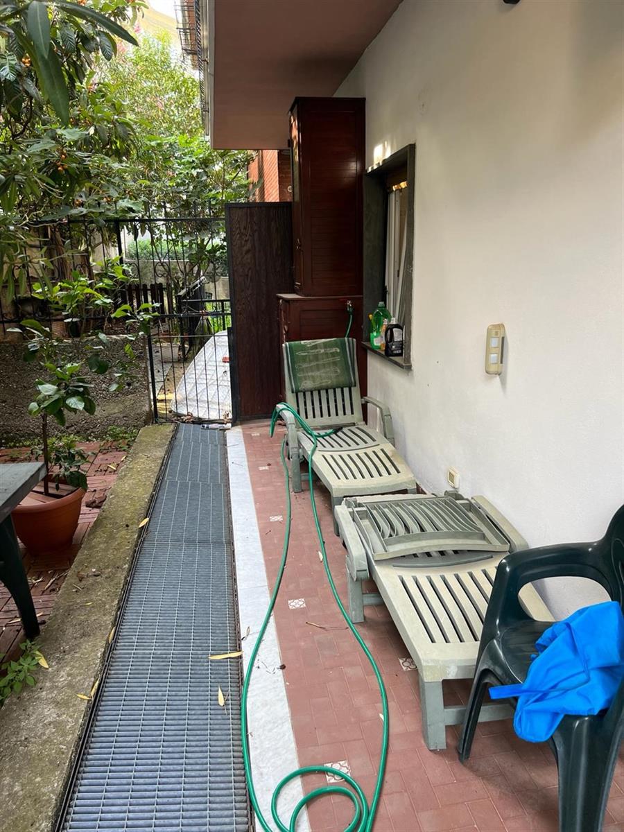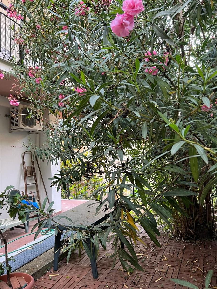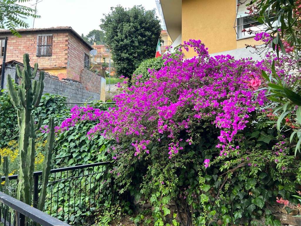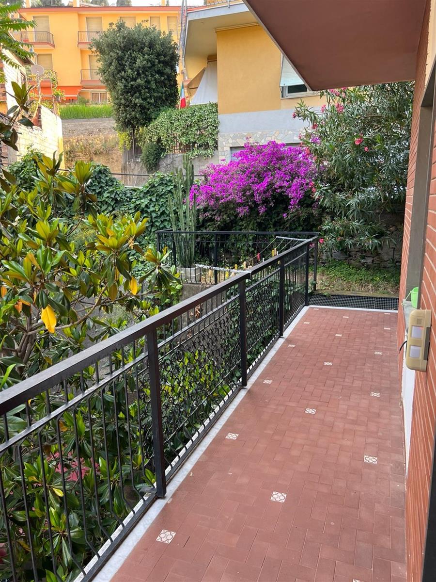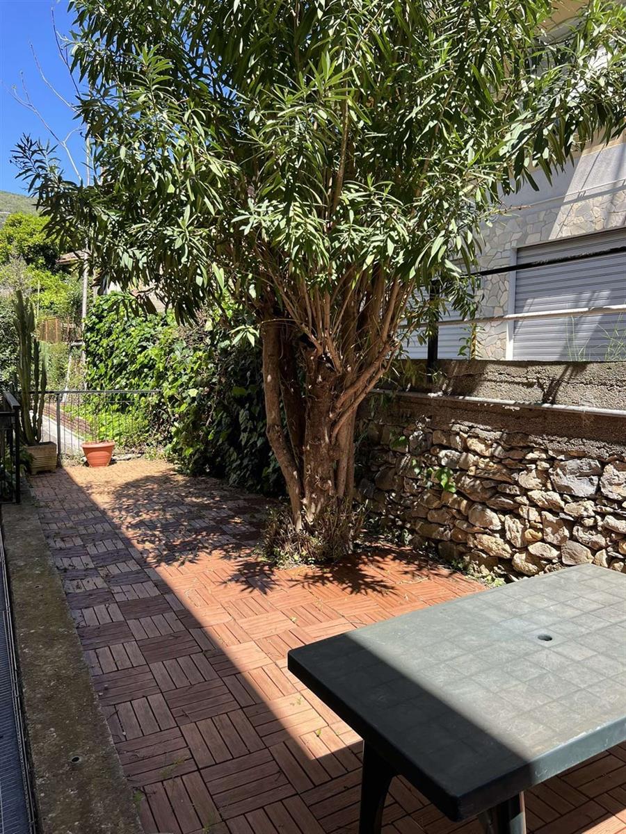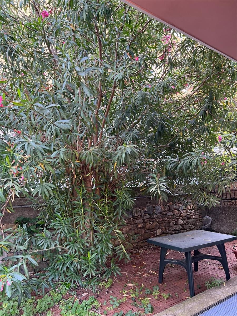 Alassio, near the municipal swimming pool, 800 meters from the sea, offers for sale a two-room apartment on the second floor of a three-story building. A security door leads into the apartment, which comprises a spacious living room with kitchenette, leading directly to a large balcony and then onto a terrace shaded by oleanders and bougainvillea. Returning to the apartment, the living room leads to a hallway leading to a bathroom with window and a double bedroom. The apartment was renovated 10 years ago; currently, upon inspection, it appears to be inhabited, and therefore somewhat disorganized due to the many items scattered throughout the house.