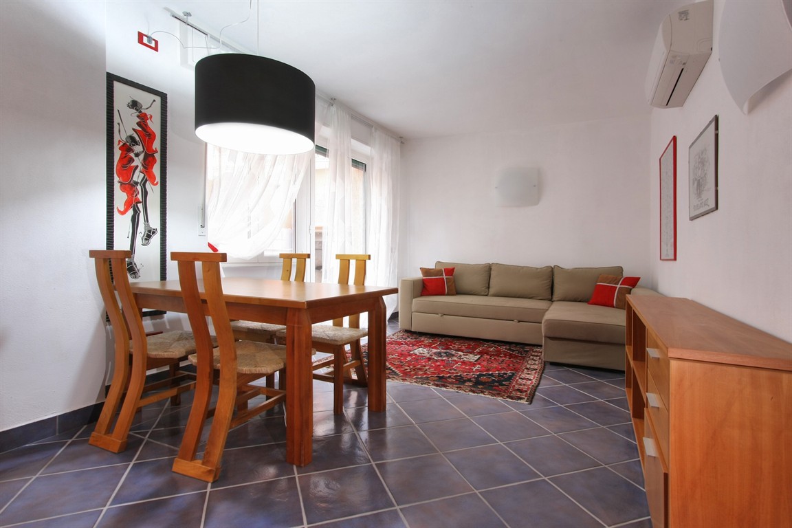 Alassio, in the Borgo Barusso area adjacent to the square where the weekly market is held, offers a fully furnished two-room apartment. This classic apartment features a double bedroom, a living room with kitchenette, a bathroom with window, and a balcony/courtyard overlooking the living room. Independent heating with heat pumps is provided, and the apartment is just 50 meters from the sea and the famous Budello shopping street.