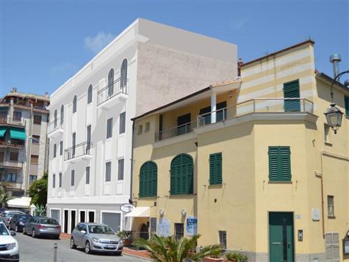 Villa del Sole, newly built three-room apartment with sea views and a balcony. In a recently demolished and rebuilt building, we offer this apartment comprising an entrance hall, living room with kitchenette and balcony, double bedroom, second bedroom, bathroom, and cellar. The property includes a garage (not included in the price).