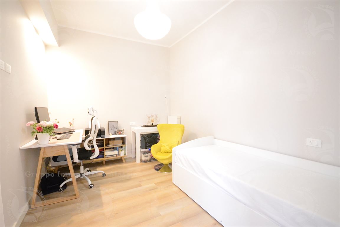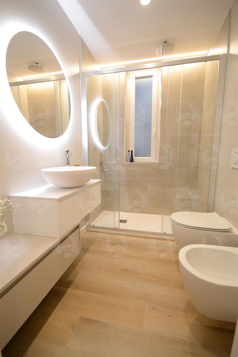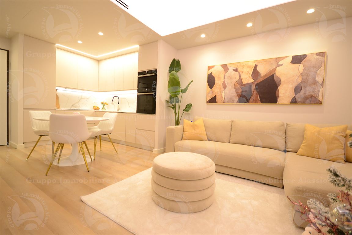 Just 20 meters from the beach, we offer for sale an elegant, completely renovated apartment with modern finishes and state-of-the-art systems. The property opens onto a large, bright living area with an open-plan kitchen and a balcony with side sea views, perfect for enjoying the sea breeze. The sleeping area is composed of: - master bedroom with balcony, - second double bedroom, - bedroom, - main bathroom with designer finishes, - second bathroom with laundry area. Fully custom-furnished with functional and tasteful solutions, it is equipped with a heat pump heating and cooling system with Air Zone system, for maximum comfort in every season. An ideal solution for those looking for a modern home just steps from the sea.
