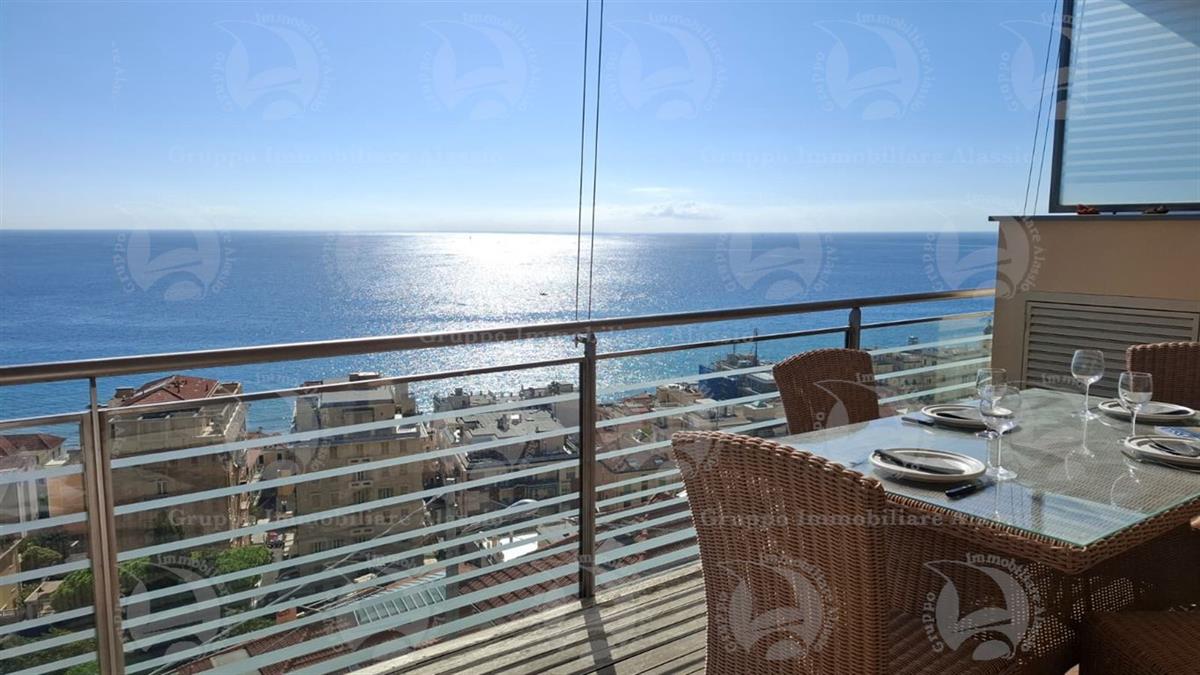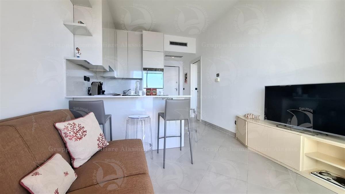 Alassio, on the very first eastern hill, we offer this exclusive two-room apartment with sea-view windows and a large terrace. The apartment is located in an exclusive, recently built complex with a swimming pool overlooking the sea. Located on the third floor above ground, the apartment comprises a living room with open-plan kitchen and a glass window overlooking the sea, a double bedroom with a glass window overlooking the sea, a bathroom, and a terrace. Both rooms have direct access to the large terrace from which you can enjoy a full view of the Baia del Sole. The furnishings, curated by architects and custom-made with taste and quality, are included in the sale price. The apartment comes with a large and convenient private parking space, easily accessible by any car, from super sports cars to large SUVs. And to store bicycles, a convenient cellar, accessible without any steps.