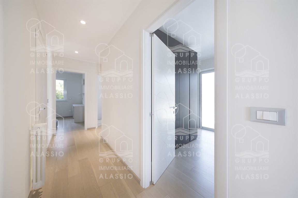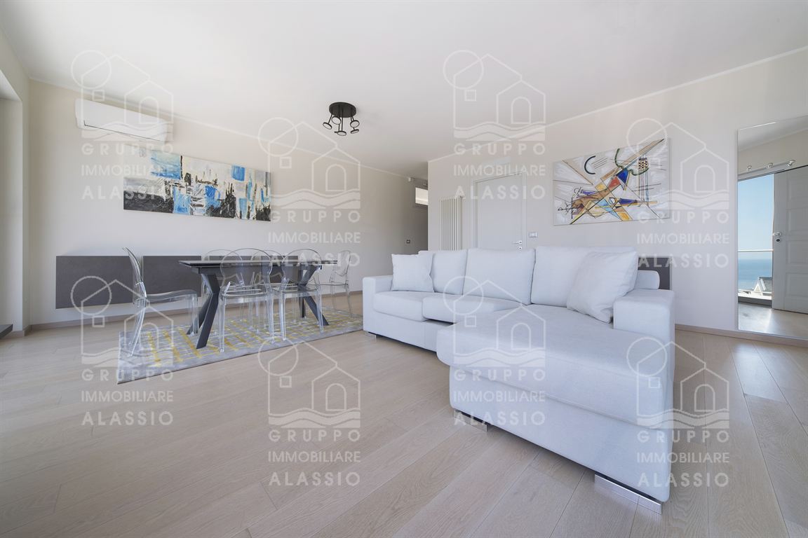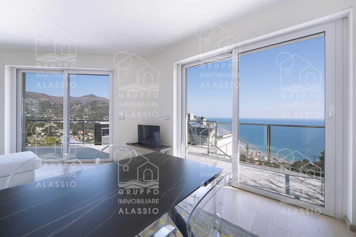 On the picturesque hill of Alassina, we offer a newly built independent apartment, recently furnished with care and style, ready to be moved into. The property consists of: - 3 welcoming and bright bedrooms, furnished with designer furniture - A large living room with kitchenette overlooking a spacious terrace, perfect for enjoying the sunset over the sea and admiring the breathtaking view of the gulf - 3 modern and well-equipped bathrooms - A private garden, ideal for relaxing outdoors - A panoramic terrace offering a breathtaking view of the coast - A large solarium/parking area, perfect for parking your car or enjoying the sun The structure is built with anti-seismic criteria and equipped with: - Thermal and acoustic insulation for a comfortable and silent environment at all times - Thermally insulated windows to reduce energy consumption - Video intercom for greater security - Intrusion detection system to protect your property - High-quality interior finishes, with quality materials and attention to detail A unique opportunity to live in an enchanting location with breathtaking views, in a newly furnished and move-in ready property. Don't miss the chance to visit this wonderful property!
