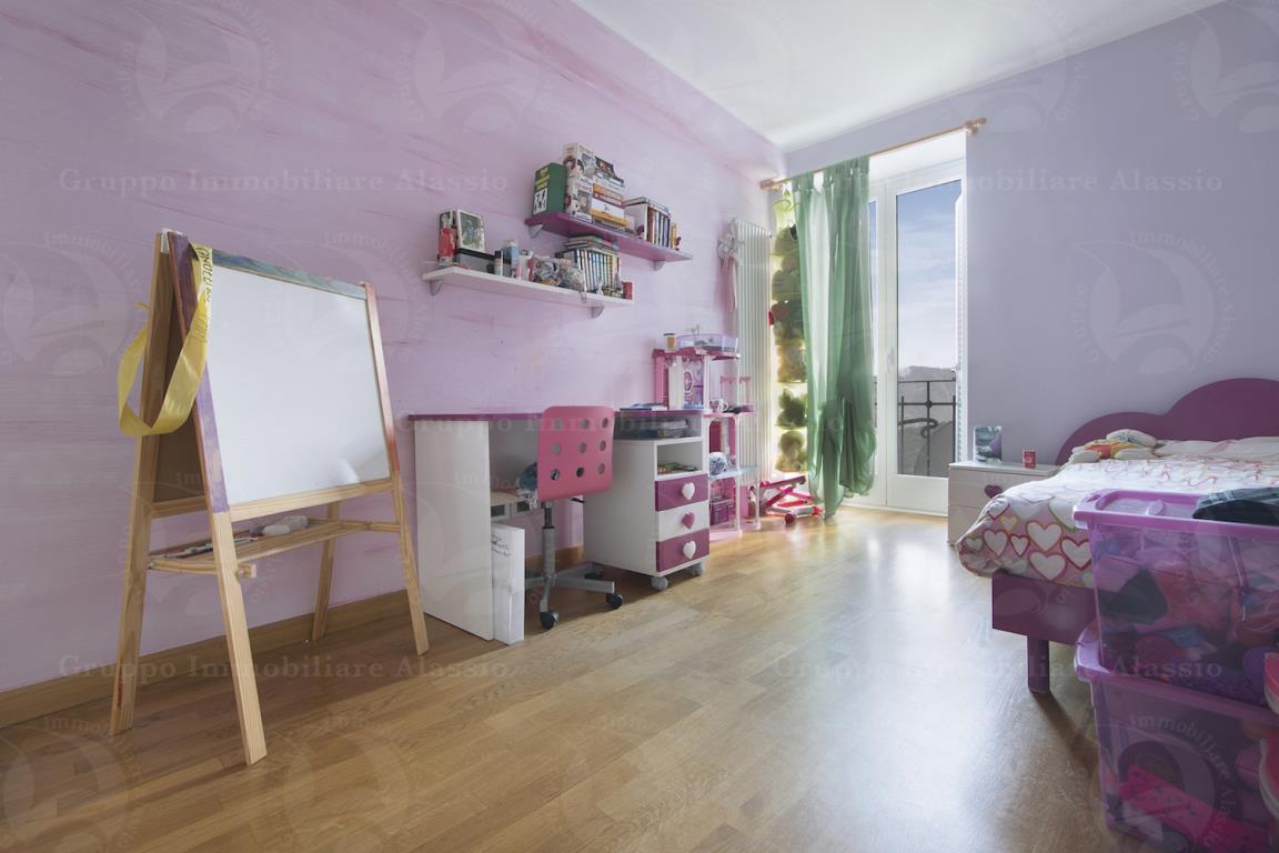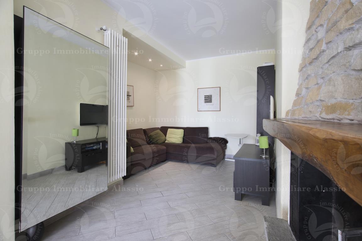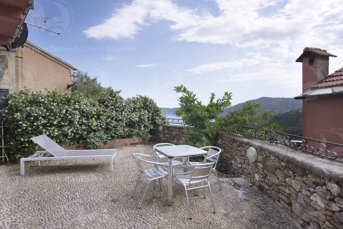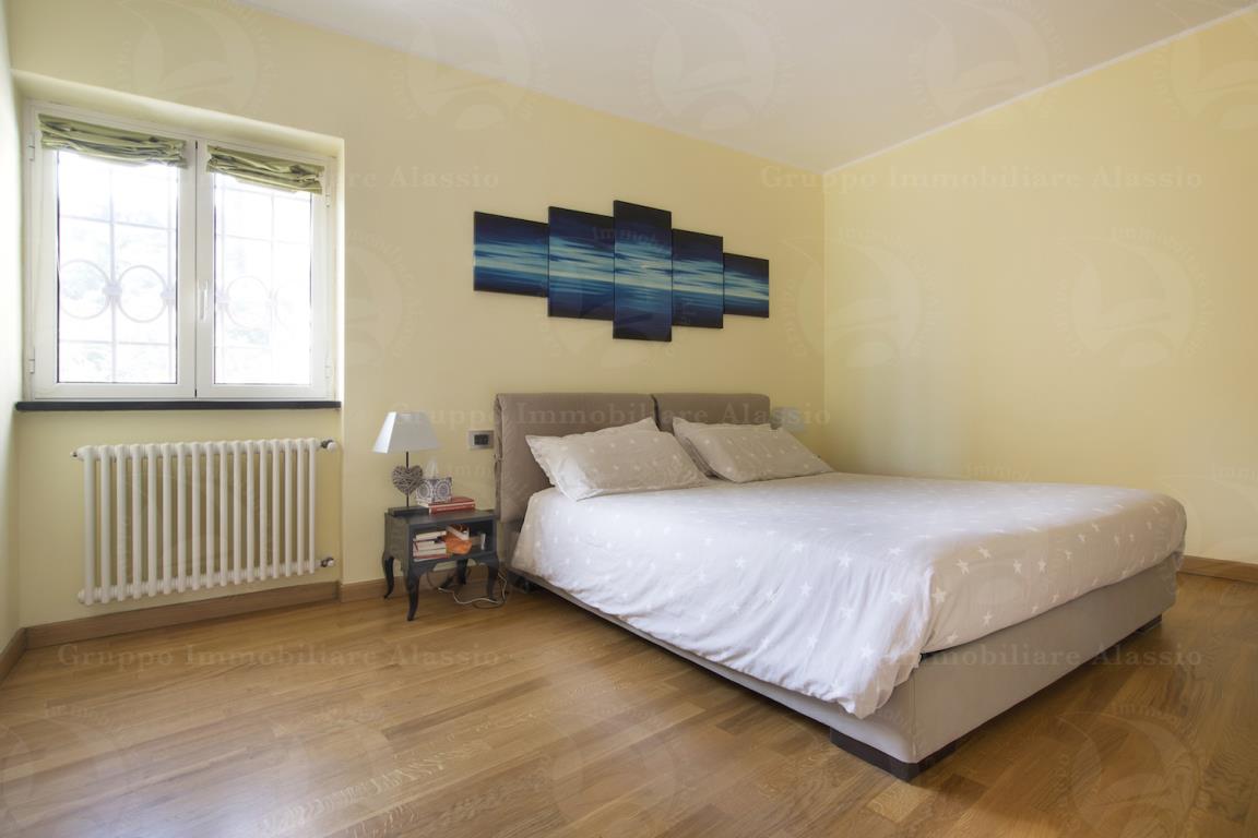 Discover this splendid detached house surrounded by the greenery and tranquility of the hills to the east of the city, just a 5-minute drive from the enchanting beaches of Borgo Coscia and the famous Budello di Alassio. This unique property offers a two-level apartment of approximately 120 square meters, perfect for those seeking a peaceful retreat close to the sea. On the ground floor, you'll find a spacious living area with a fireplace, ideal for relaxing on cooler evenings. The living area is divided into a sofa area, a dining area, and a fully equipped kitchen, perfect for those who love cooking and entertaining. A bathroom and a storage room complete the floor for maximum convenience. Upstairs, the sleeping area offers three bedrooms with breathtaking views of the Gulf of Alassio and two bathrooms. The master bedroom is a true luxury, featuring a private bathroom with a whirlpool tub for moments of pure relaxation. Outside, a private courtyard welcomes you to enjoy sunny days, while the parking space in front of the house adds convenience to your daily life. With 135 sq m of living space and 129 sq m of floor space, this home is in excellent condition and ready to welcome you. Heat pump and natural gas heating ensure year-round comfort. Don't miss the opportunity to live in a corner of paradise!