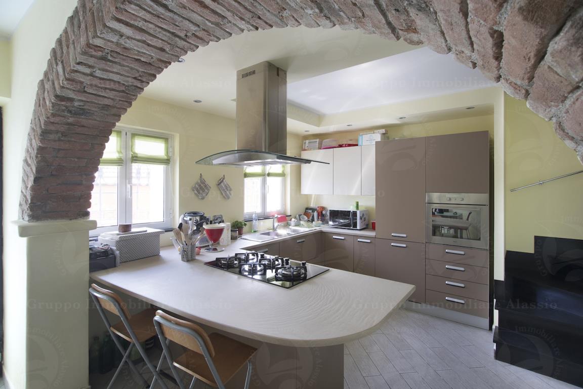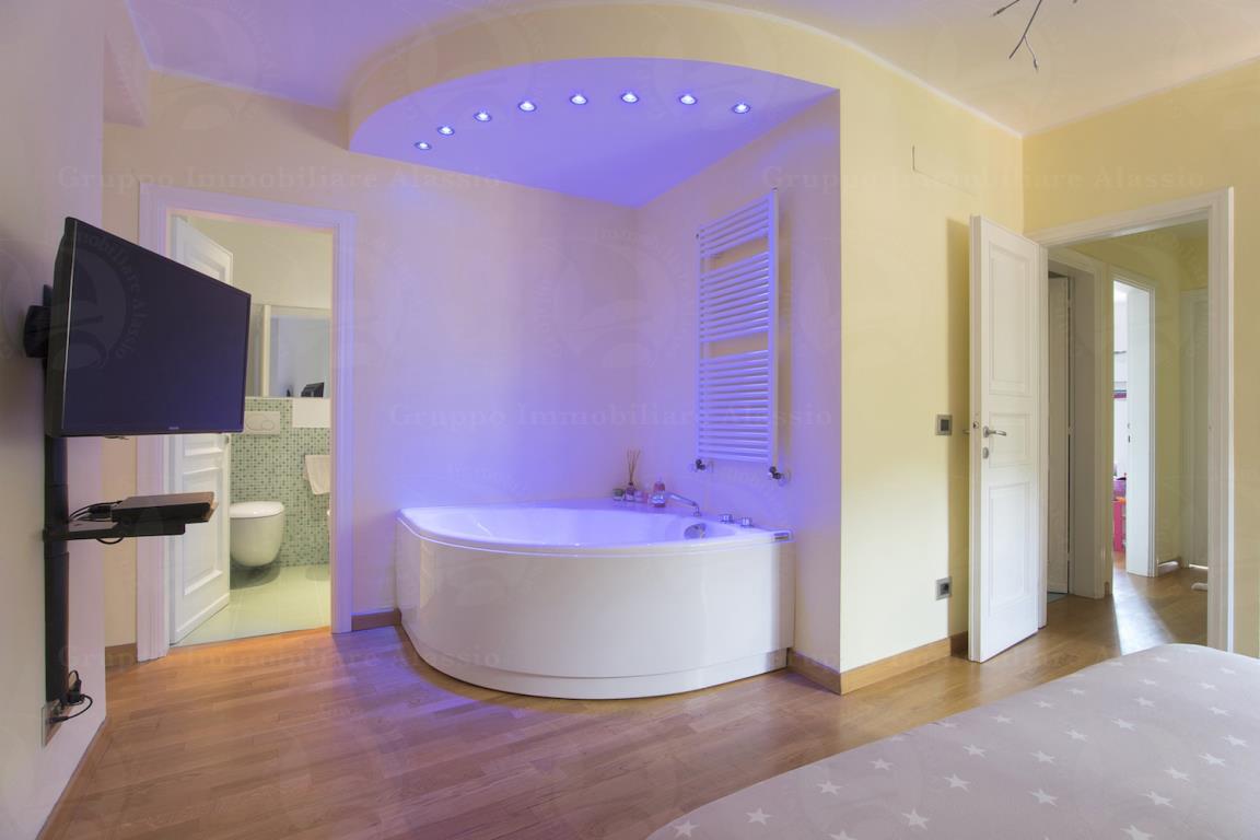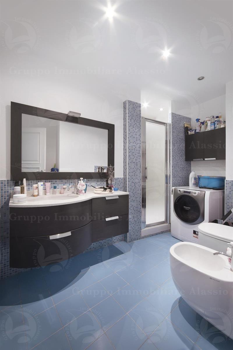 Discover this splendid detached house surrounded by the greenery and tranquility of the hills to the east of the city, just a 5-minute drive from the enchanting beaches of Borgo Coscia and the famous Budello di Alassio. This unique property offers a two-level apartment of approximately 120 square meters, perfect for those seeking a peaceful retreat close to the sea. On the ground floor, you'll find a spacious living area with a fireplace, ideal for relaxing on cooler evenings. The living area is divided into a sofa area, a dining area, and a fully equipped kitchen, perfect for those who love cooking and entertaining. A bathroom and a storage room complete the floor for maximum convenience. Upstairs, the sleeping area offers three bedrooms with breathtaking views of the Gulf of Alassio and two bathrooms. The master bedroom is a true luxury, featuring a private bathroom with a whirlpool tub for moments of pure relaxation. Outside, a private courtyard welcomes you to enjoy sunny days, while the parking space in front of the house adds convenience to your daily life. With 135 sq m of living space and 129 sq m of floor space, this home is in excellent condition and ready to welcome you. Heat pump and natural gas heating ensure year-round comfort. Don't miss the opportunity to live in a corner of paradise!