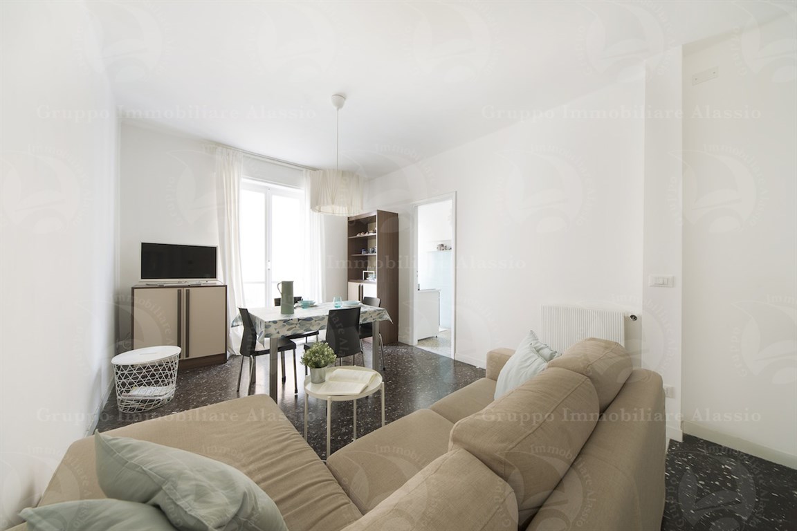 Less than 50 meters from the sea, this welcoming 65 m2 home offers the perfect combination of comfort and an exclusive location. Located in the heart of the quaint village of Barusso, the house comprises a bright living room with a separate kitchenette, overlooking a balcony that also connects to the master bedroom. The property also includes a single bedroom and a bathroom with a window. The property is already habitable and in good condition, but a renovation could enhance its potential, making it even more contemporary and in line with the latest trends. A rare opportunity to live a stone's throw from the sea in renowned Alassio! Contact us for more information or to arrange a visit.