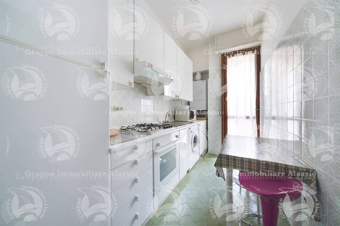 Alassio, in a central location convenient to all amenities, approximately 250 meters from the sea, we offer for sale a spacious apartment of approximately 75 m² on the first floor of a building with a lift (but no elevator stops on that floor). The property comprises an entrance hallway, a bright living room, a separate kitchenette, a double bedroom, a single bedroom, and a bathroom. All rooms have direct access to the semi-corner balcony overlooking the main street, which is sheltered from traffic. Despite its original condition, the apartment is well-maintained and offers ample scope for customization. Thanks to its generous size, it is ideal as a primary residence or a vacation rental. Independent gas heating is provided, as is under-ceiling air conditioning/heating.