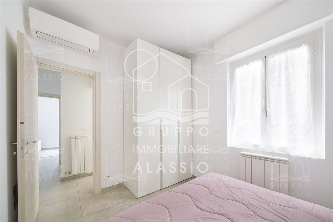 Delightful three-room apartment located in the quiet western area, perfect for those seeking comfort and style. This fully renovated and tastefully furnished apartment is located on the first floor of an elegant building with an elevator. It offers well-organized and bright spaces, including a spacious living room that invites relaxation. The eat-in kitchenette is ideal for preparing delicious meals, while the windowed bathroom with shower ensures practicality and comfort. The master bedroom is a welcoming retreat, perfect for recharging your batteries. Don't forget the pleasant terrace and balcony, ideal spaces for enjoying the sun and the surrounding views. The apartment is equipped with air conditioning and heat pump heating, ensuring a comfortable environment in any season. Located below Via Aurelia, it is close to all the essential amenities. Don't miss the opportunity to live in this splendid apartment, sold fully furnished and custom-made.