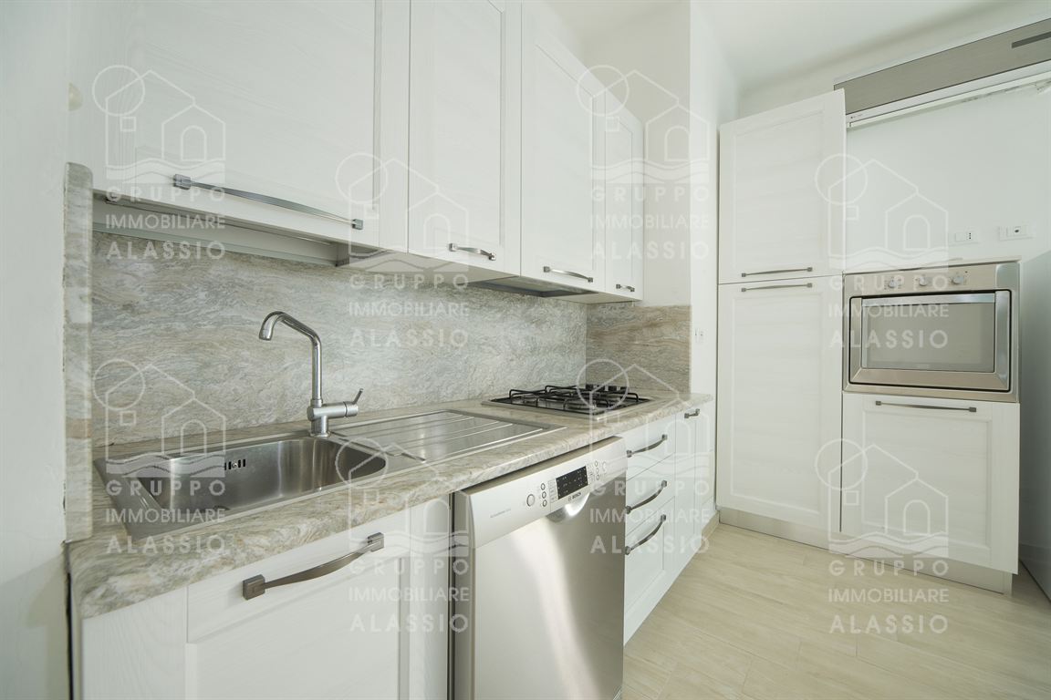 Just 150 meters from the sea, on Via Londra, in a quiet location below Via Aurelia, we offer for sale a spacious, renovated two-room apartment located on the third floor with a lift. The apartment stands out for its generous size and excellent layout. It comprises a bright living room with kitchenette and access to a small balcony, a large double bedroom with a second balcony, and a bathroom with a window and shower. The property has been recently renovated and features new windows, air conditioning, and modern finishes. It's ideal as a primary residence, a vacation rental, or an investment. The perfect solution for those seeking comfort, proximity to the sea, and comfortable living spaces.