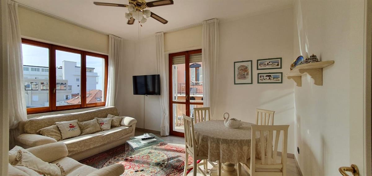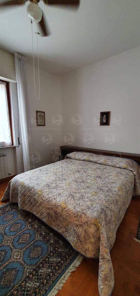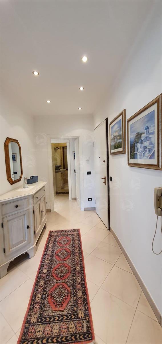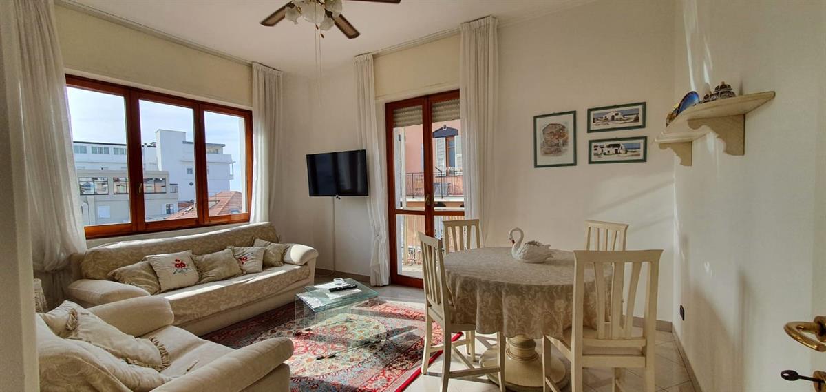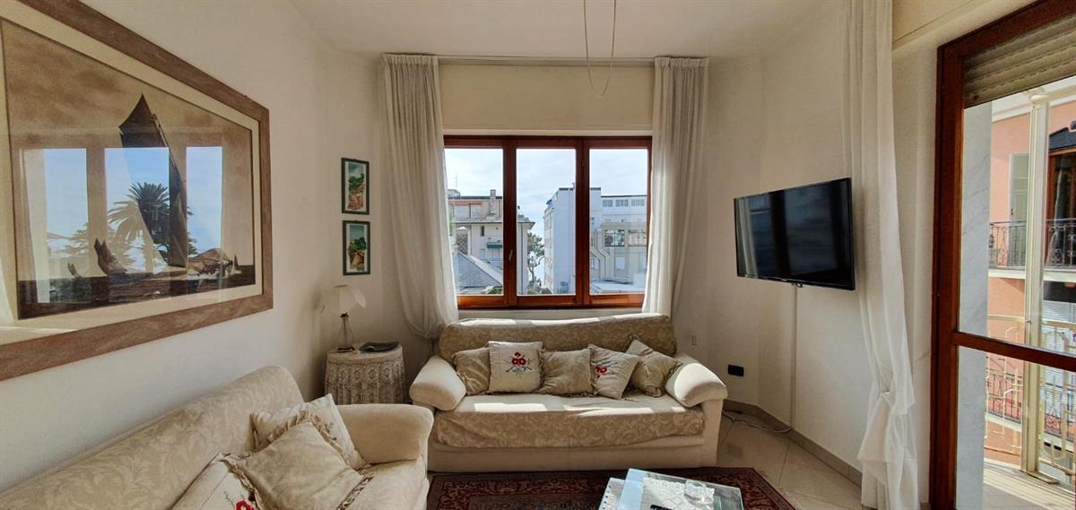 Alassio, we offer a three-room apartment in the western part of the city, 100 meters from the sea. The apartment comprises a large entrance hall, eat-in kitchen, living room, double bedroom, single bedroom, and bathroom. The living room, double bedroom, and kitchen all have a balcony. The apartment is located on the third floor and is accessible by elevator. A garage in the Hanbury area completes the property. Asking price €650,000.