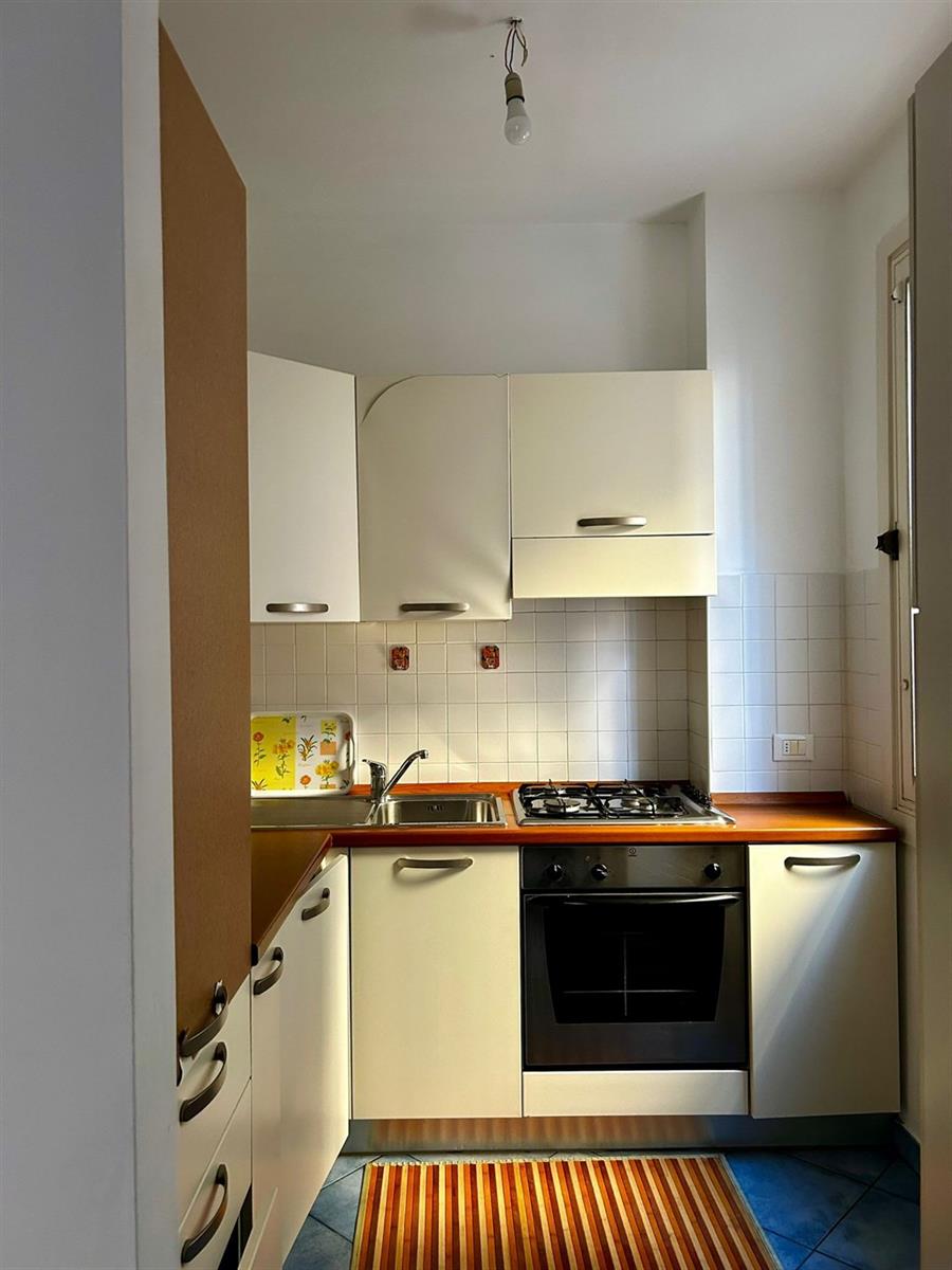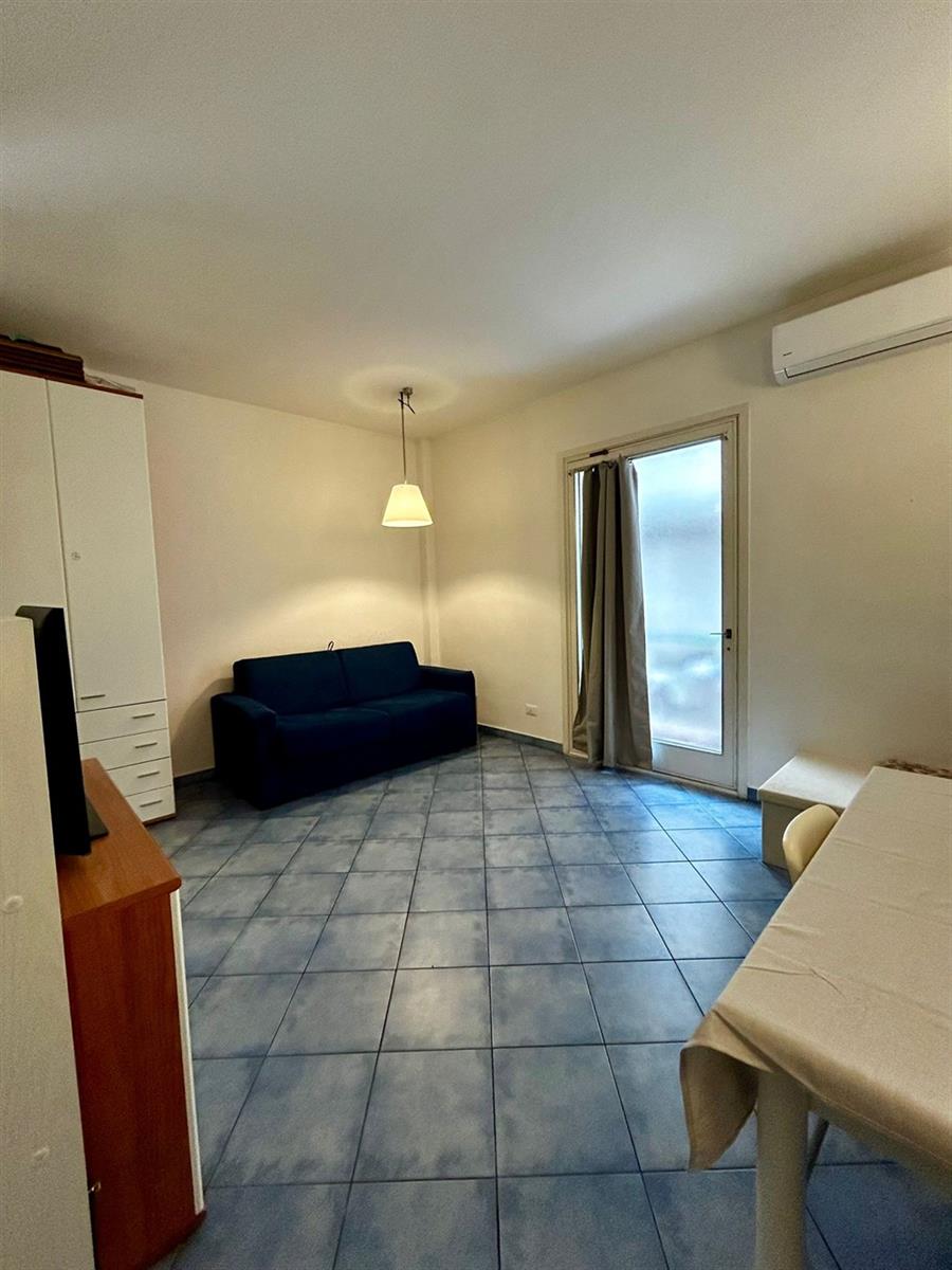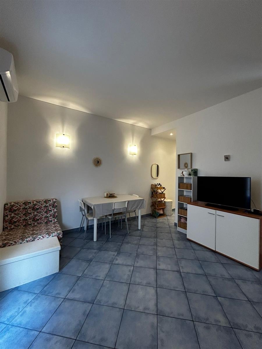 Alassio, in the western area of Corso Europa, offers a first-floor studio apartment in a building with an elevator. The apartment comprises an entrance hall, bathroom with window, large living area with sofa bed, livable balcony, and kitchenette with window. The apartment is very bright and fully furnished. Asking price €230,000