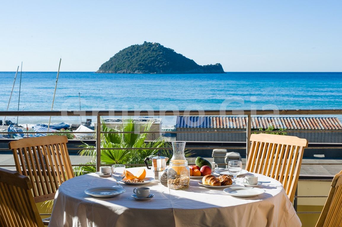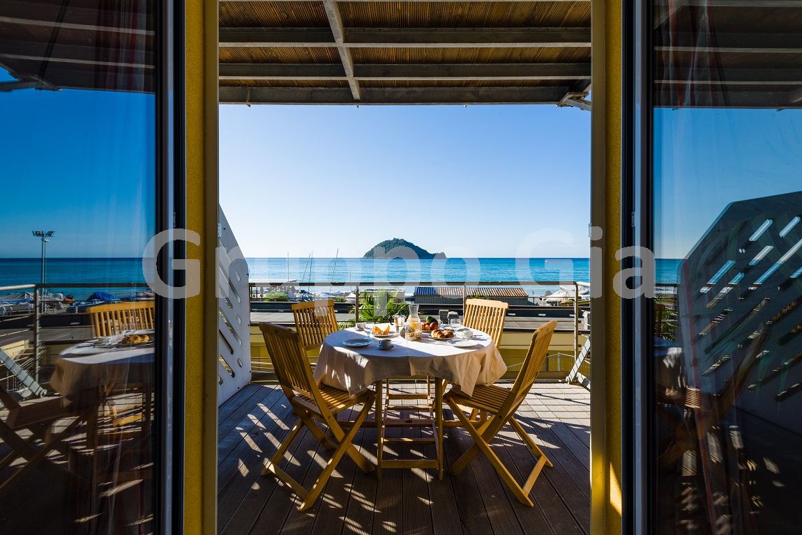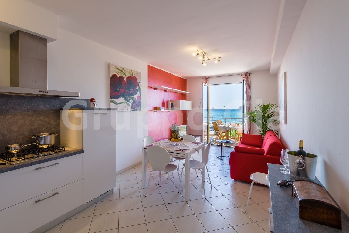 Gorgeous two-room apartment with a spacious seafront terrace, comprising a living room with kitchenette and sofa bed, bathroom with shower, and a spacious double bedroom with a spacious terrace. Located on the second floor, with elevator access, the apartment is fully self-contained.