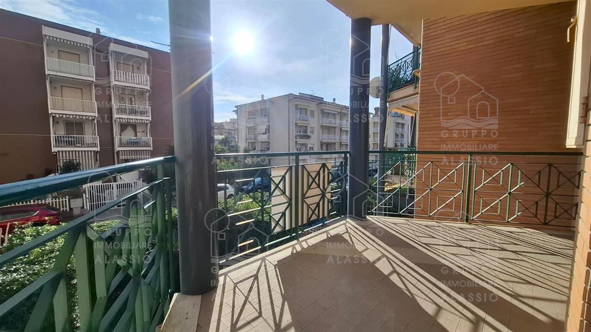We are pleased to offer this excellent property on the Albenga real estate market, featuring two large habitable terraces and a double exposure with open views. The apartment comprises a living room and a semi-habitable kitchen, both with direct access to the beautiful sea-facing terrace. On the opposite side, exposed to the sun until sunset, we find two bedrooms and the second terrace. The bathroom has a bathtub, which can easily be replaced with a large shower. Floors, doors, walls, fixtures, everything is in perfect order. Independent methane gas heating, aluminum windows with double glazing, armored door, electric shutters in the living room and kitchen, elevator. In short, a truly lovely and pleasant apartment, suitable as a primary residence but also as a seaside home or to rent out. Furthermore, by demolishing the wall between the kitchen and the living room, a single large and bright living area with two French windows would be created. Condominium fees are low, around 500 euros per year. Good quality area with various types of shops nearby, distance from the sea approximately 400 meters on flat ground