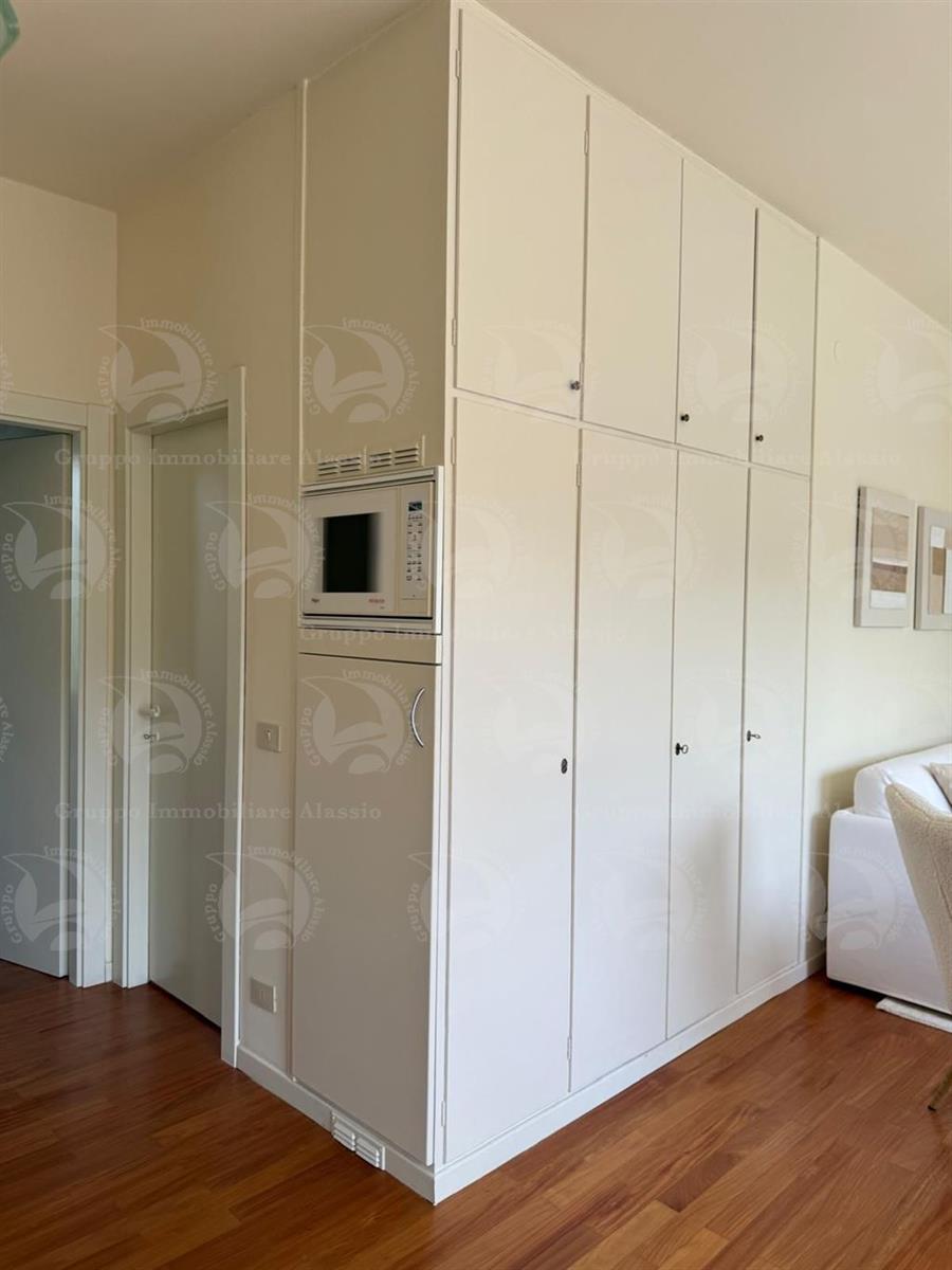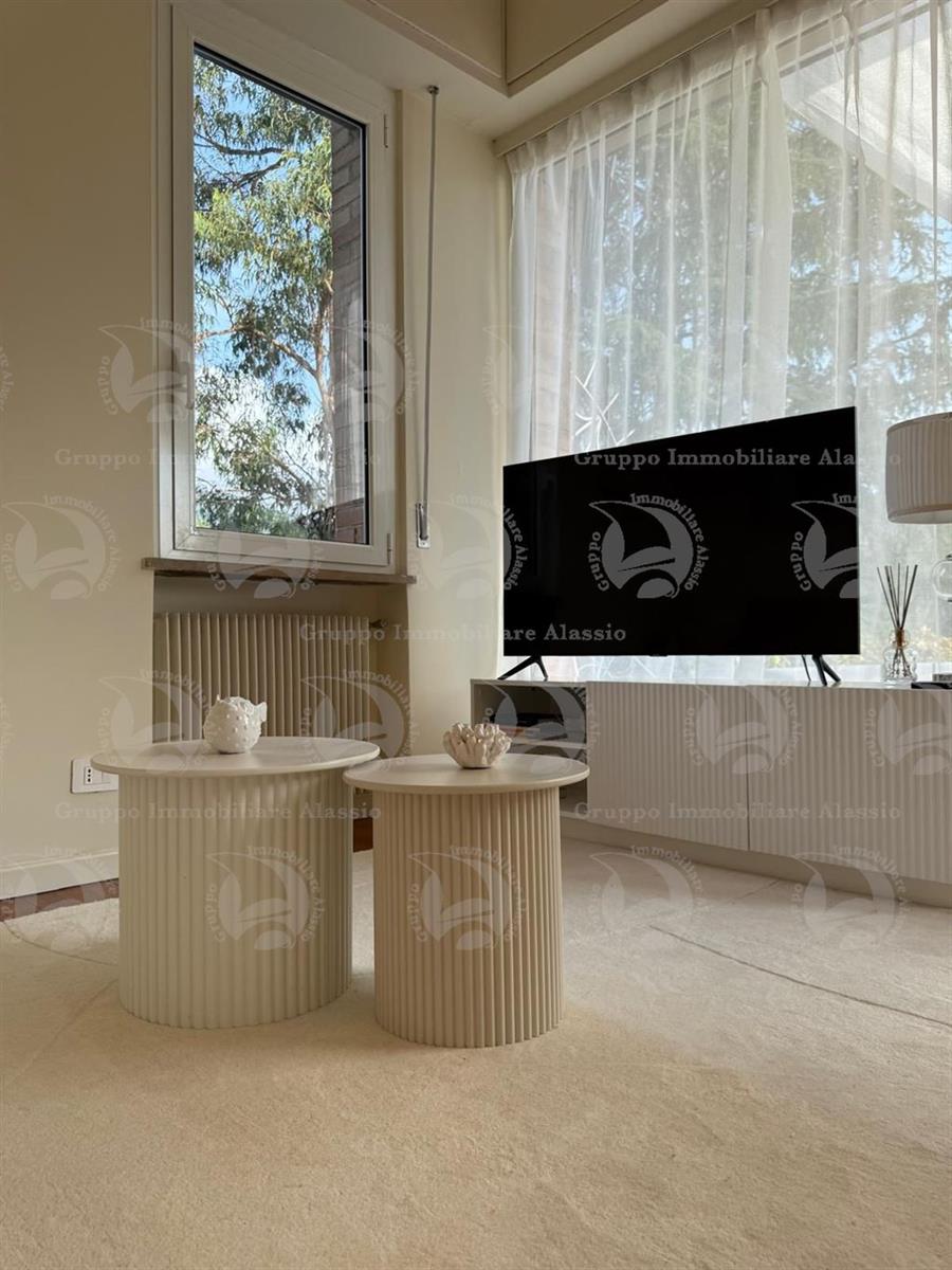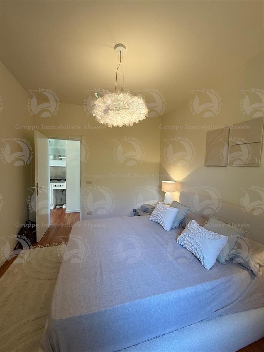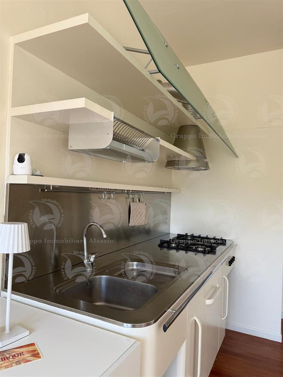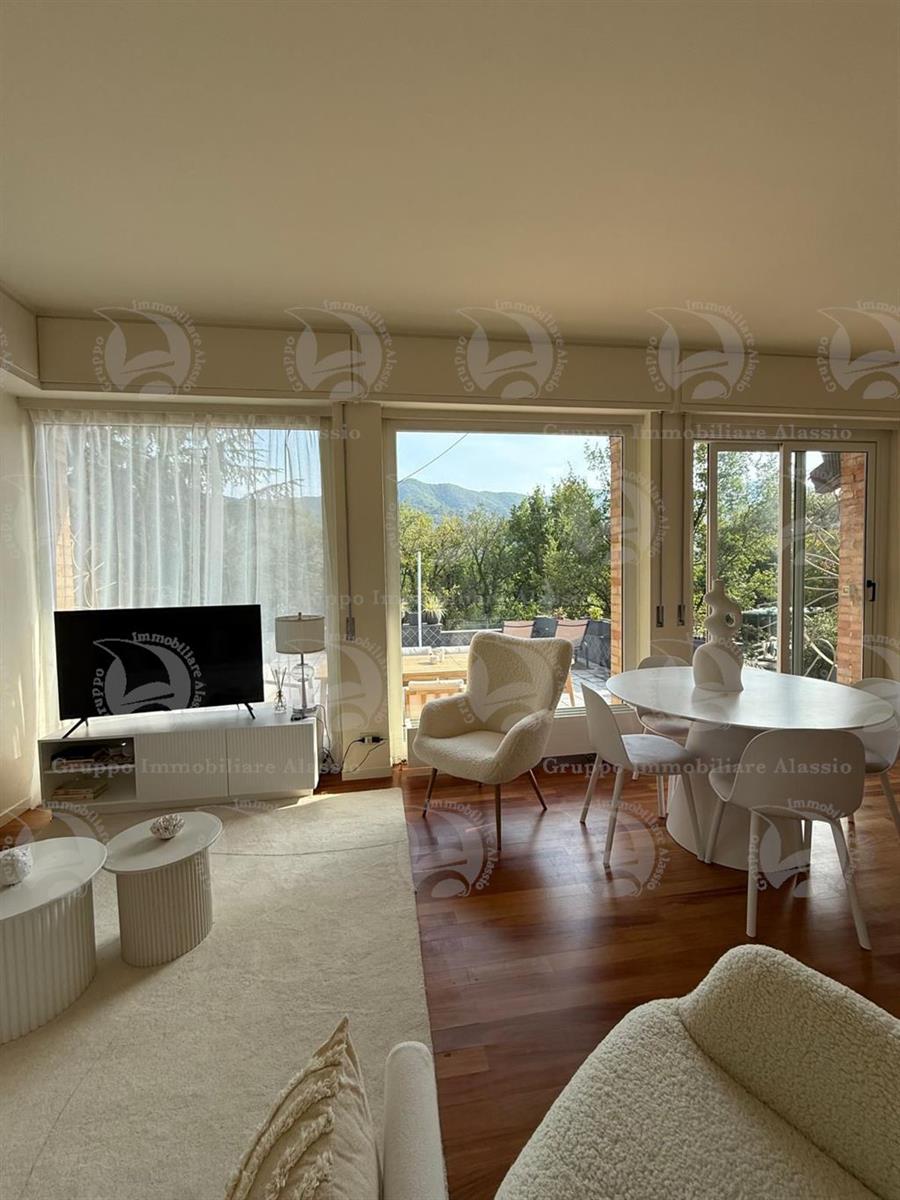Garlenda – Just steps from the Golf Club House, we offer for sale an elegant two-room apartment in good condition, fully furnished. The apartment opens onto a bright living room with kitchenette, enhanced by three large windows that create a wonderful continuity between the interior and exterior spaces. The real highlight is the large, habitable terrace of over 40 square meters, well exposed to the sun and ideal for al fresco dining, relaxation, and socializing. The sleeping area consists of a spacious double bedroom and a bathroom with window and shower. A perfect solution for those seeking tranquility, comfort, and an exclusive setting just minutes from the sea.