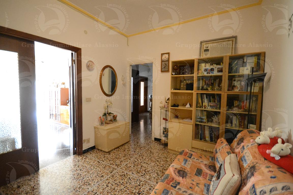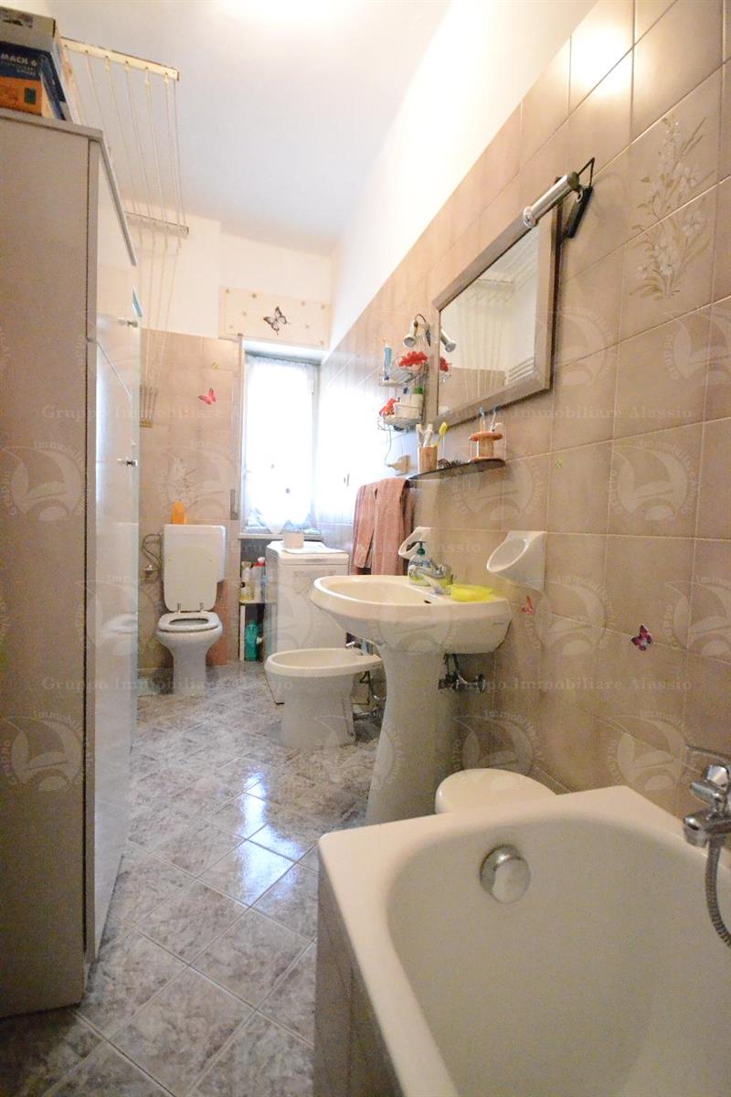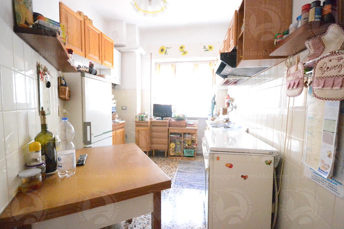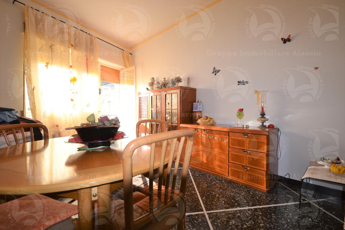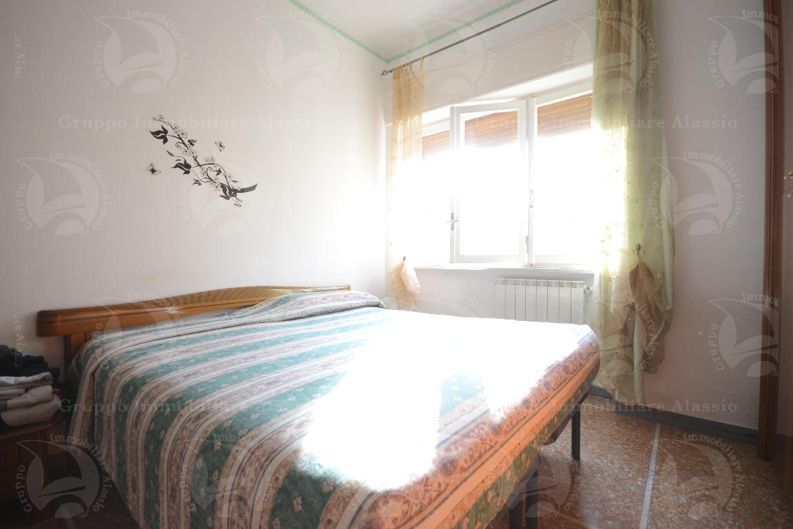 Laigueglia, just steps from the sea, offers a second-floor apartment with elevator. The property comprises a large entrance hall, a living room with a balcony and a glimpse of the sea view, an eat-in kitchen, a bathroom with a window, and two double bedrooms. Possibility of garage nearby not included in the price.