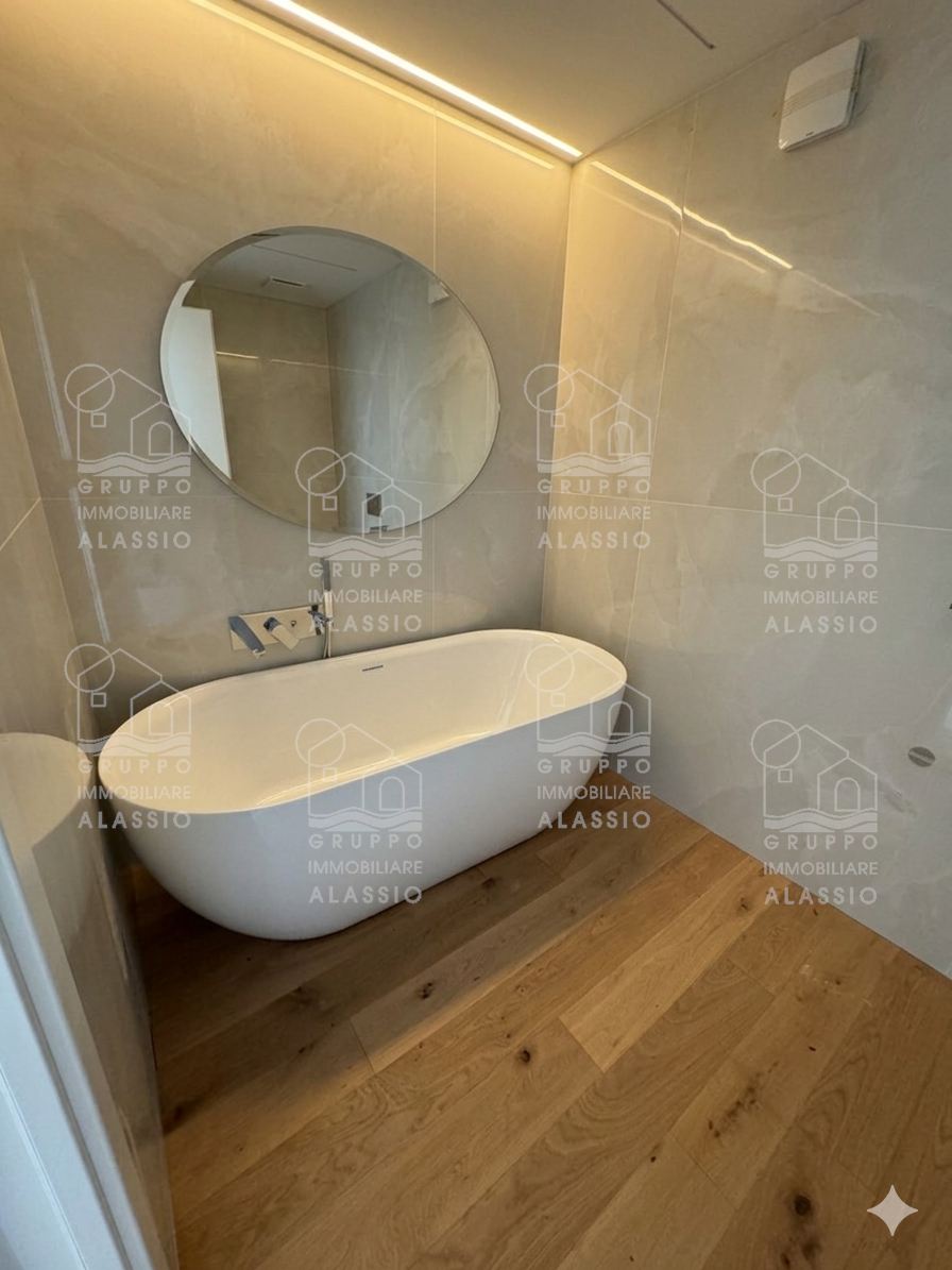 Discover this splendid penthouse, a jewel of elegance and comfort, perfect for those seeking a one-of-a-kind property. With a surface area of 100 m2 inside and a 100 m2 private solarium, the apartment stands out for its large and bright spaces: Two double bedrooms and a study ideal for relaxing. A modern and welcoming living area, perfect for enjoying unforgettable moments with family and friends. Double bathrooms with a refined design, with top-quality materials and exclusive details. But the real highlight is the livable terrace with an incredible sea view, offering dreamlike panoramas every day. And for those who love the outdoors, the private solarium offers an exclusive space for an outdoor kitchen and jacuzzi, perfect for summer dinners and relaxing moments at sunset. The property also includes a private parking space with an electric charging station, an essential detail for modern mobility. The building was recently renovated and is in impeccable condition, boasting an excellent energy rating. The parquet floors and high-quality finishes make this home a work of style and elegance. Another unique feature is the private staircase that connects the penthouse directly to the heart of the village, emerging in front of the picturesque Piazza Stalla. This home is a perfect combination of design, comfort, and a prime location. Don't miss this opportunity: contact us now to schedule a viewing!