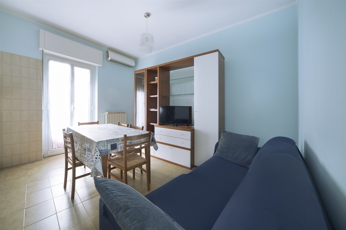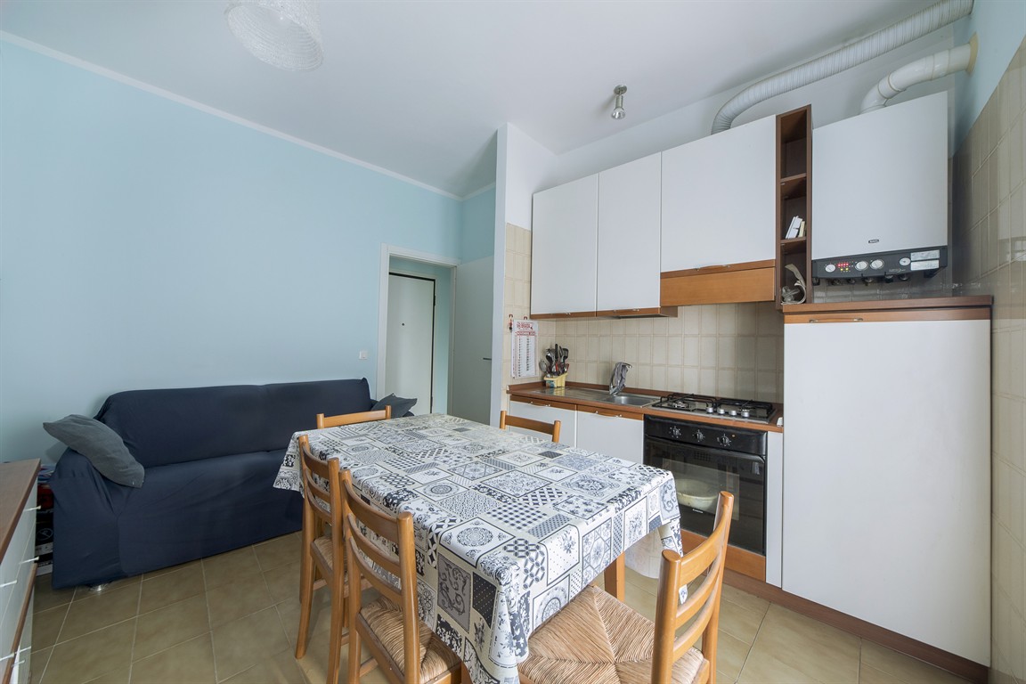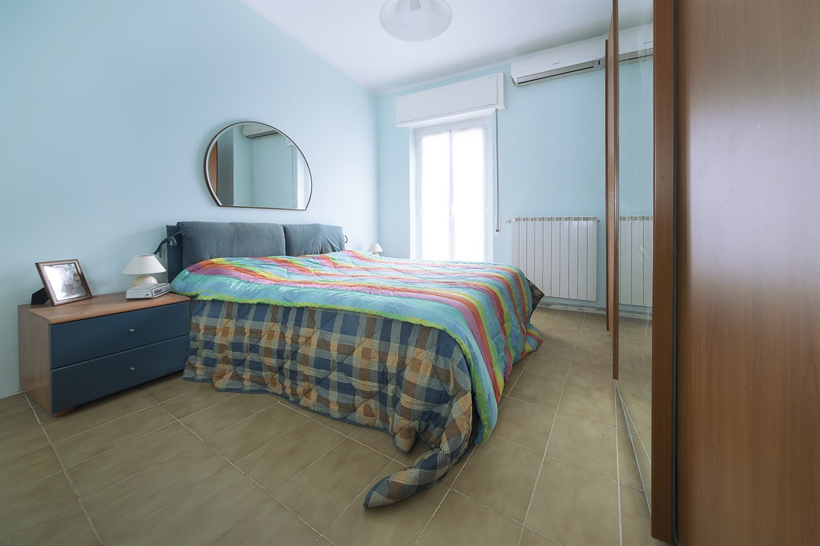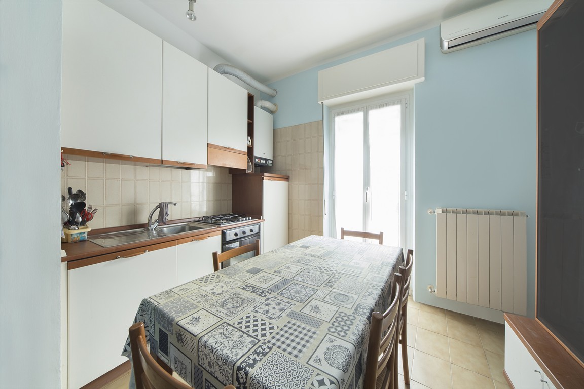 On the lower hillside of Alassio, a bright two-room apartment is for sale on the third and top floor of a small building, with direct access from the ground floor. The apartment comprises an entrance hallway, living room with kitchenette, double bedroom, bathroom with window, closet, and balcony overlooking the green hills of Alassio. Independent gas heating and working air conditioning are also included. Very low condominium fees.