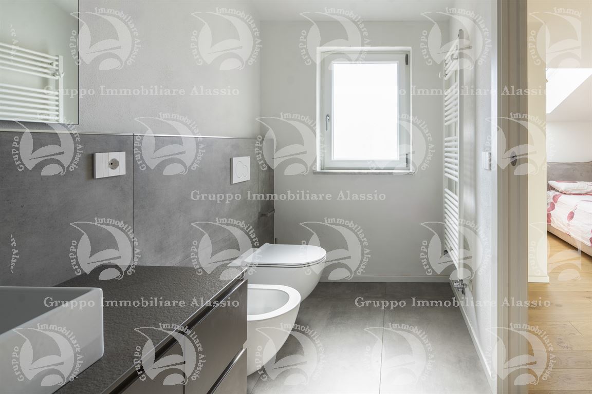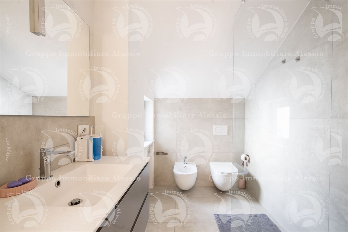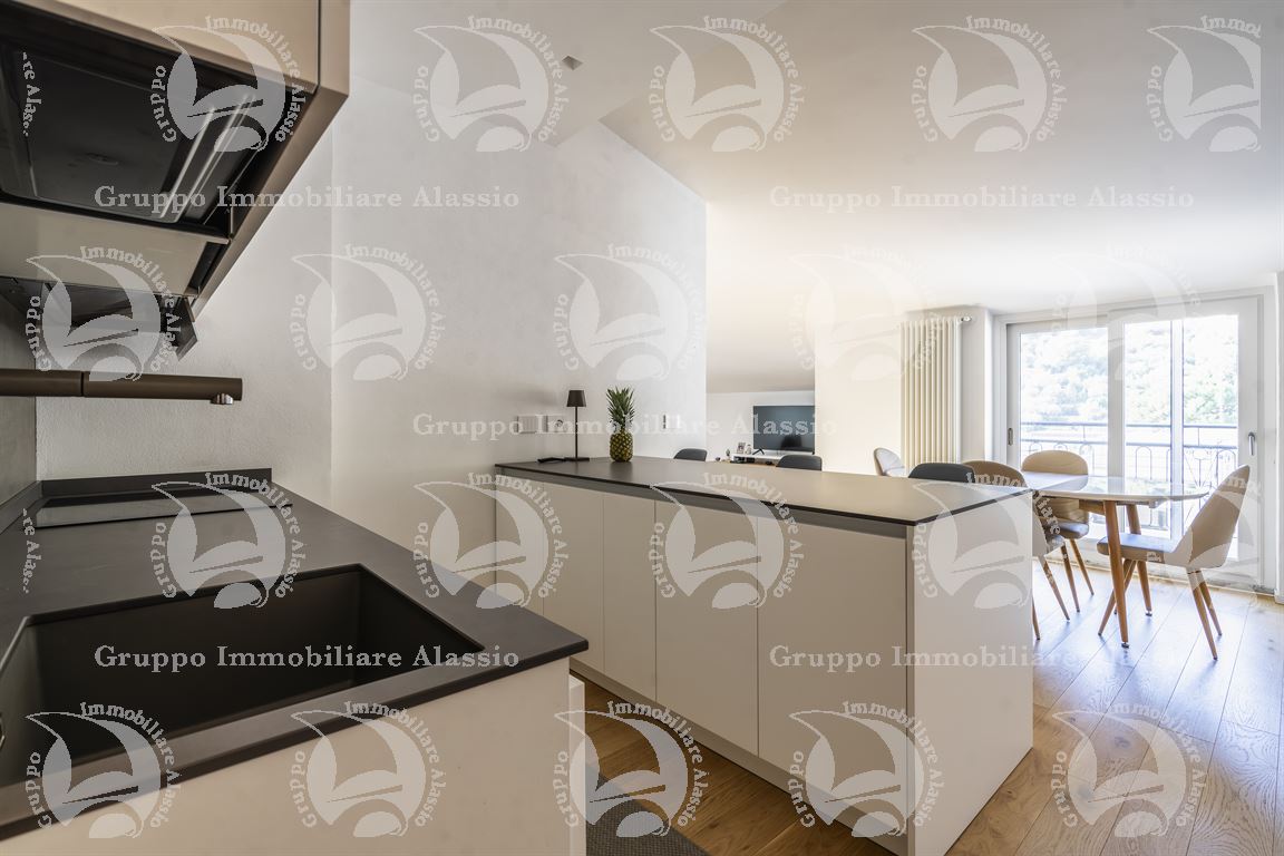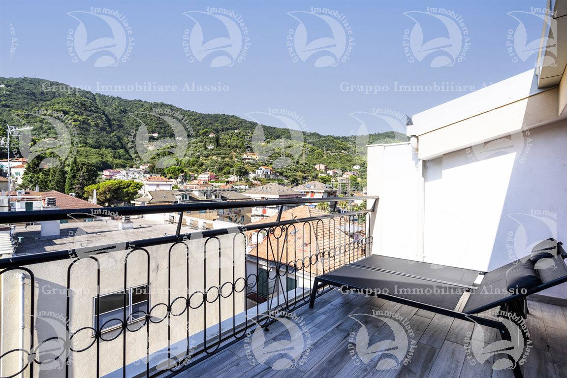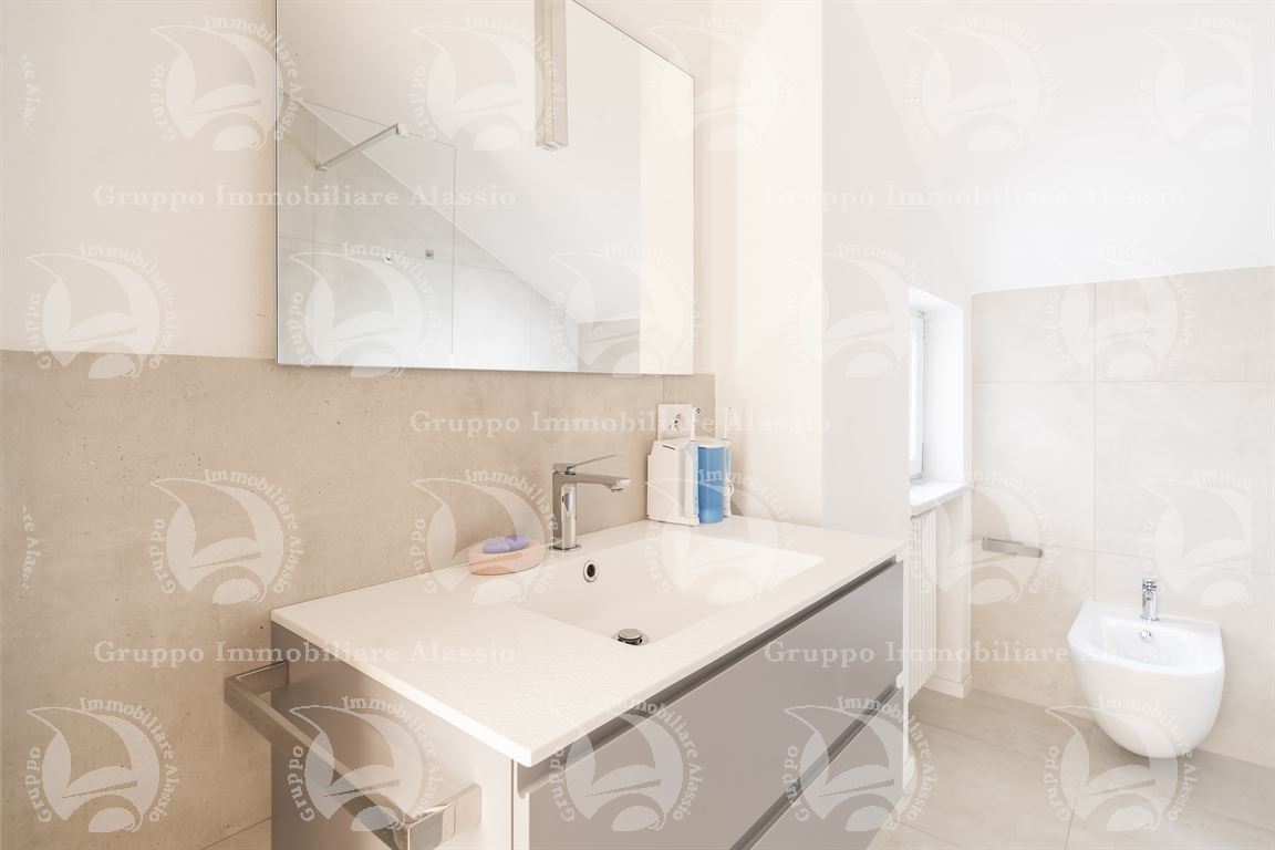 Discover this splendid penthouse located in an extremely quiet residential area, less than 400 meters from the heart of the city. Situated on the top floor of a building completely renovated in 2020, the building features an elevator and parking. Measuring approximately 150 square meters, the apartment is meticulously and elegantly finished, offering a welcoming and refined atmosphere. The penthouse is fully furnished with custom-made furniture and features parquet floors that blend harmoniously with the porcelain tile finishes in the bathrooms. The Daikin ducted air conditioning system and LED lighting ensure comfort and energy efficiency. The spacious entrance hall leads to a spectacular, well-designed and bright living room with open views and a glimpse of the sea. The property features three spacious bedrooms, two bathrooms, both with windows, a laundry room, and a storage room. The two livable terraces offer ideal spaces for relaxing outdoors. Suitable as a second home or primary residence, this home represents a unique opportunity for those seeking comfort and style in a prime location. Don't miss the opportunity to live in an exclusive and convenient setting!