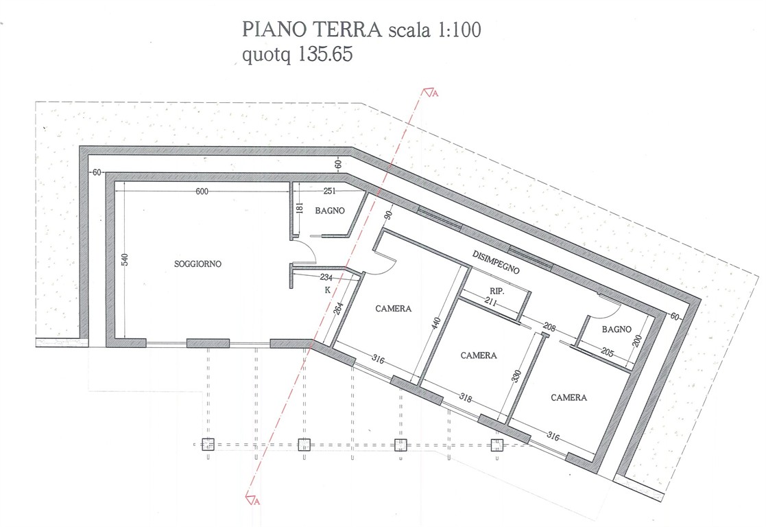 Alassio, at the foot of the hamlet of Moglio, offers for sale a plot of land measuring approximately 1,500 m², on which a single-story villa of approximately 114 m² is planned. The project includes a large living room with kitchenette, a bathroom for the living area, three bedrooms, another bathroom for the sleeping area, a hallway, and a storage room. An open porch is planned in front of the living room, creating a shaded outdoor area for a large terrace. A traditional four-pitched roof with traditional Ligurian tiles has been approved. A double parking space has been planned for the property, but there is nothing stopping you from requesting permission to build a 35 m² attached garage. The plot is divided into three easily accessible strips, and in my opinion, is ideal for installing a solar and photovoltaic panel system for hot water and electricity. The land is located south-facing and has a discreet sea view and a wide view of the Alassio hills.
